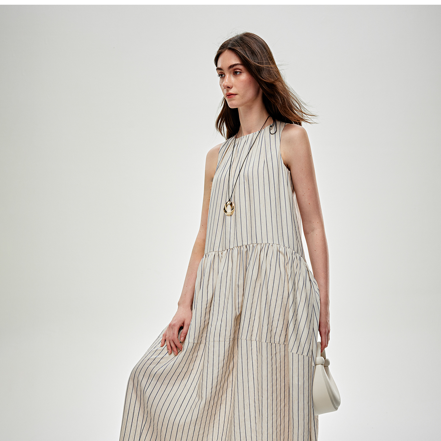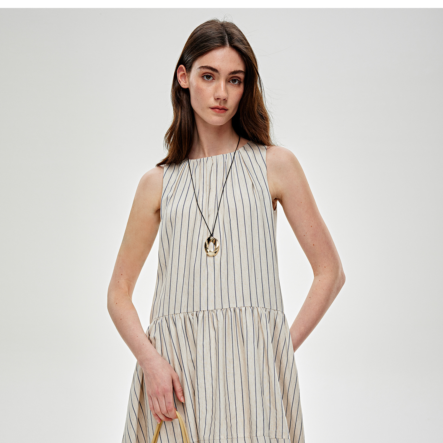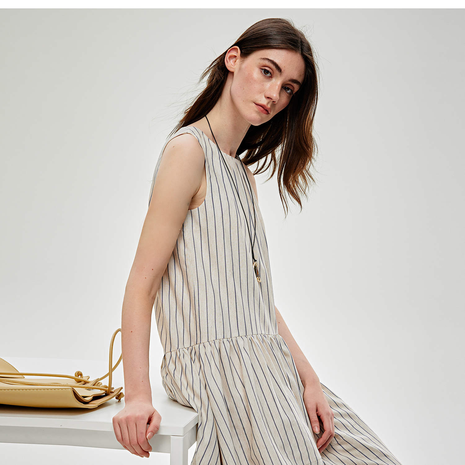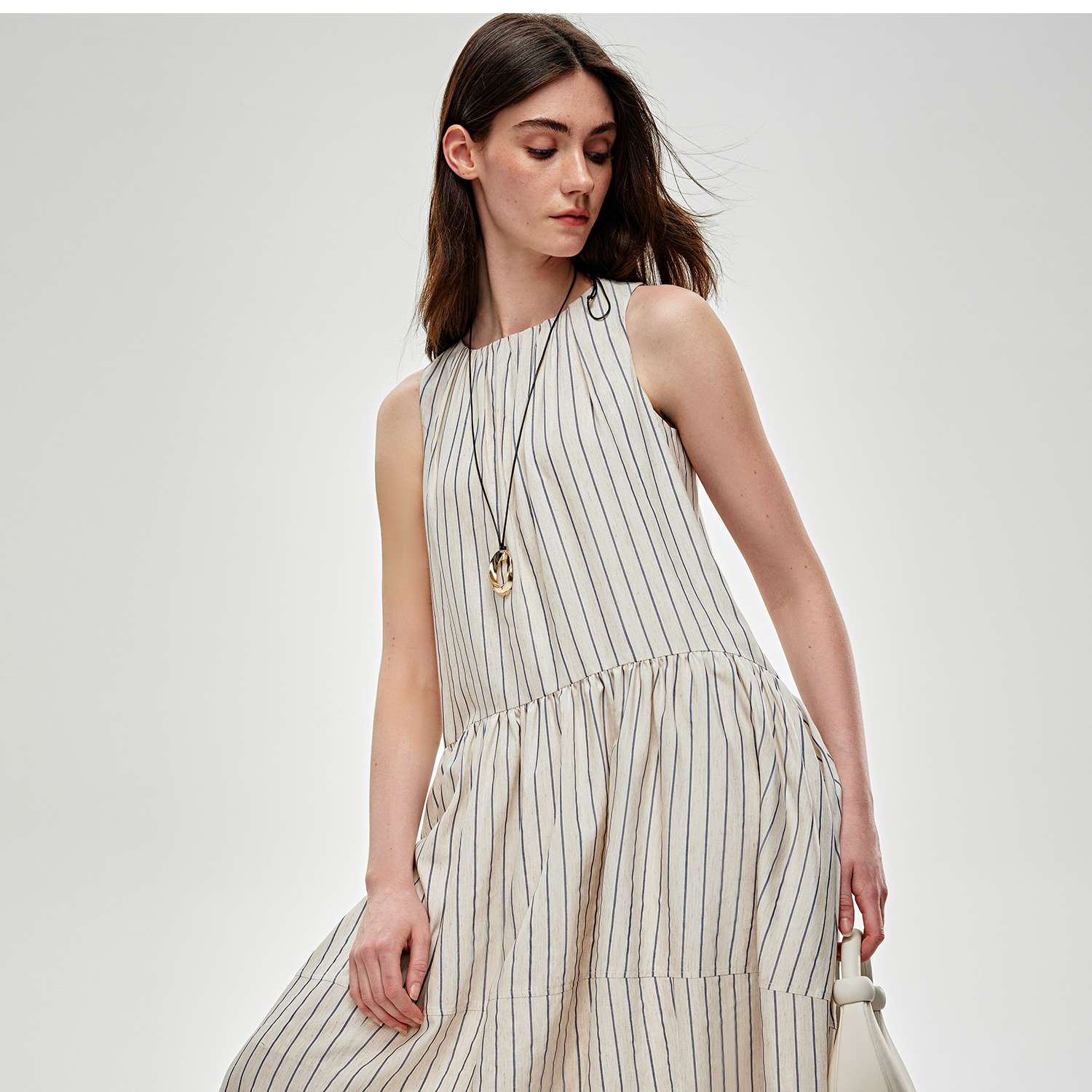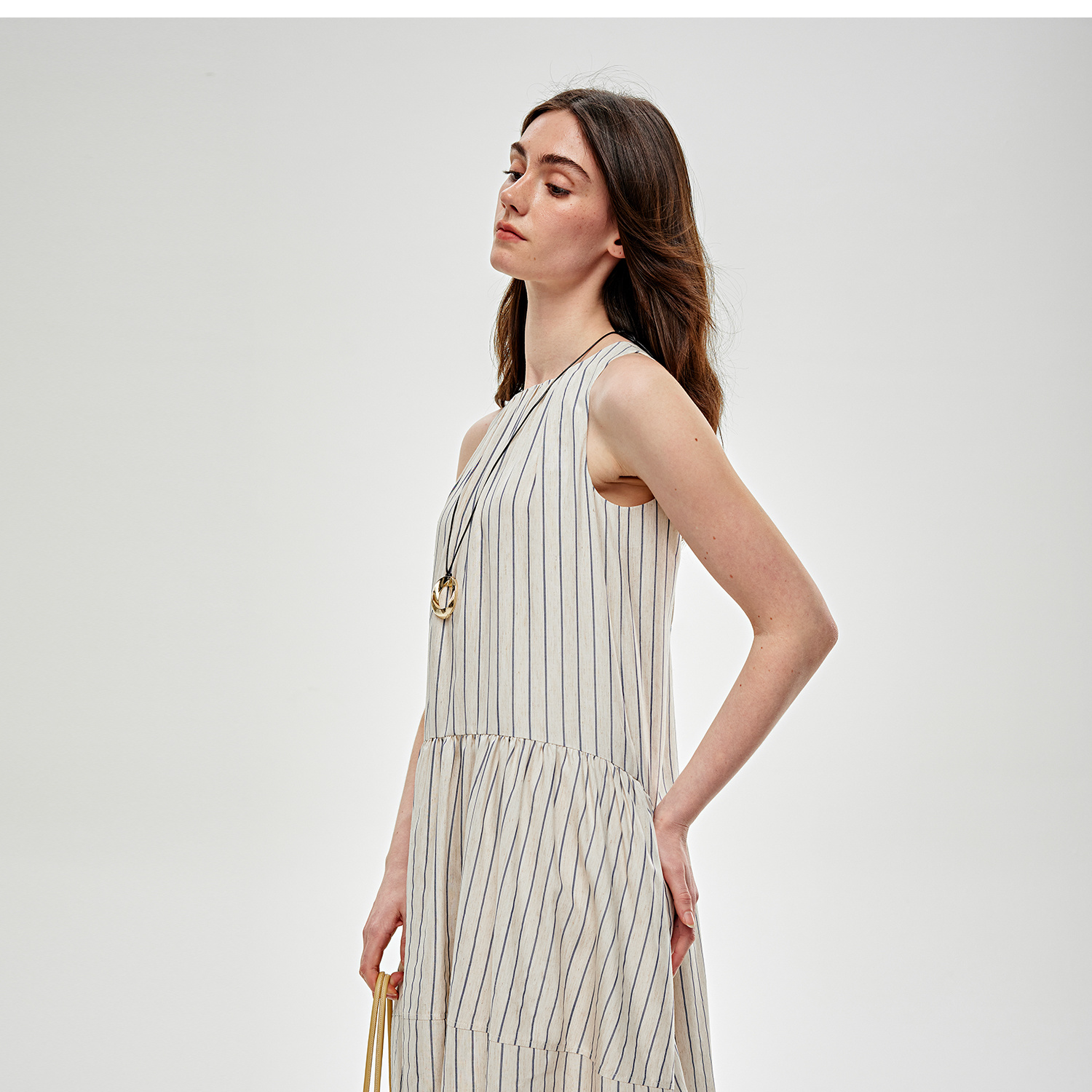 C+IMPRESS/西嘉醋酸亚麻 松弛感老钱风无袖连衣裙女条纹廓形a字裙LYQ2502008