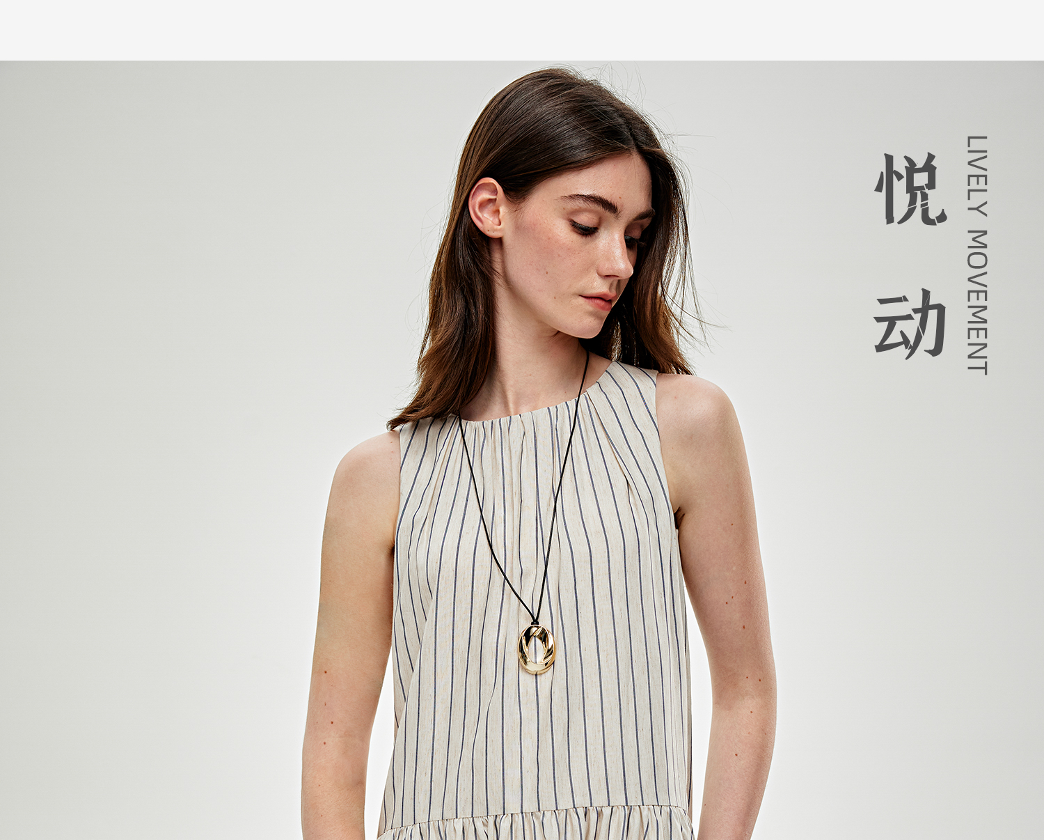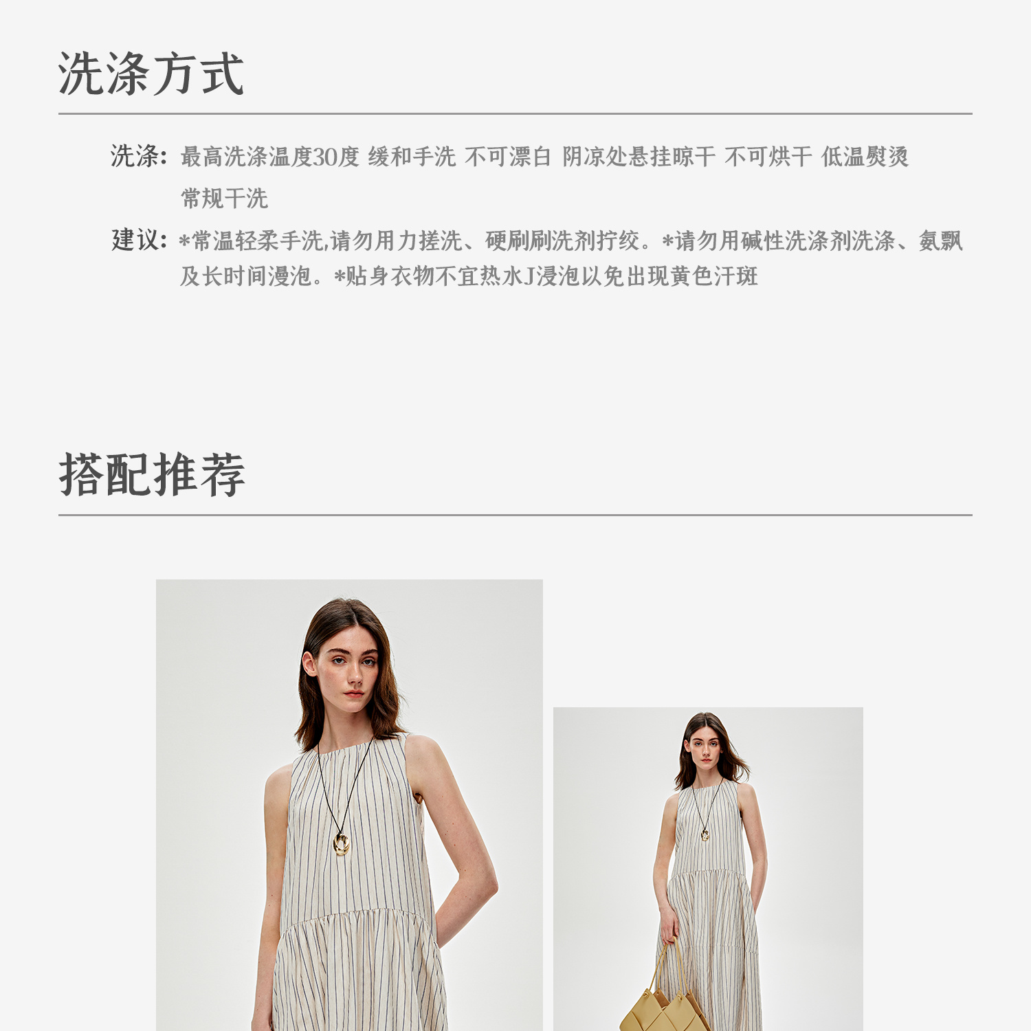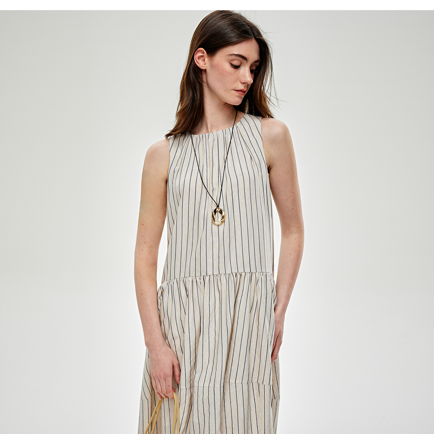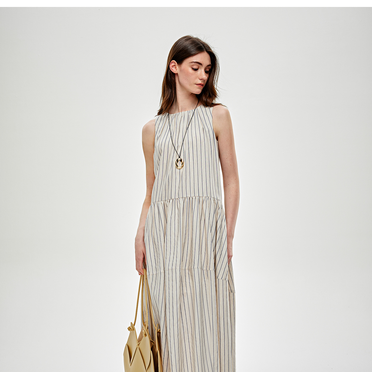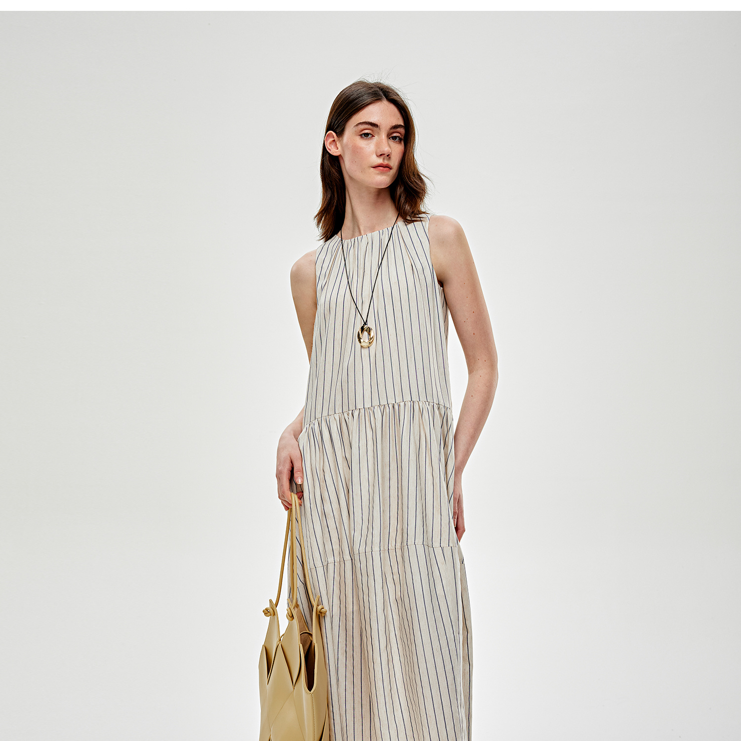 C+IMPRESS/西嘉醋酸亚麻 松弛感老钱风无袖连衣裙女条纹廓形a字裙LYQ2502008