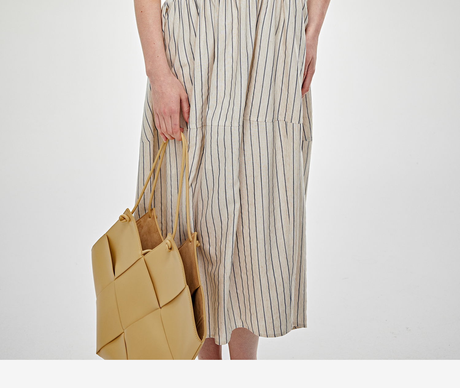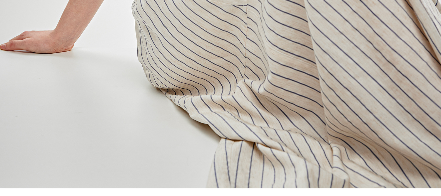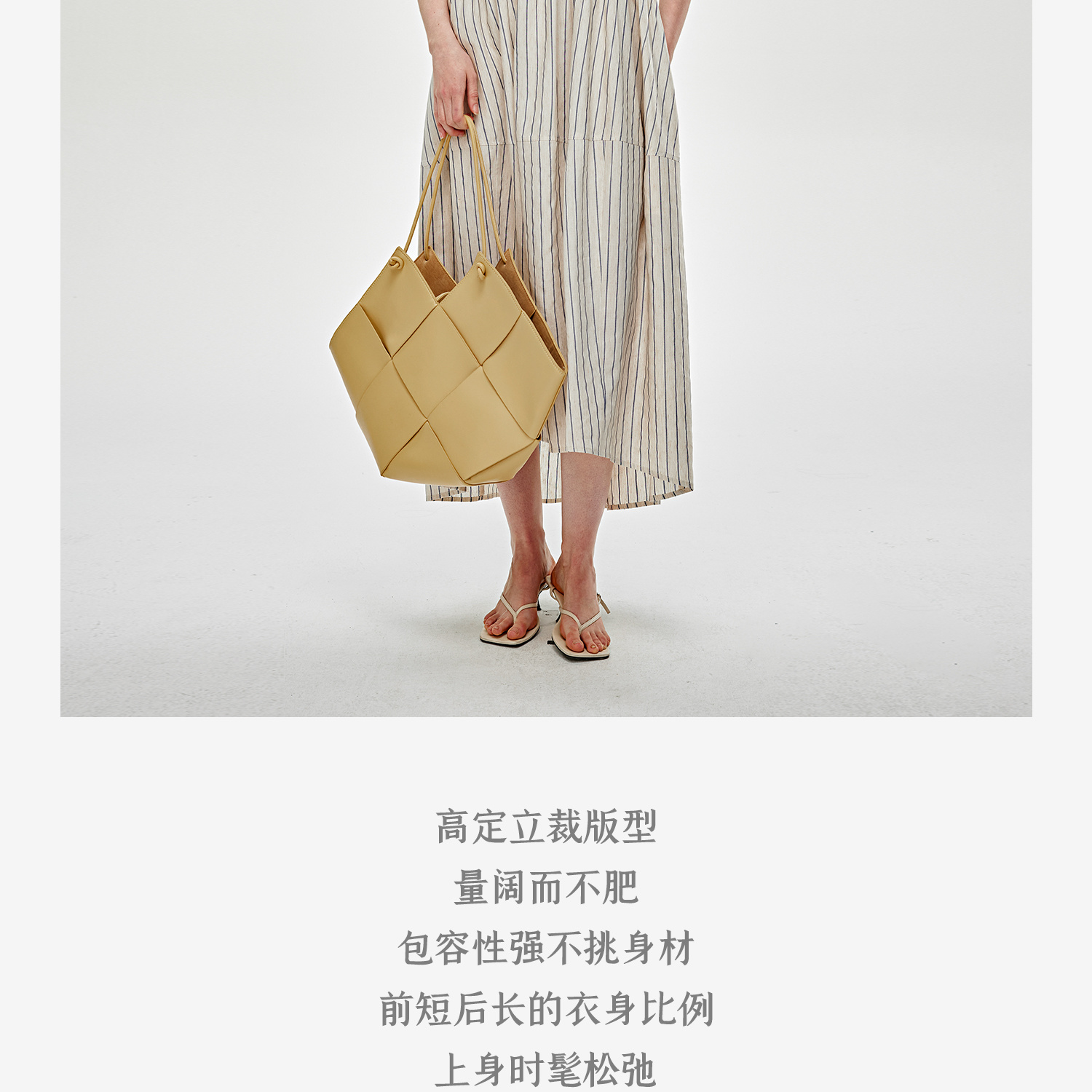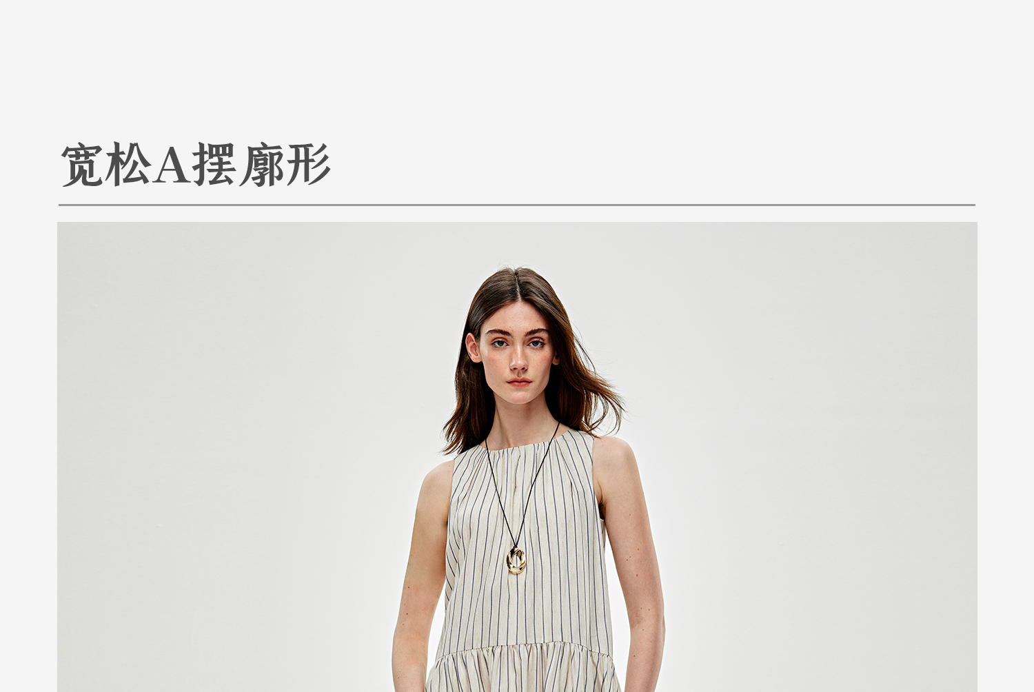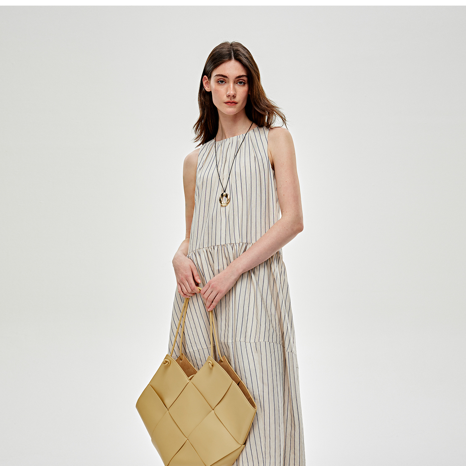 C+IMPRESS/西嘉醋酸亚麻 松弛感老钱风无袖连衣裙女条纹廓形a字裙LYQ2502008