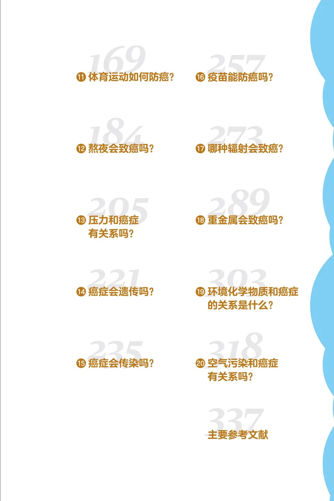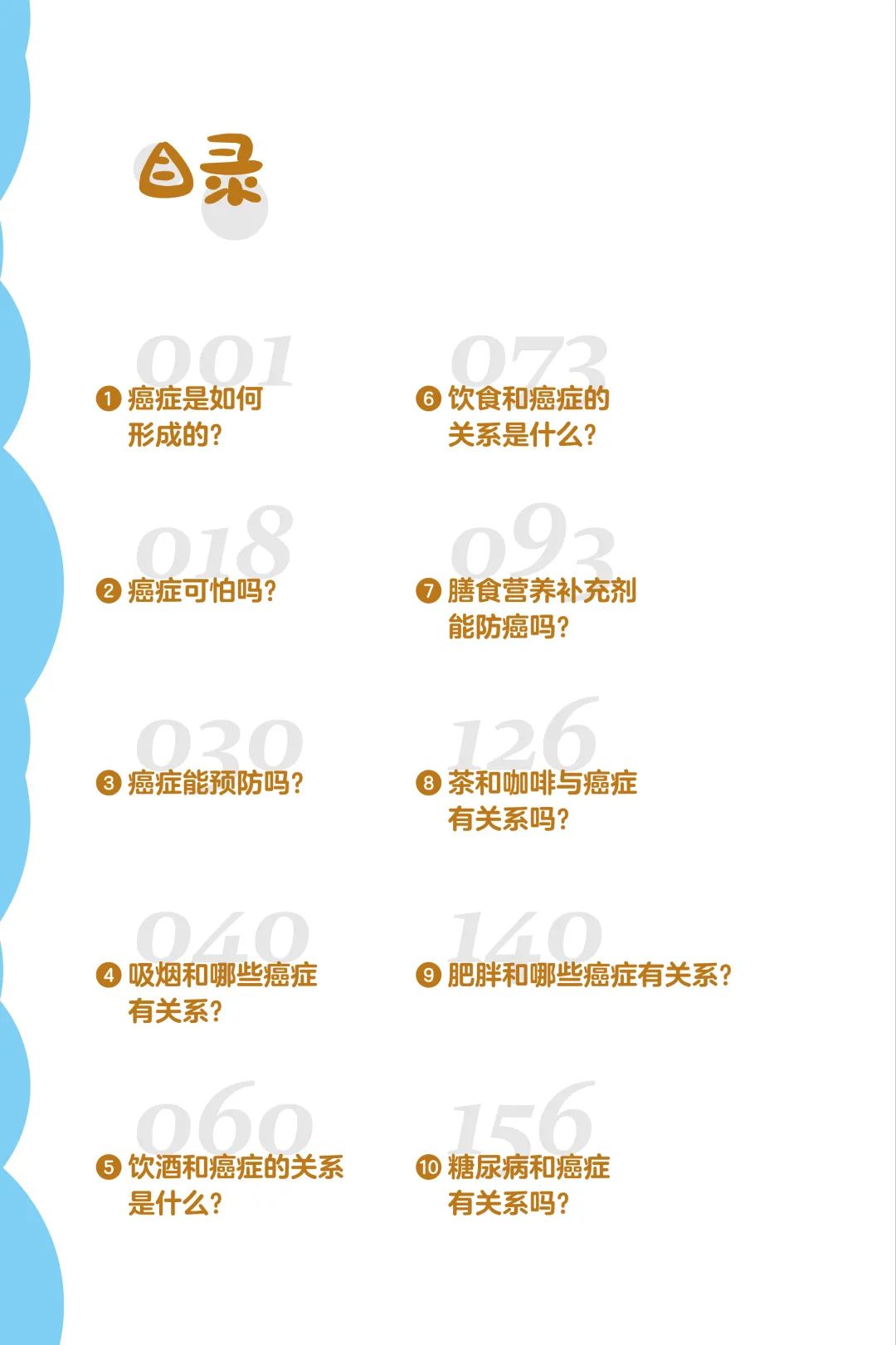 本书共设立 20 个篇章,从多个角度分别针对癌症一级预防中常见的问题进行专业剖析和生动解说,有助于读者对癌症的发生与发展形成较为系统的认知,消除对癌症的盲目恐惧,清楚地辨别生活中常见的致癌危险因素并积极采取主动预防措施规避致癌风险,从而提高广大人民群众的癌症预防知识知晓率,提升我国癌症一级预防水平,降低癌症发病率,为全面实现“健康中国”目标奠定坚实的基础。