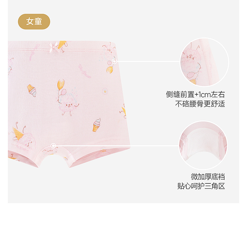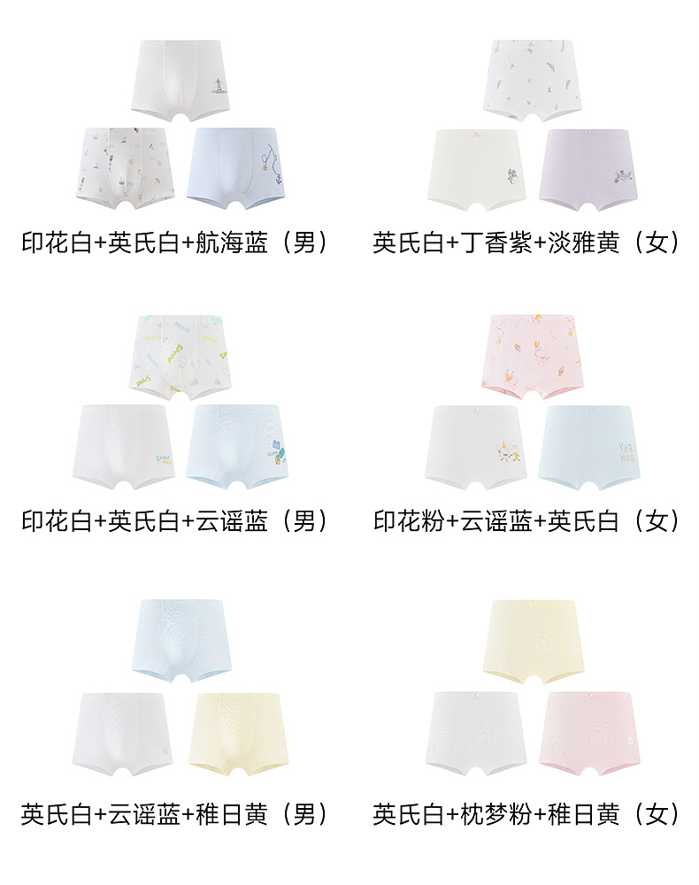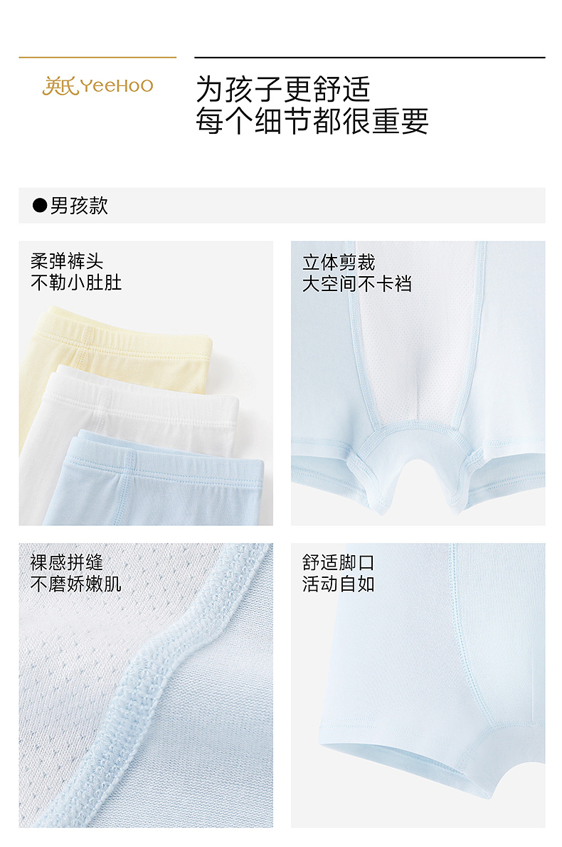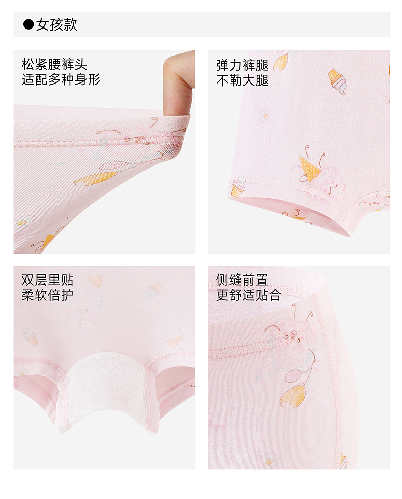 【聚乳酸+莫代尔】英氏10A抗菌儿童女童男童四季可穿易清洁内裤3件装