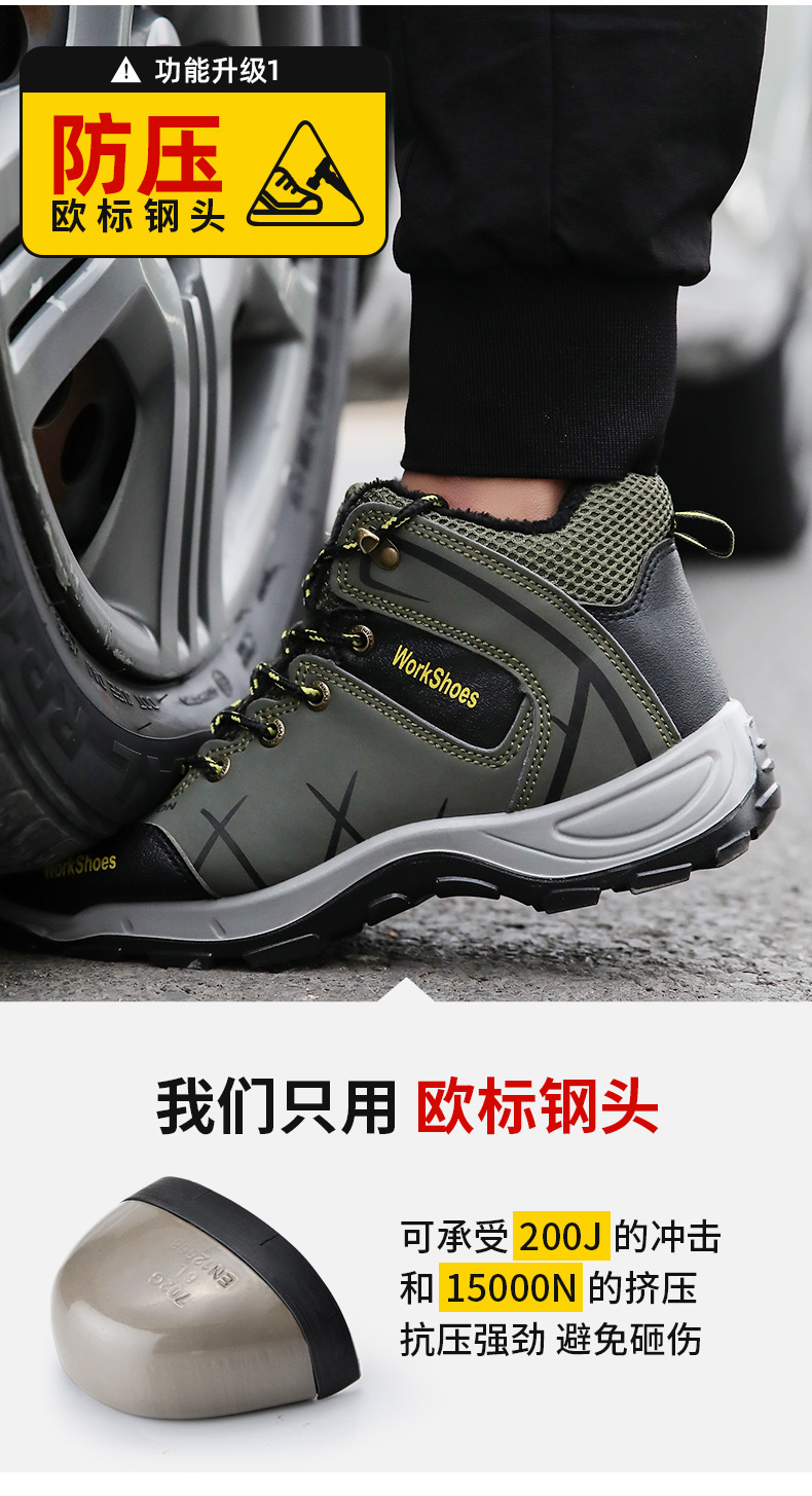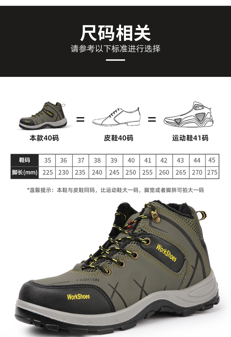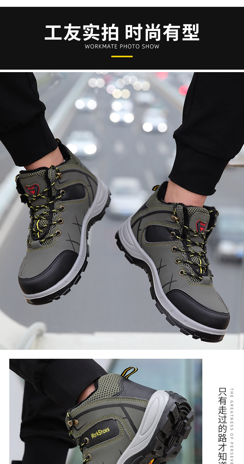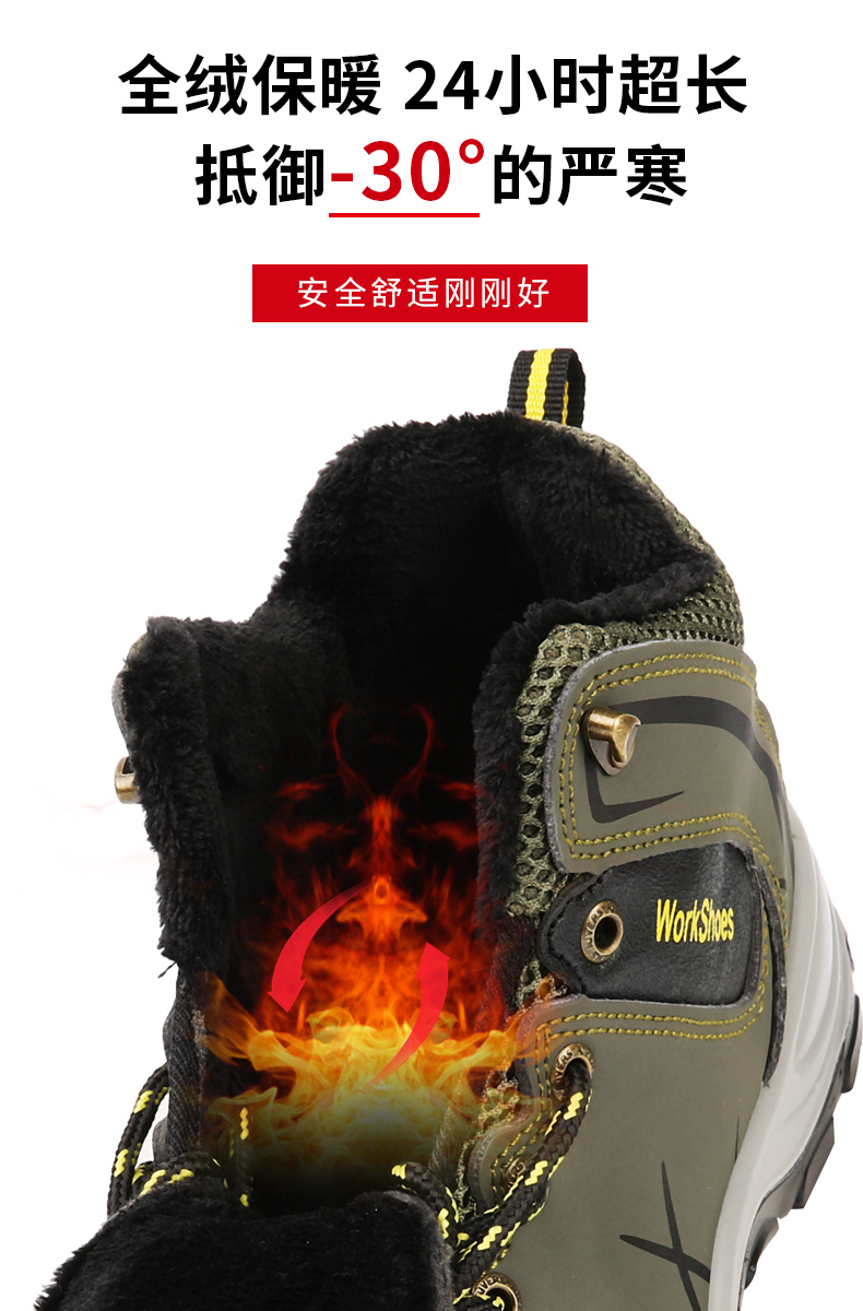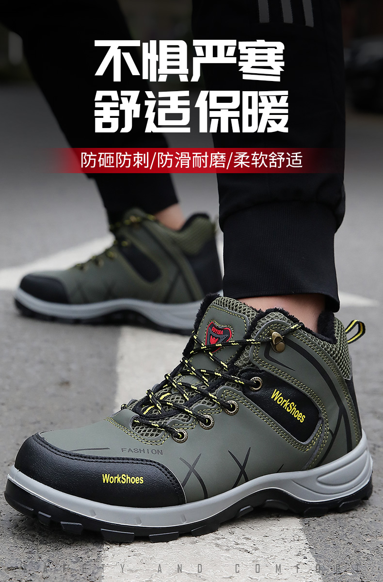 加绒冬季棉鞋劳保鞋男高帮安全工作鞋钢包头防砸防刺穿实心底耐磨舒适