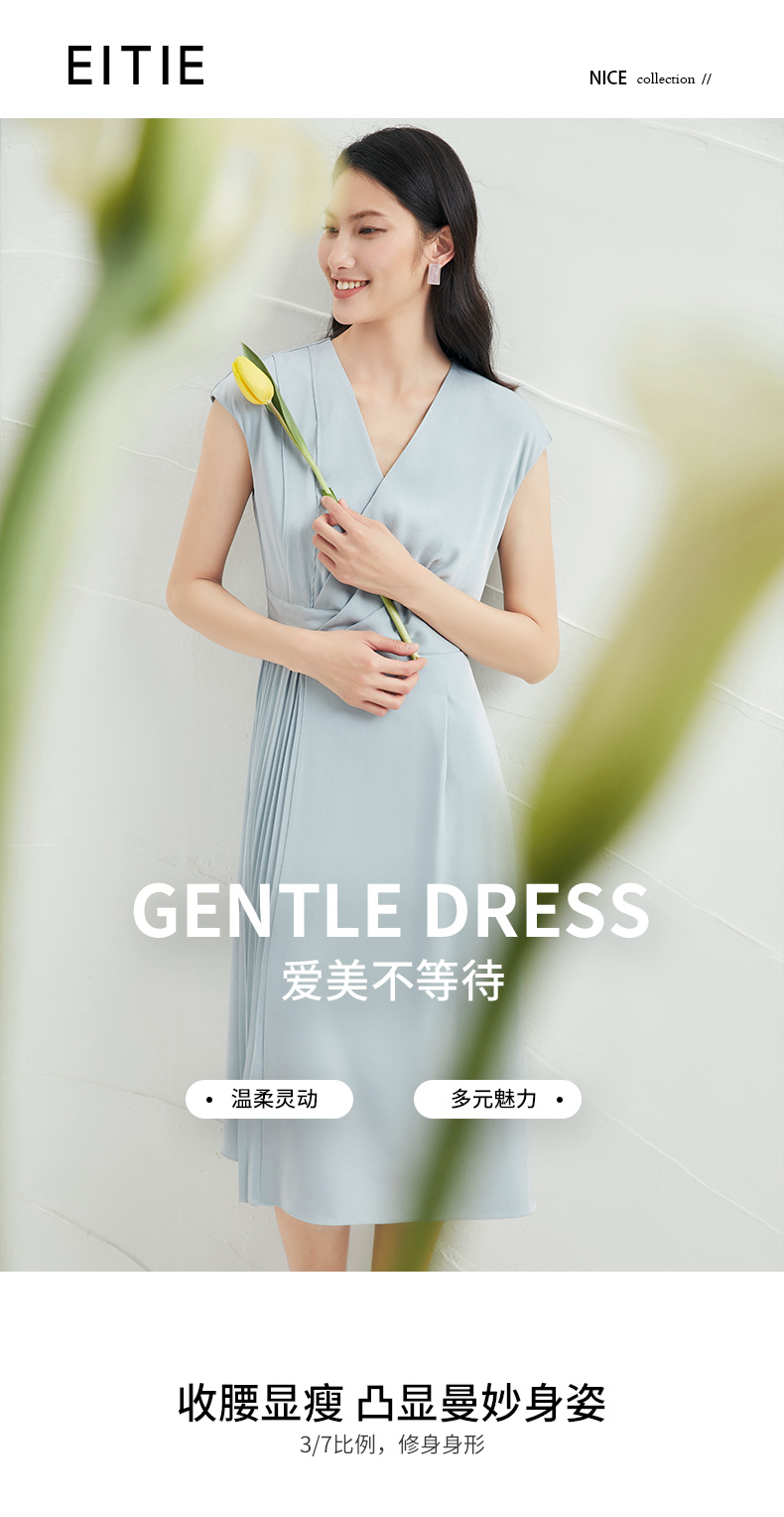 EITIE爱特爱夏季新款修身高贵优雅连衣裙中长款6507244