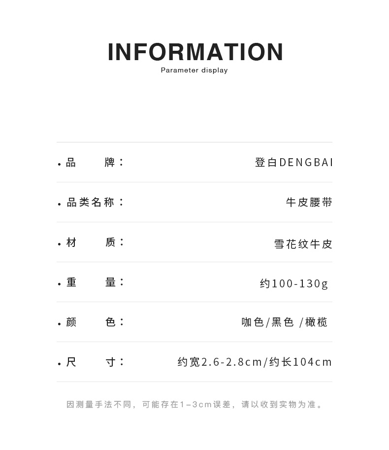 登白DENGBAI 雪花纹马蹄扣牛皮腰带DB3513