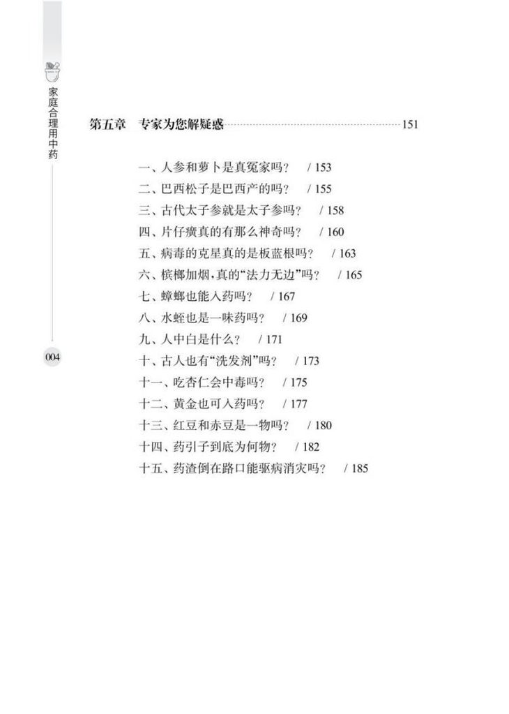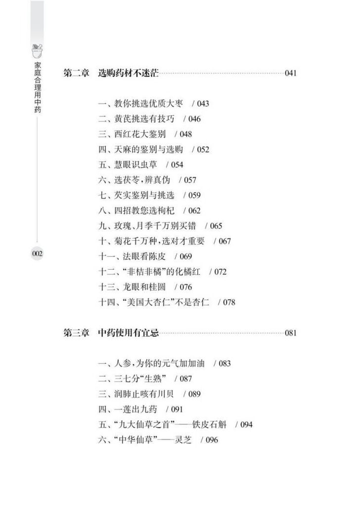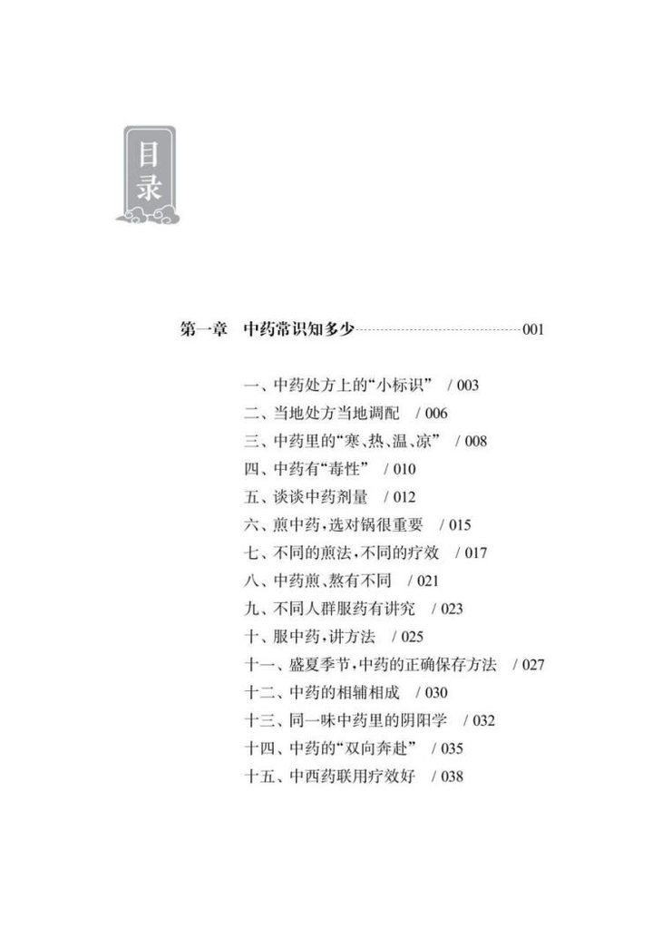 本书分为五个章节,作者用浅显易懂、风趣幽默的语言为读者介绍了中药的常识、中药材真伪的鉴别、中药的使用宜忌、家庭药膳的制作,并对大众在中药方面的疑惑进行了解答。本书可供关注自身健康、希望了解中医药科普知识的读者及中医药专业相关人士参考阅读。