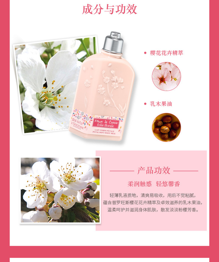 L'occitane欧舒丹甜蜜樱花润肤露250ml