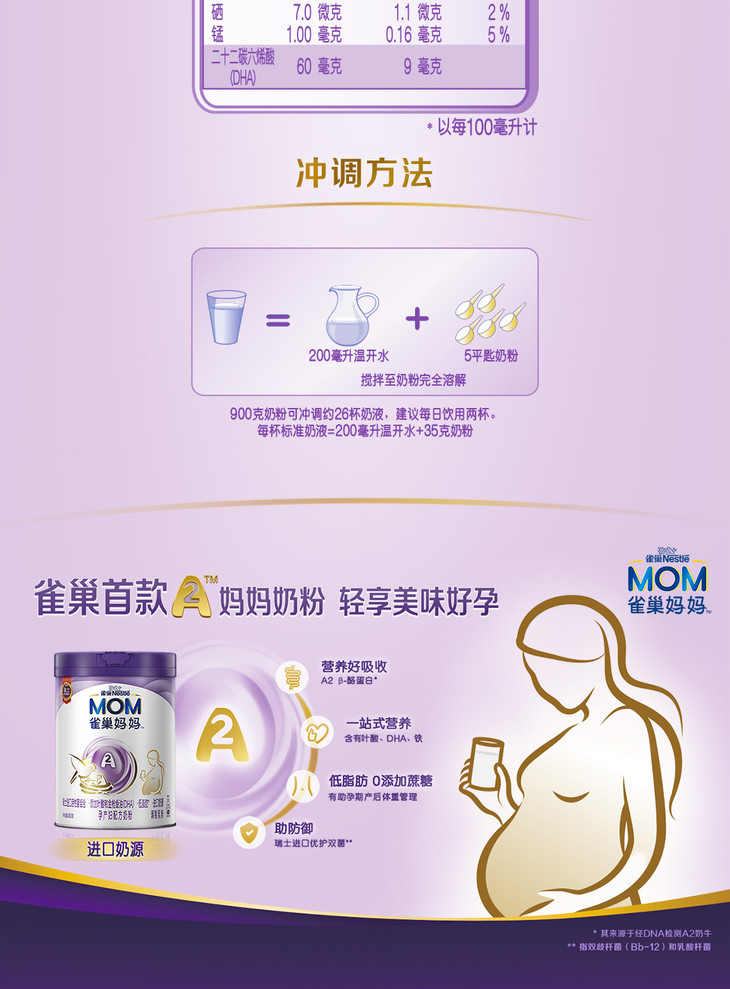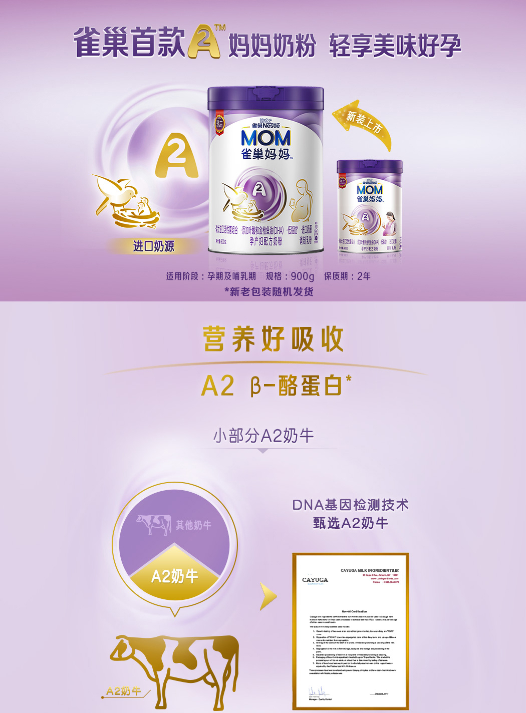 雀巢孕产妇奶粉 A2妈妈配方奶粉 (孕妇产妇适用)900克