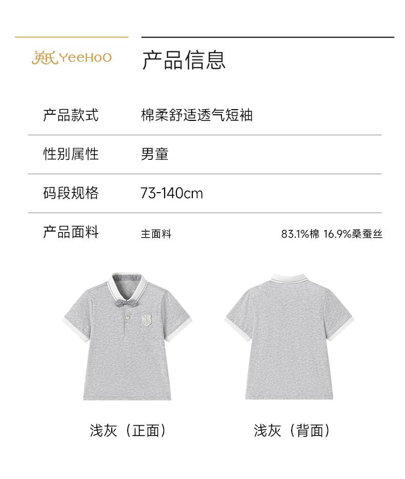 【商场同款】英氏男童翻领T恤春夏季新款polo衫儿童透气上衣