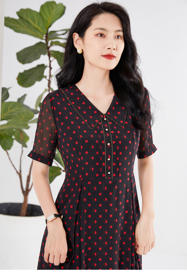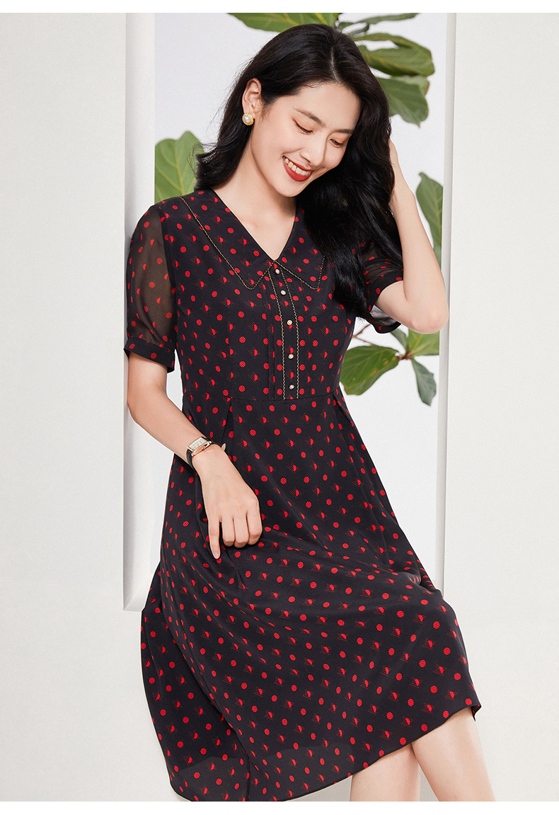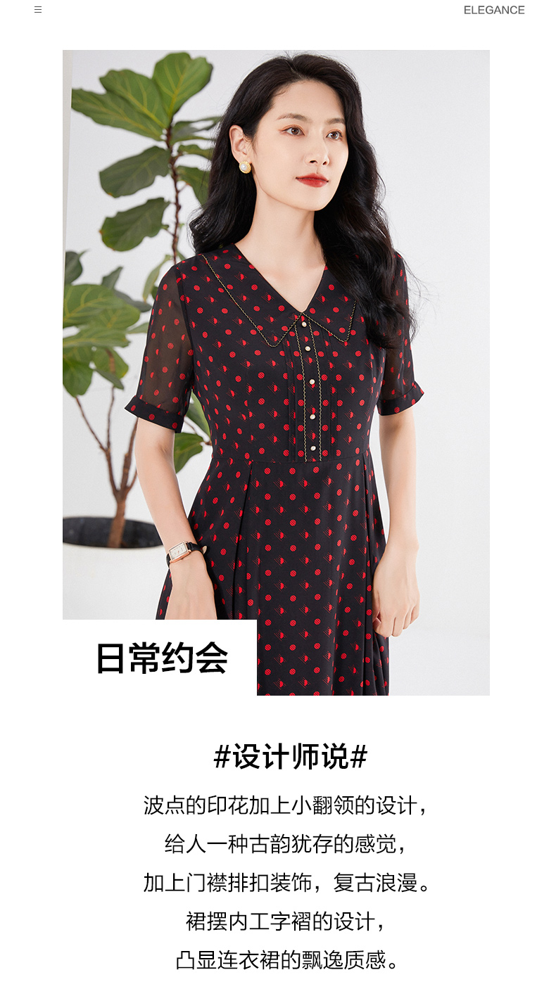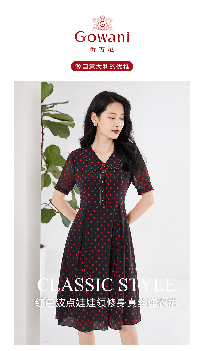 乔万尼真丝桑蚕丝连衣裙新款复古小波点收腰设计EF2E330