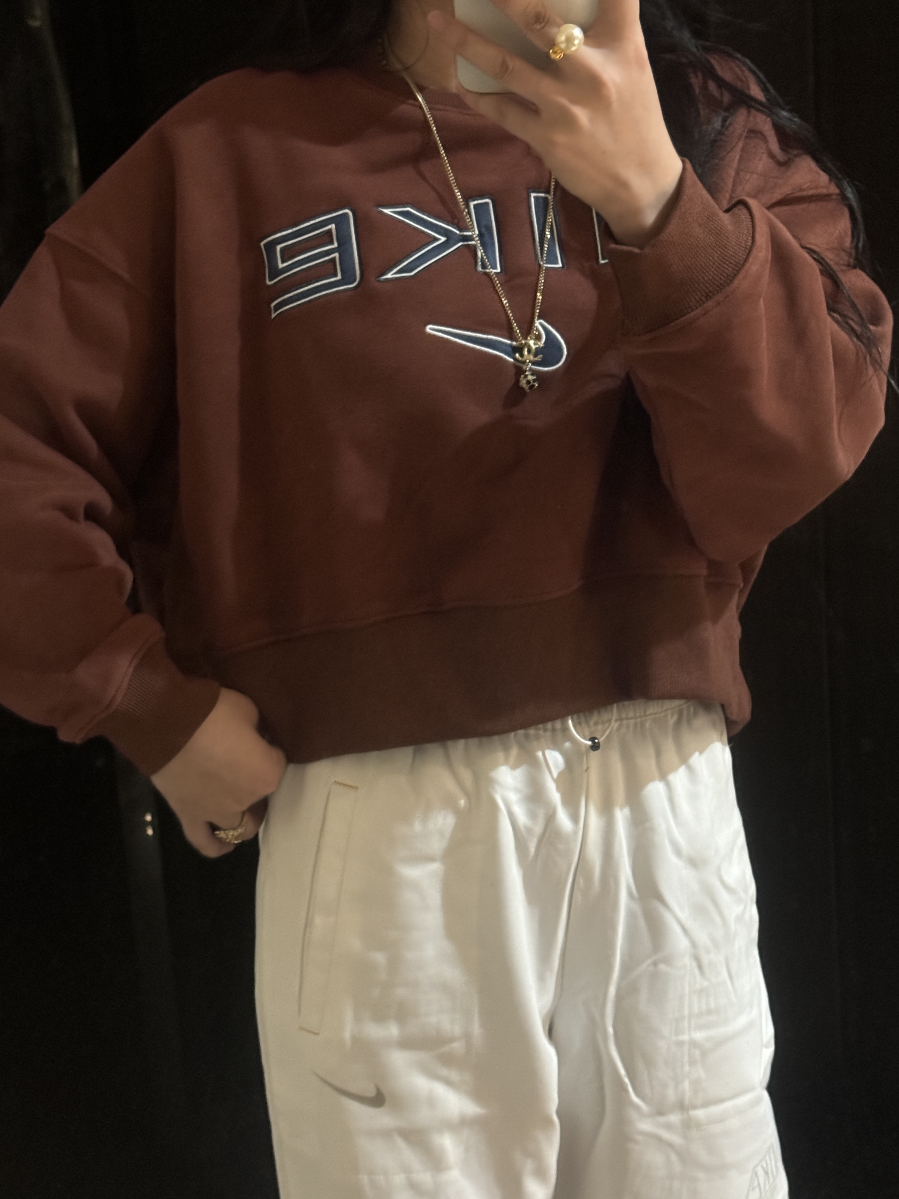 耐家品牌logo图案户外休闲运动圆领套头长袖卫衣 女款 谁懂啊😱! 一到秋天就想买卫衣,但普通款真的看腻了…直到遇见这件 哪家短款卫衣,直接戳中审美!纯棉面料是加绒加厚的毛圈棉,软fufu像被云朵⛅️包裹。 立体刺绣LOGO:蓝色字母+白色描边,复古又高级,胸口小勾✅标细节感爆棚。短款弧形下摆:悄悄拉长腿比例,配高腰裤/裙子都能穿出“三七分”身材。这款卫衣融合了运动与时尚元素,既保留了耐家品牌的经典运动风格,又通过短款设计和暖色调展现出休闲、潮流的穿搭效果,S码80-115斤以内⚠️ M码90-130斤以内⚠️ XL码100-145斤以内。蕾姐红色S 白色XL效果⚠️