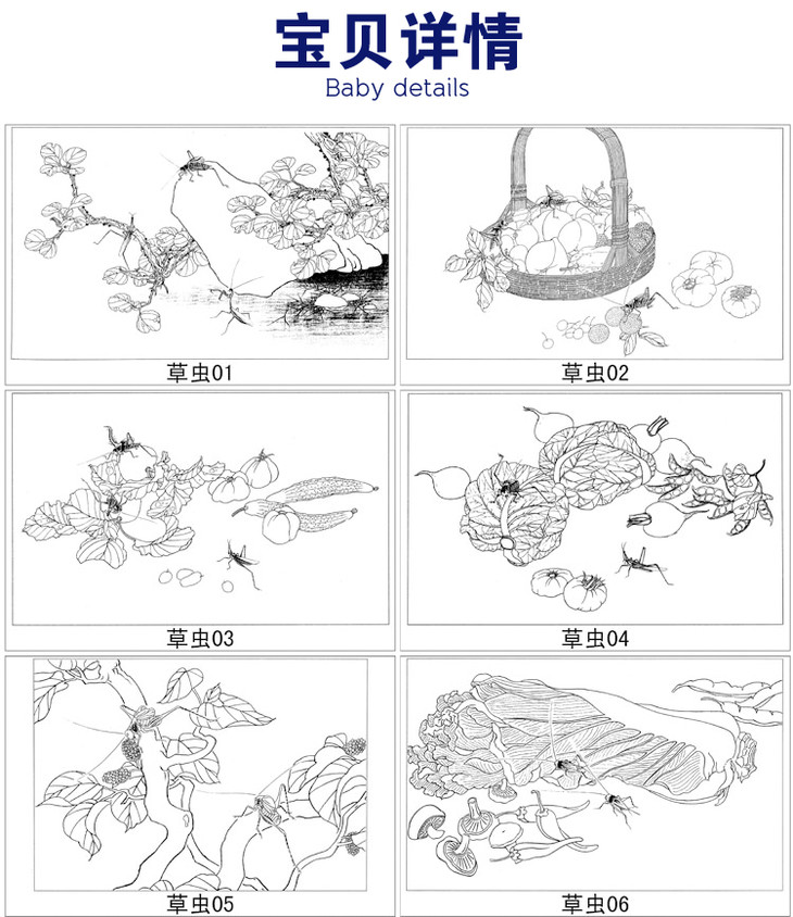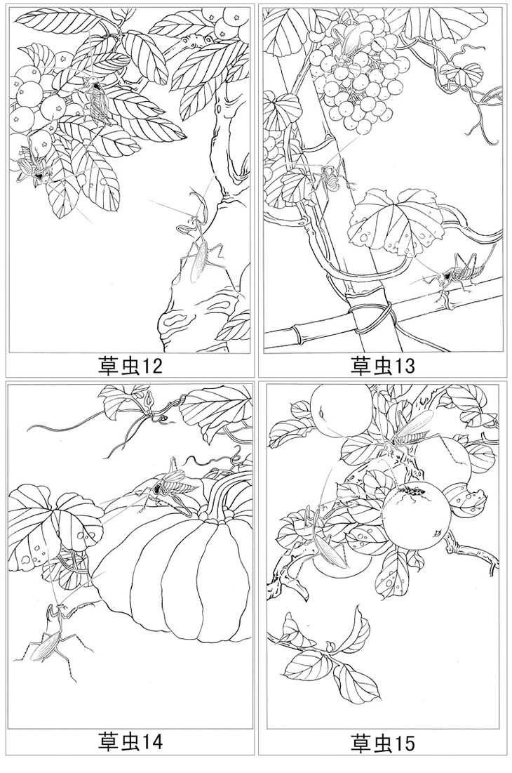15幅草虫白描合集-无彩图-整套出售-DB51