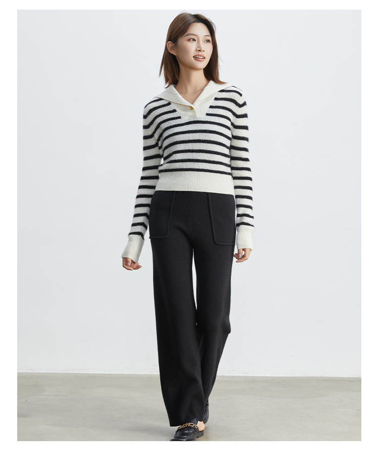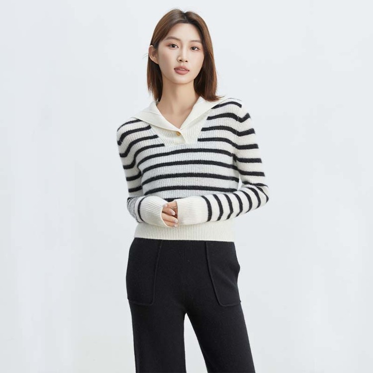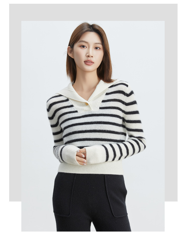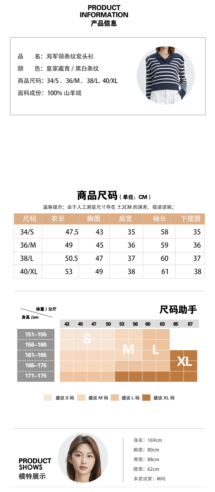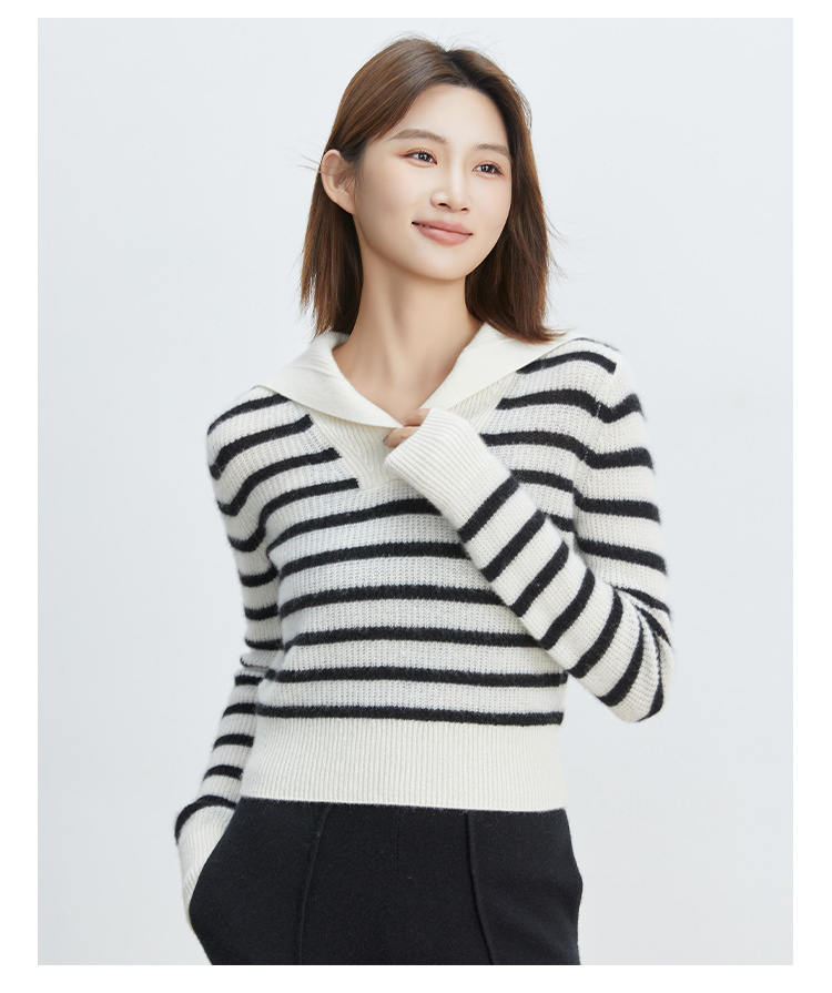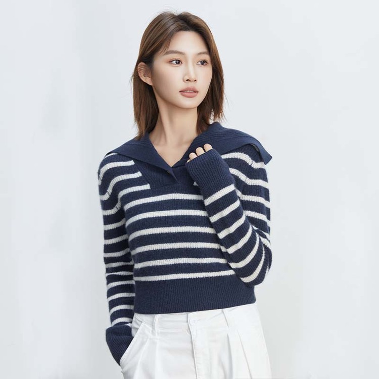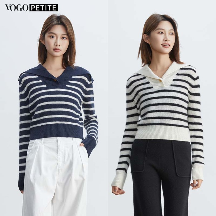 现货VogoPetite海军领条纹套头衫100%山羊绒BP133F1603