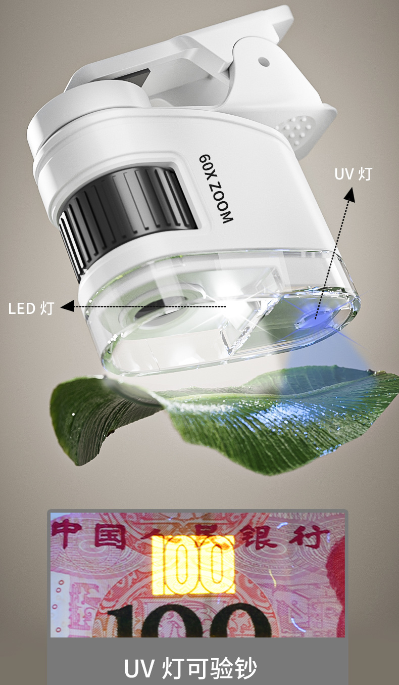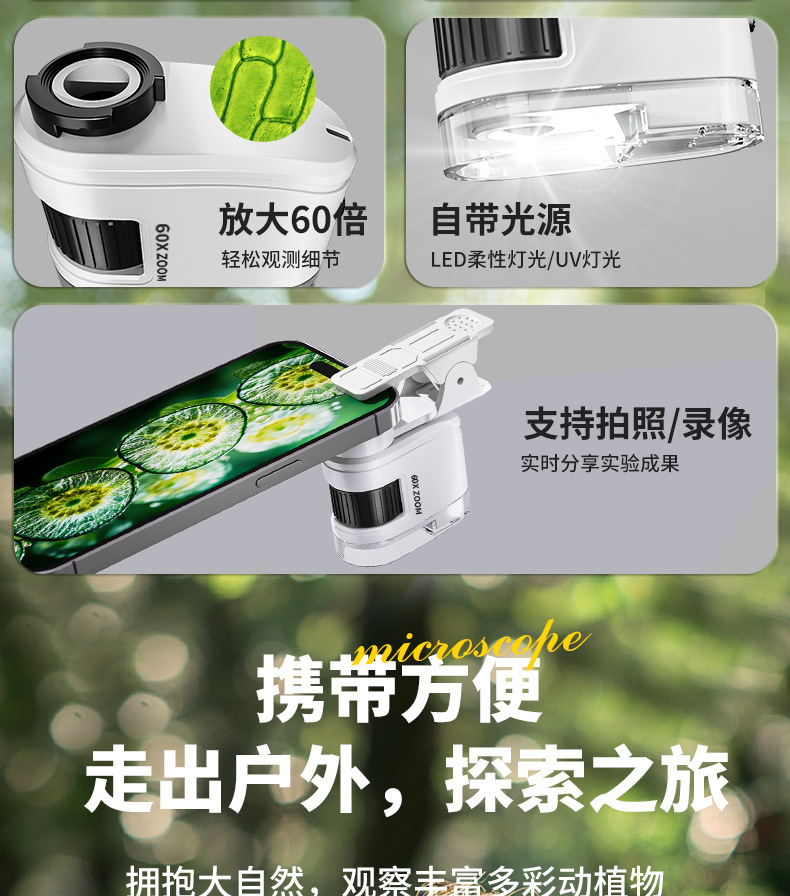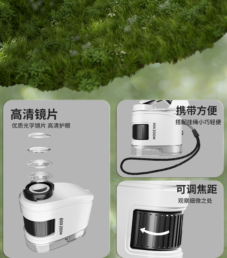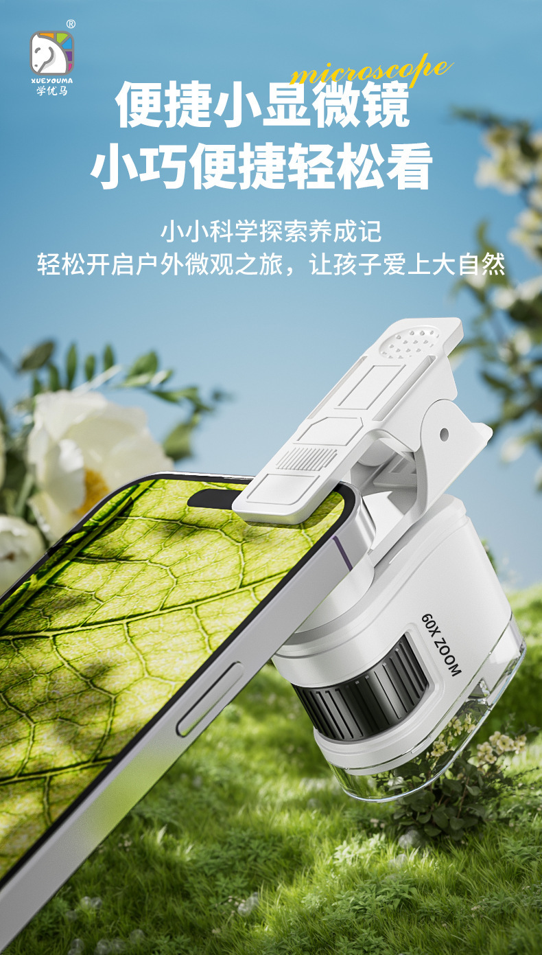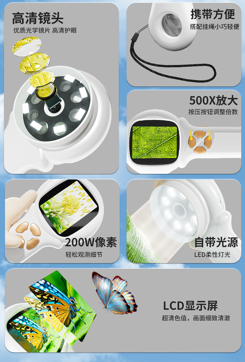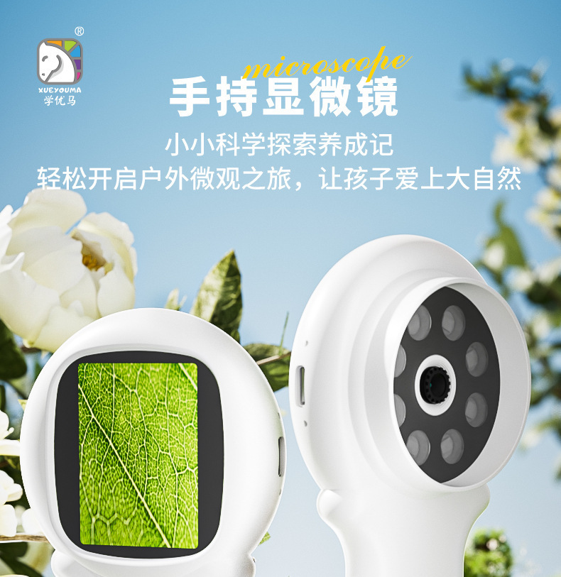 学优马手持显微镜 手持显微镜+便携小显微镜 儿童初中小高清电子放大镜科学实验玩具