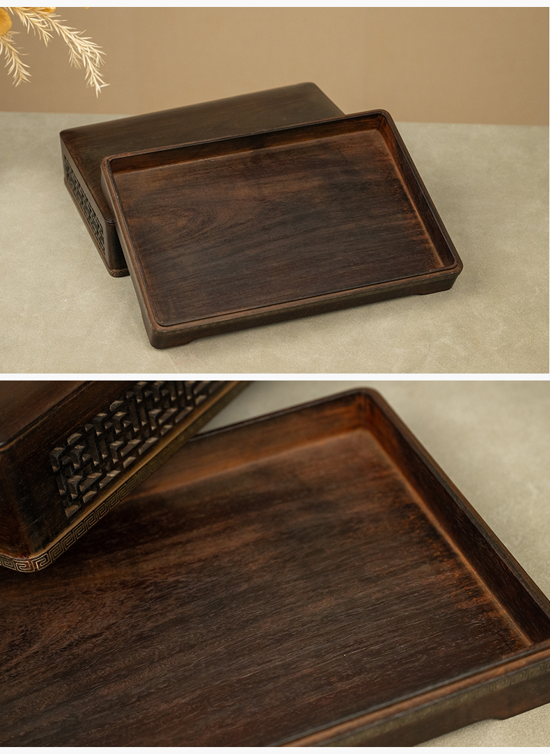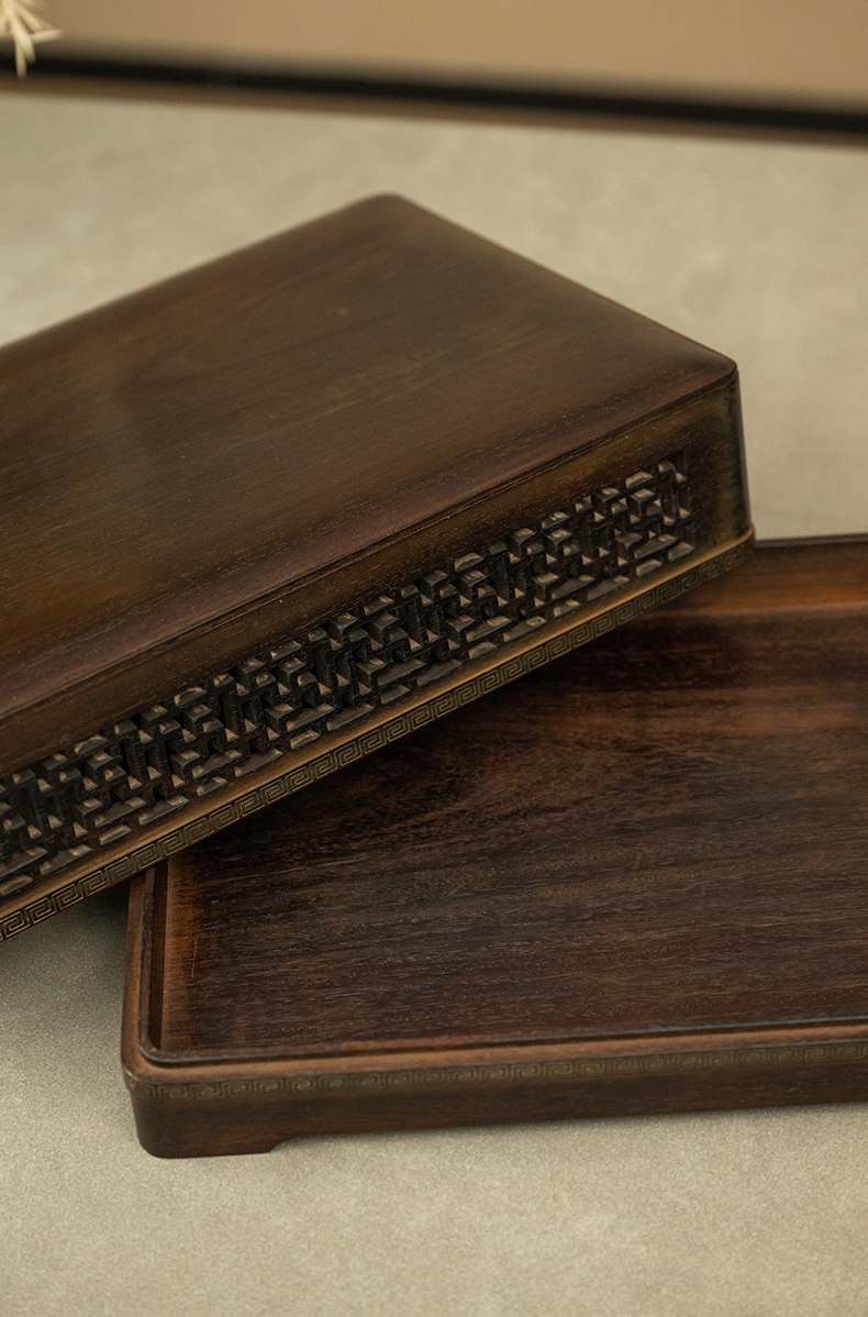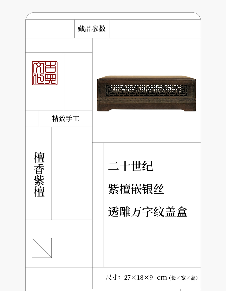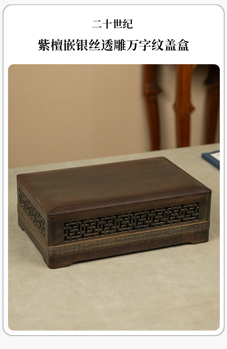 二十世纪 紫檀嵌银丝透雕万字纹盖盒