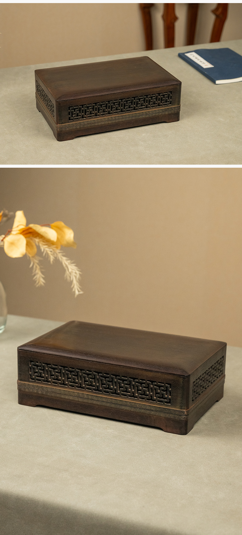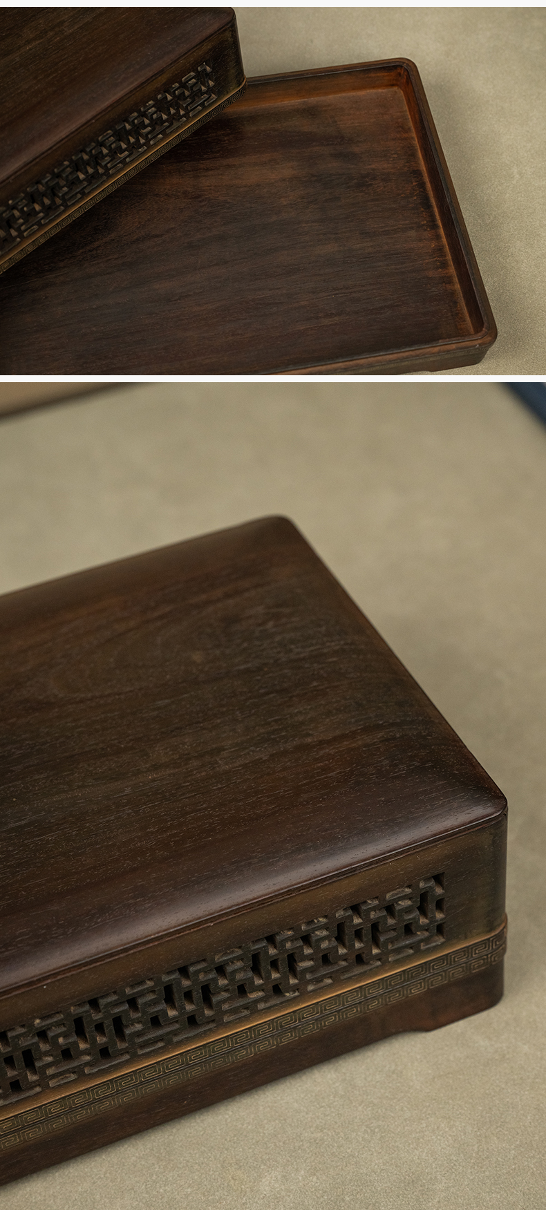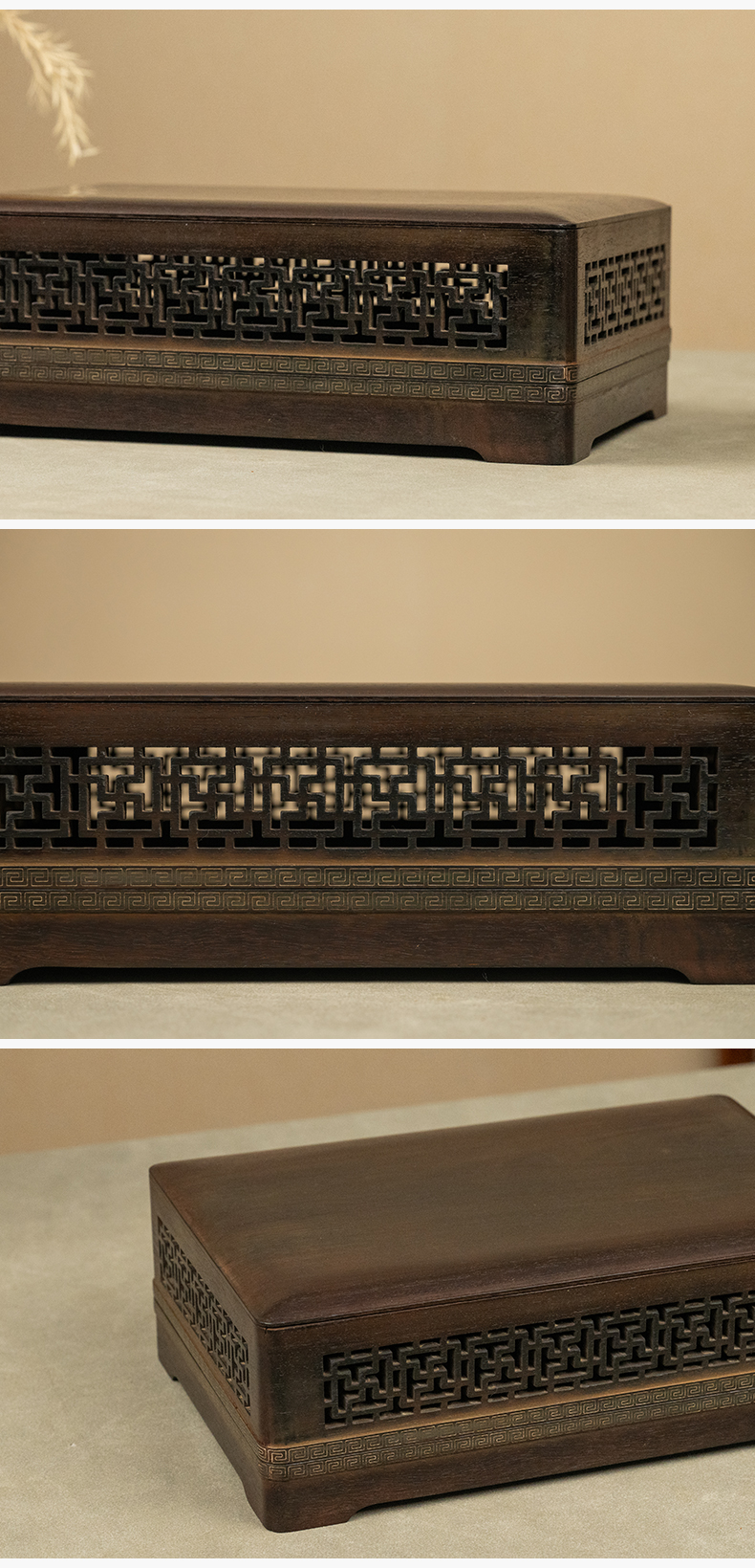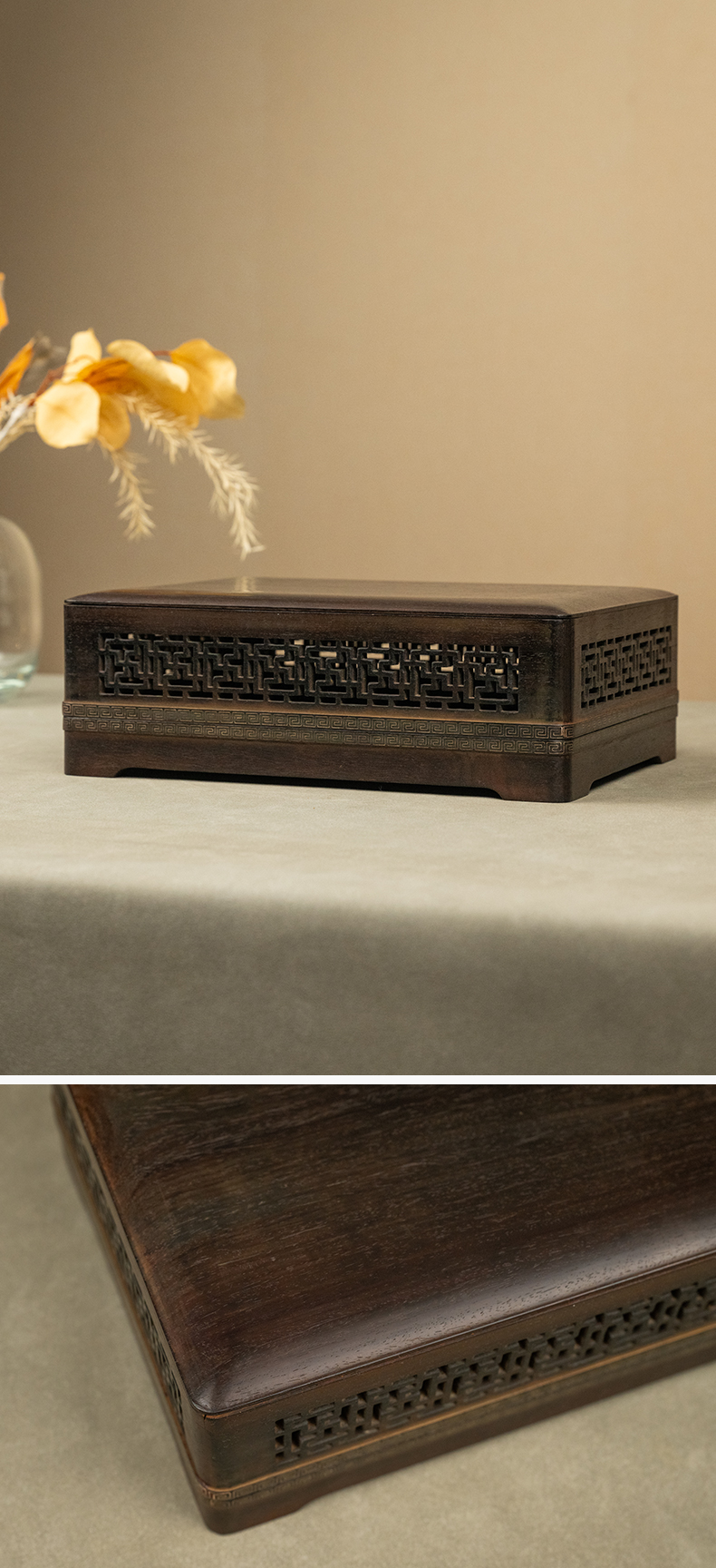 二十世纪 紫檀嵌银丝透雕万字纹盖盒