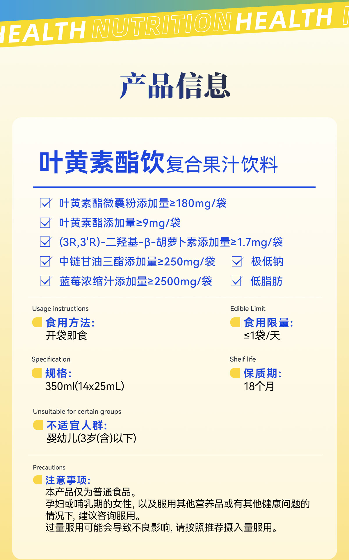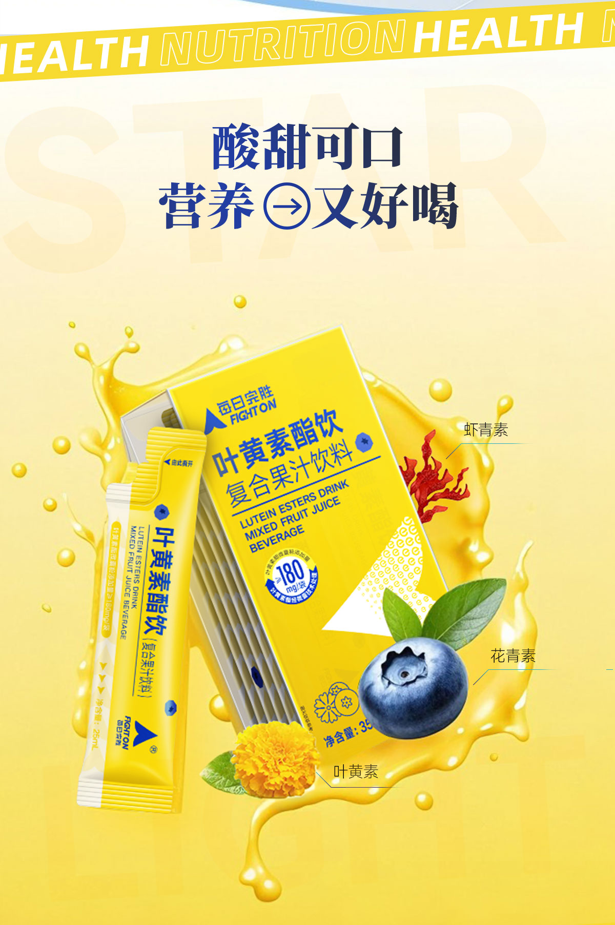 【3条尝鲜装】护眼抗疲劳乐奔拓每日完胜专利蓝莓叶黄素酯饮儿童青少年成人花青素
