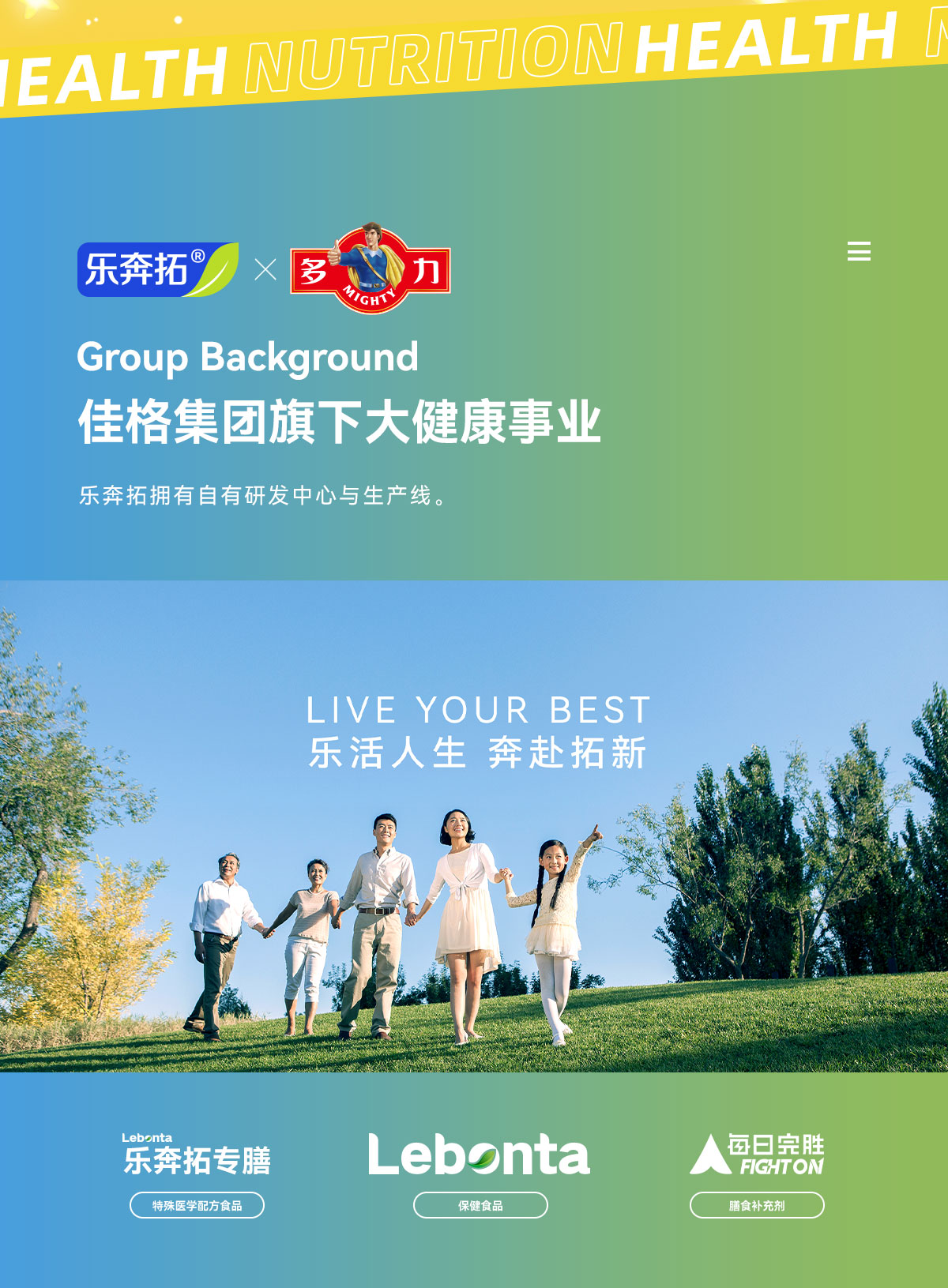 - 乐奔拓专注于健康膳食营养领域,主营膳食补充剂、健康食品以及特殊医学用途配方食品,是一家综合性的专业营养保健品公司。