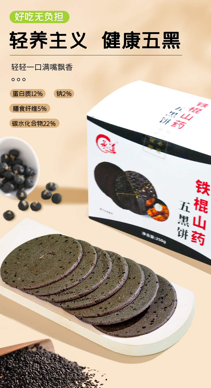 传统铁棍山药五黑粗粮饼干老式正宗薄片饼干零食独立小包装