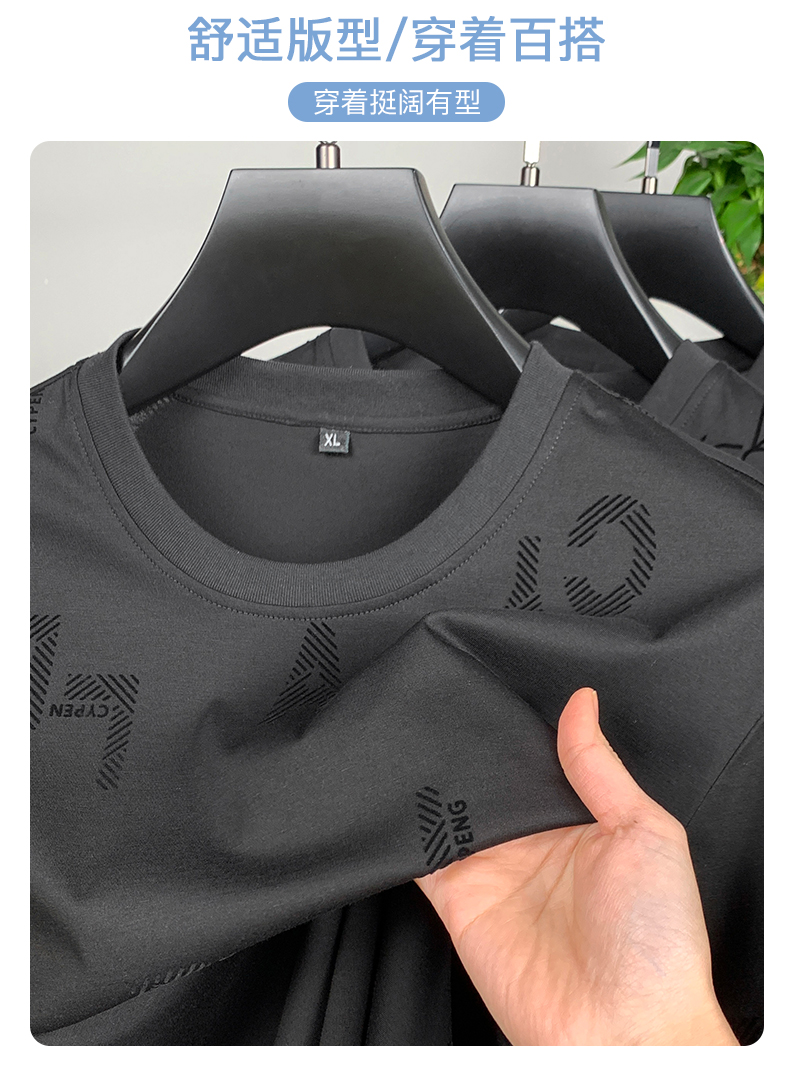 【丝光棉】【新款DPF】大依优型大码短袖T恤圆领加肥加大男装大号大码上衣男士休闲半袖夏季