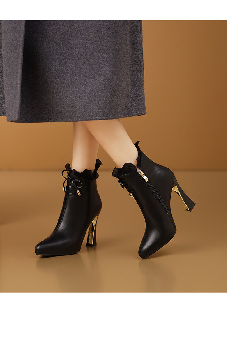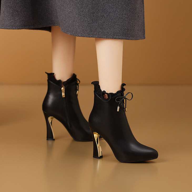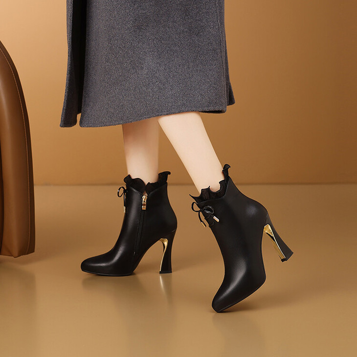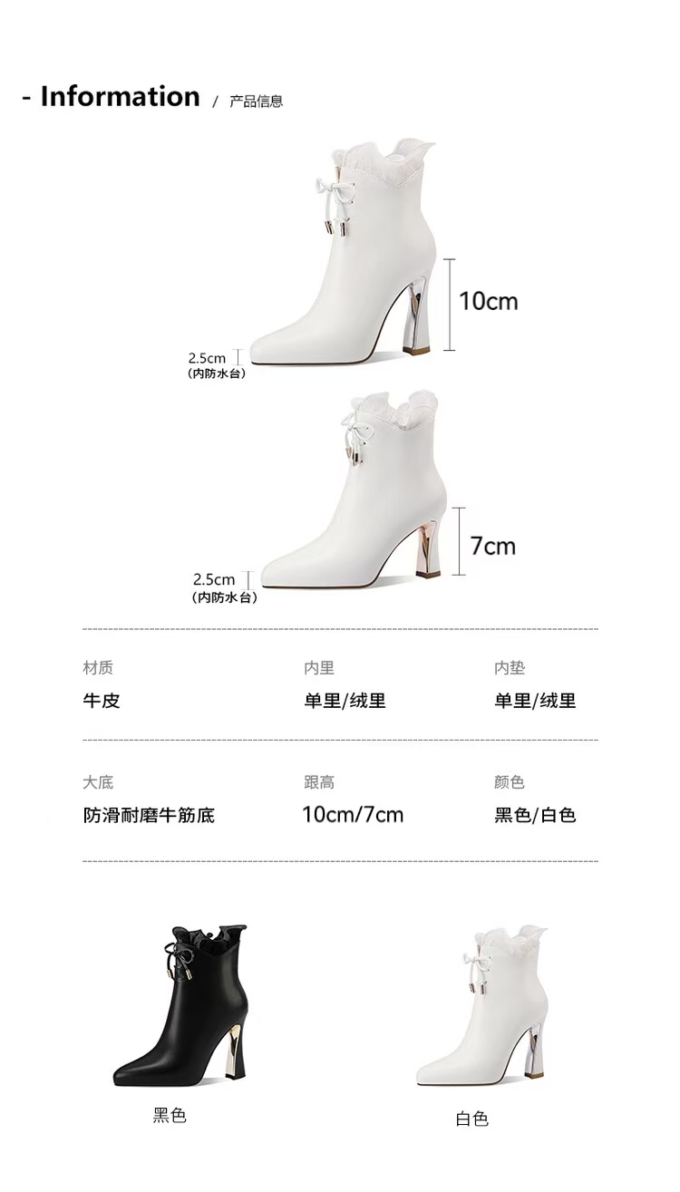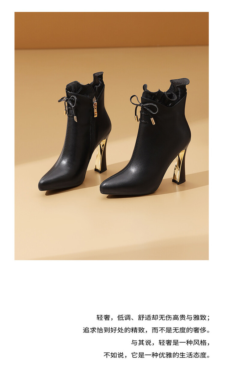 【预售5天】两种跟高~名媛辣妈优雅气质时装靴尖头粗高跟蝴蝶结短靴女DS&9003