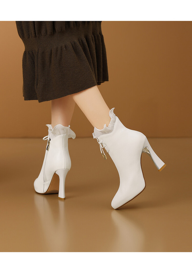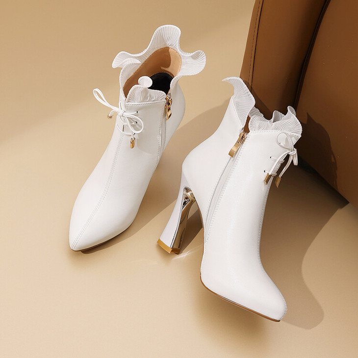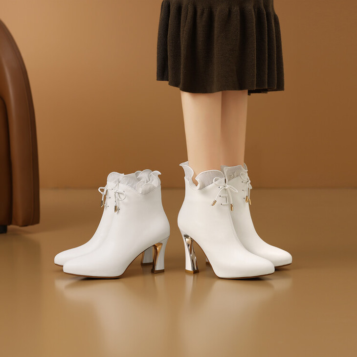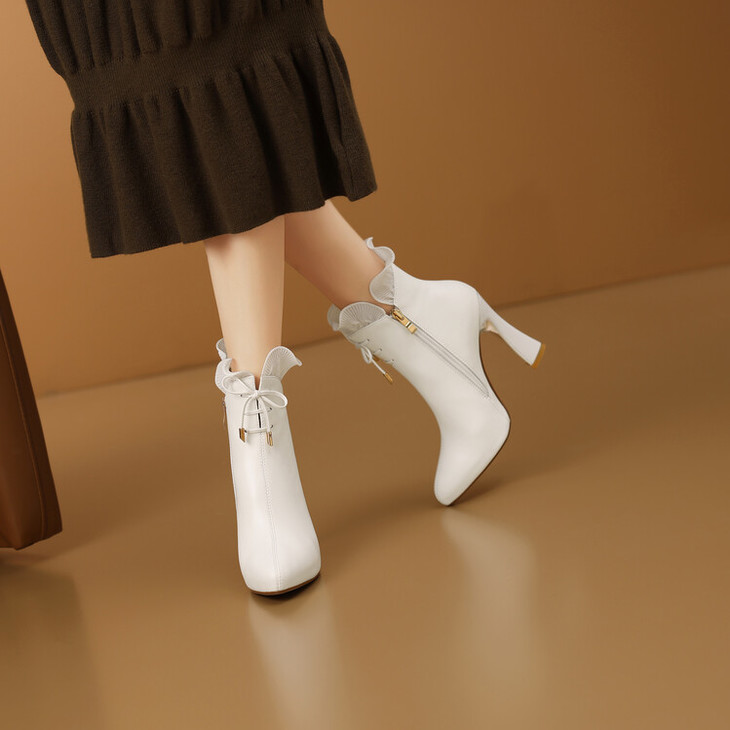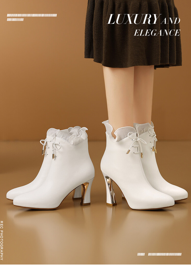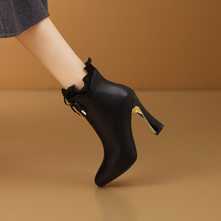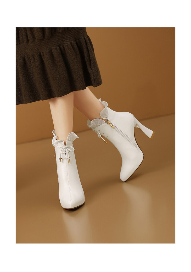 【预售5天】两种跟高~名媛辣妈优雅气质时装靴尖头粗高跟蝴蝶结短靴女DS&9003
