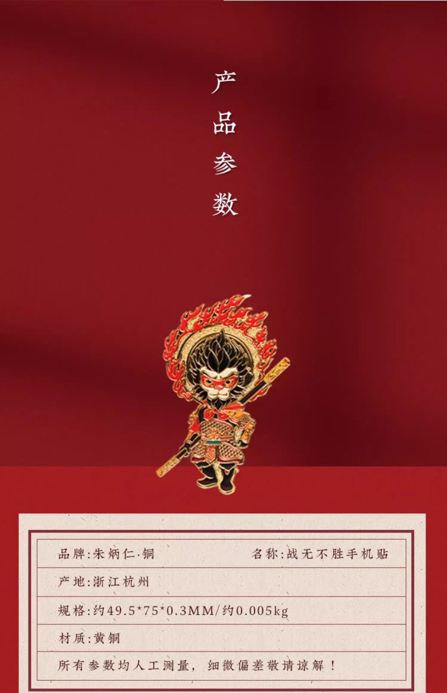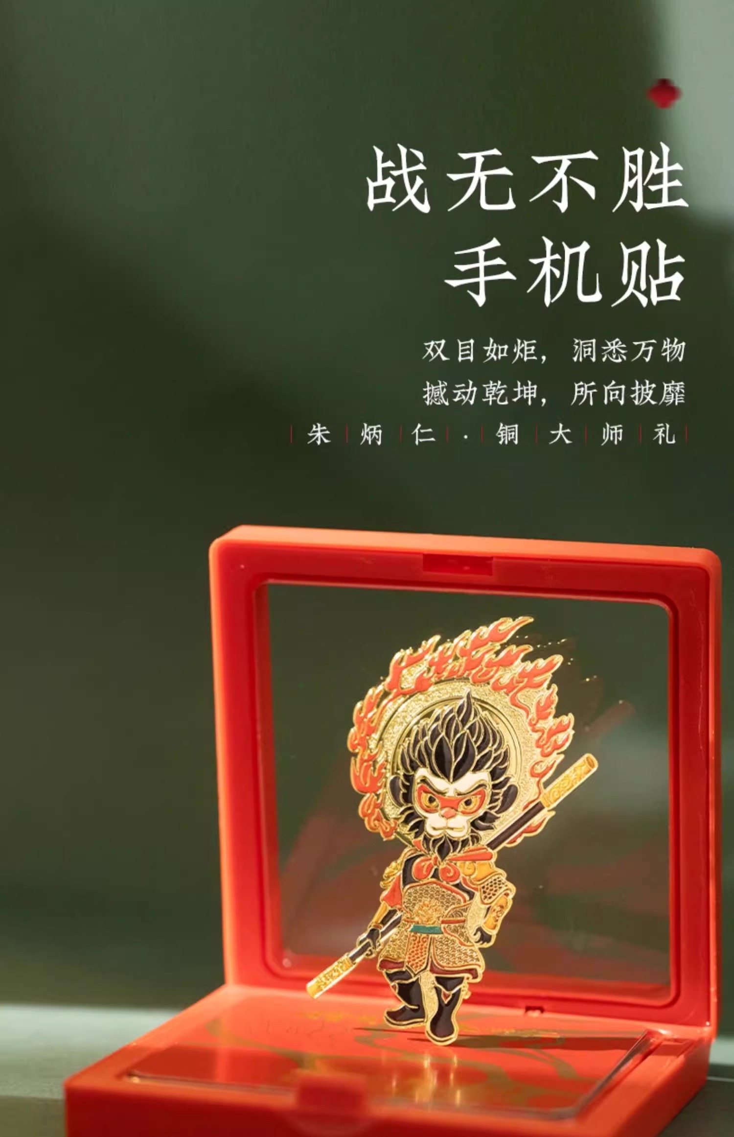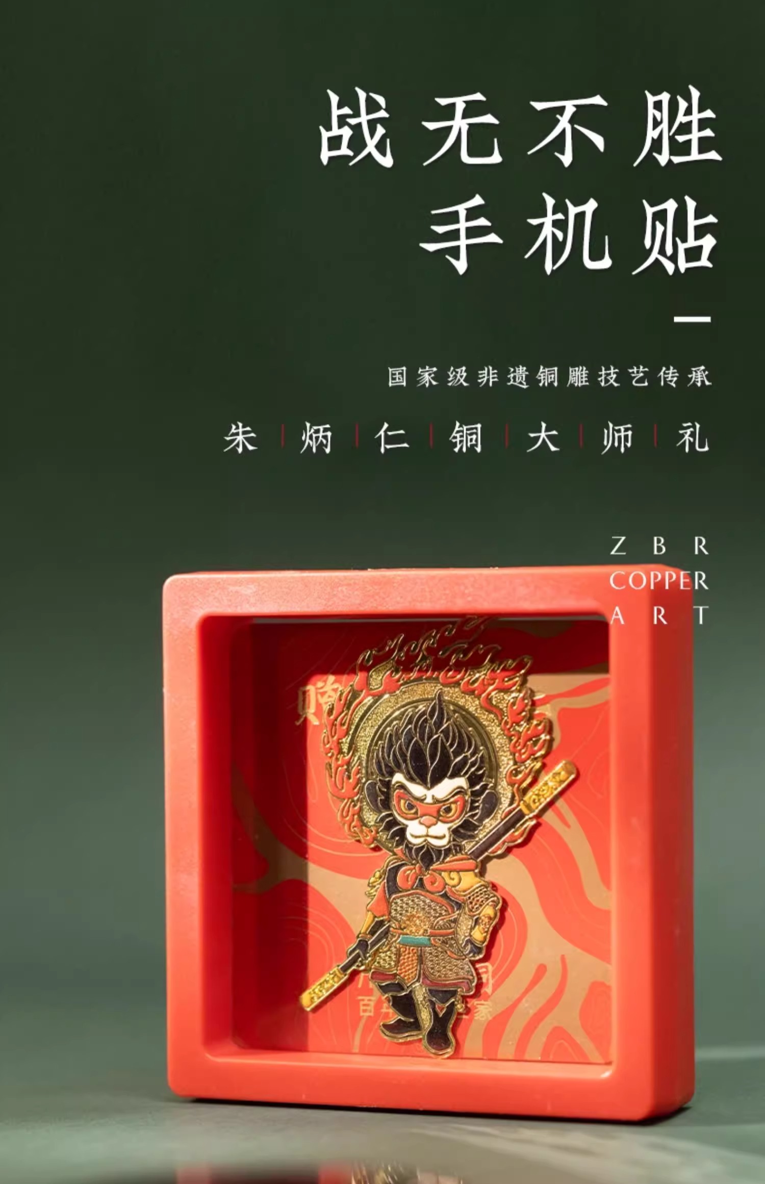 朱炳仁铜 战无不胜手机贴后背金属贴黑悟空齐天大圣国潮送礼