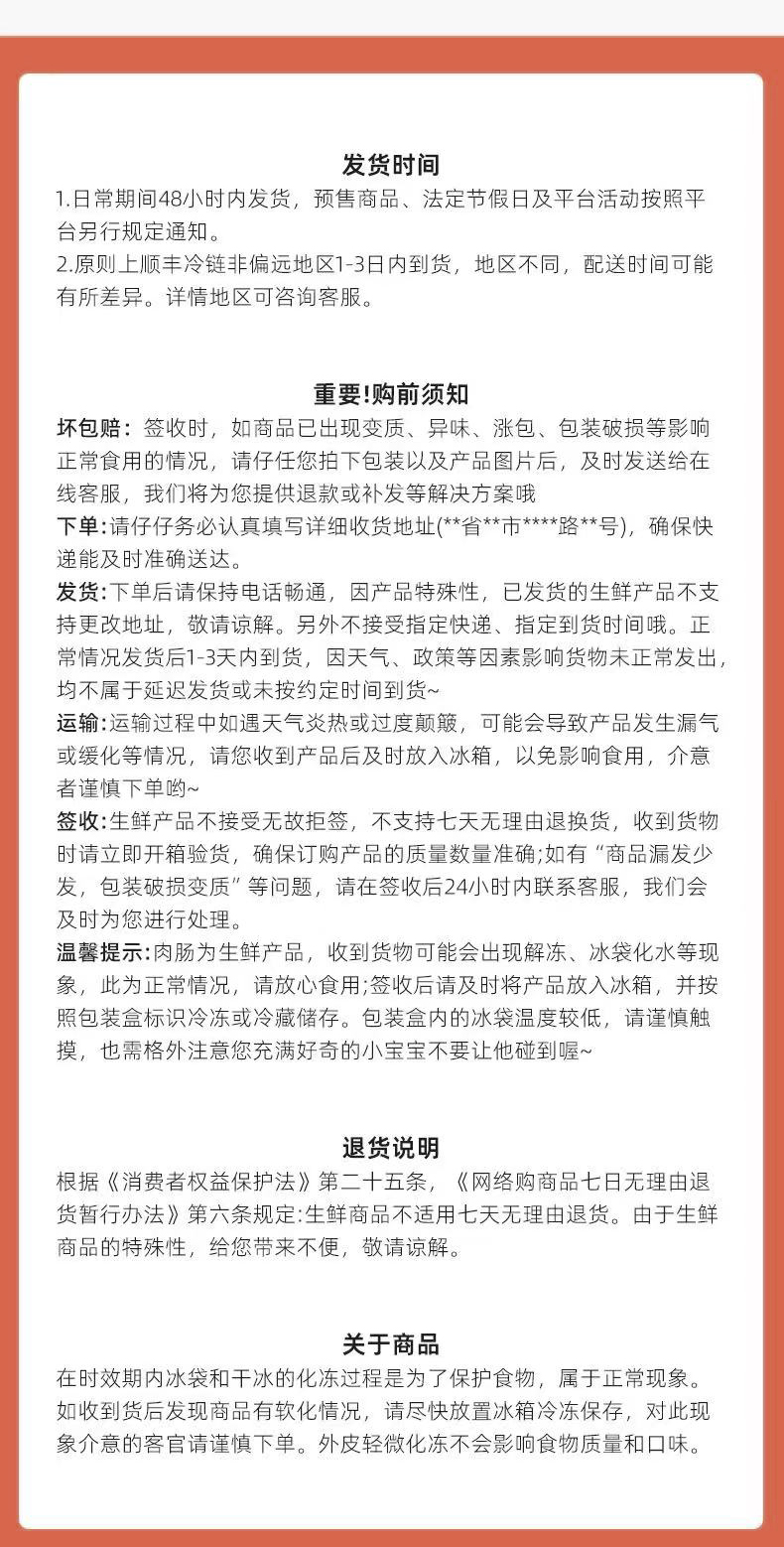 | 【品名】追肉记方方午餐肉 【规格】290g/盒(每盒2块) 【保质期】270天 【储存方法】-18℃冷冻保存 【产地】北京顺义 【发货地】河南郑州/河北廊坊 【发货快递】顺丰 【不发货区域】新疆,西藏,云南,海南,港澳台地区不发 【补运费地区】青海+15元 【发货时效】48小时,节假日顺延 【超值活动】 下任意一单赠送蔬菜膳食肠2包(8根)和黑椒爆汁肠1包(2根),到手10根! |
