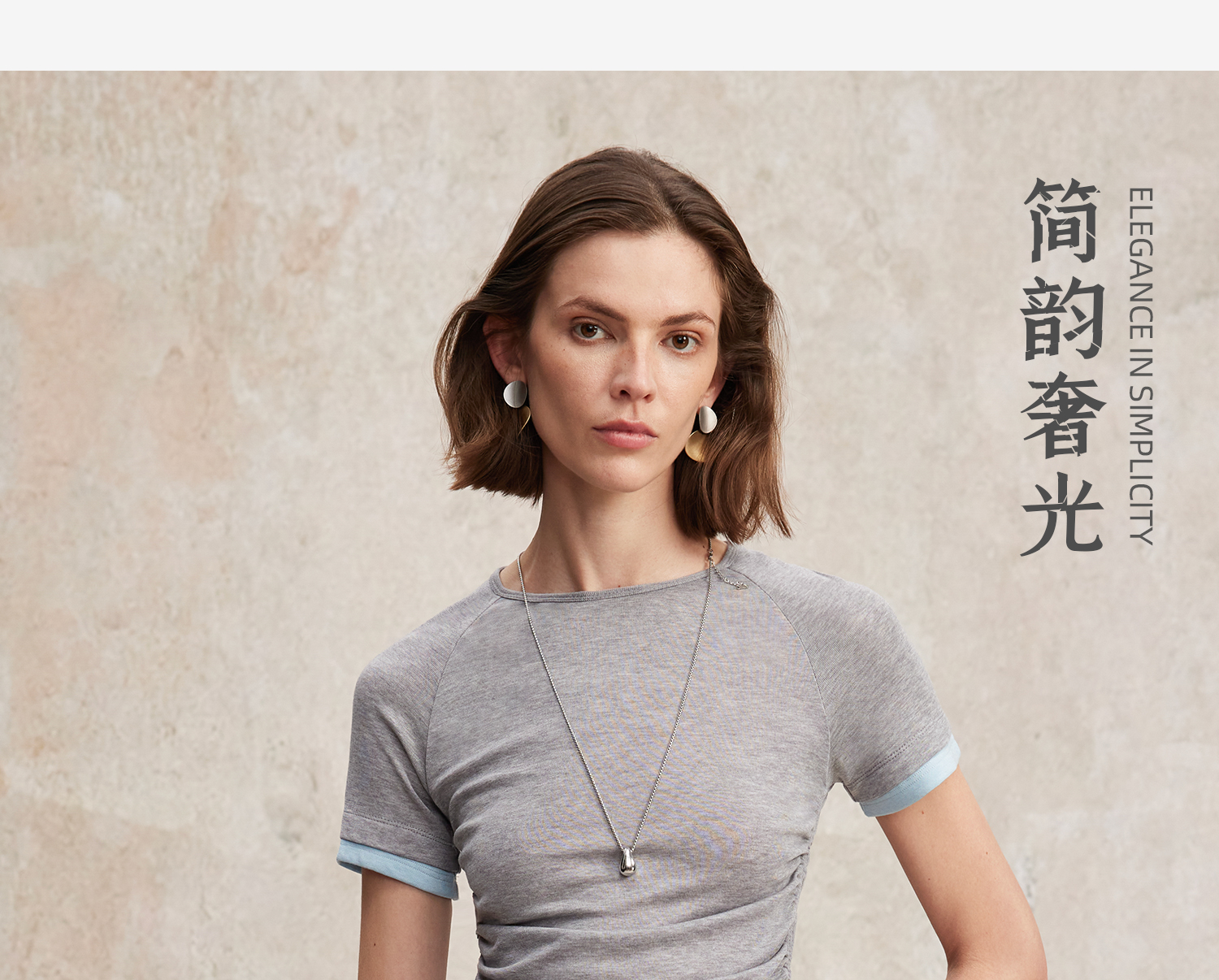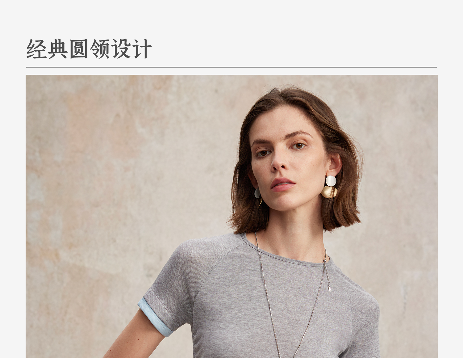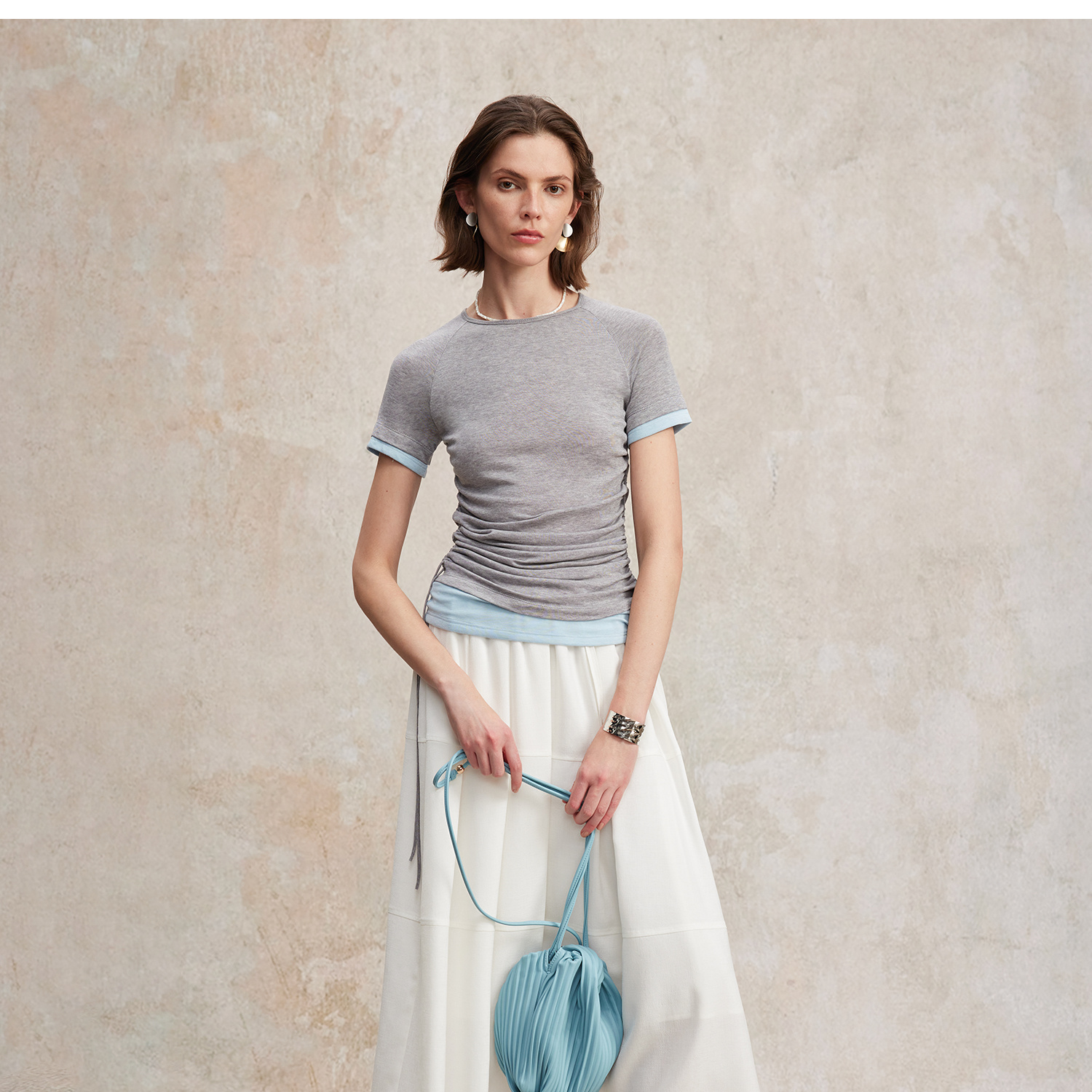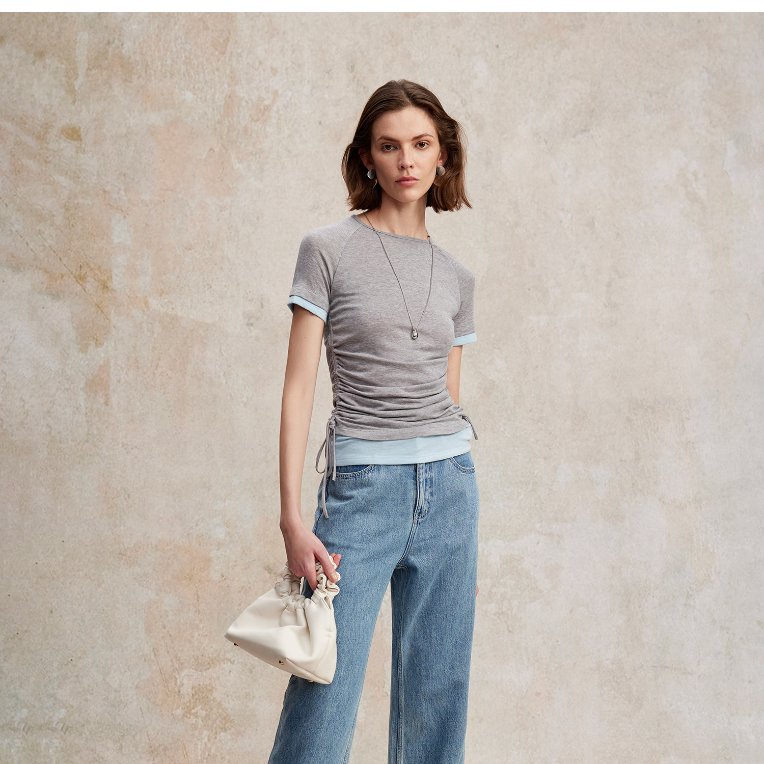 兰精天丝羊毛假两件抽绳修身T恤2025夏新T2502001