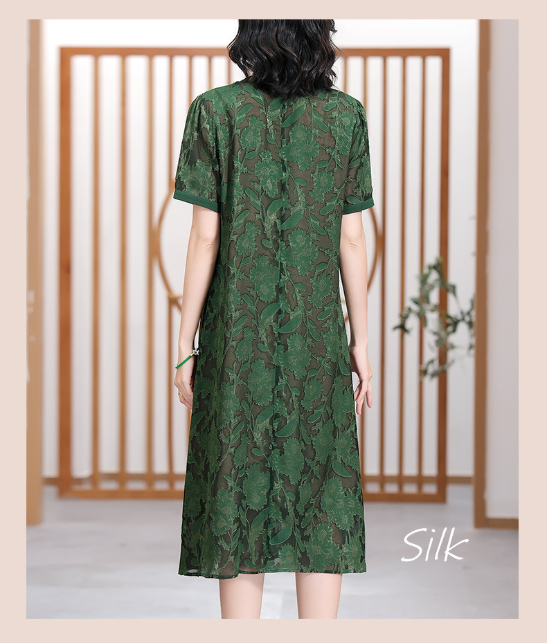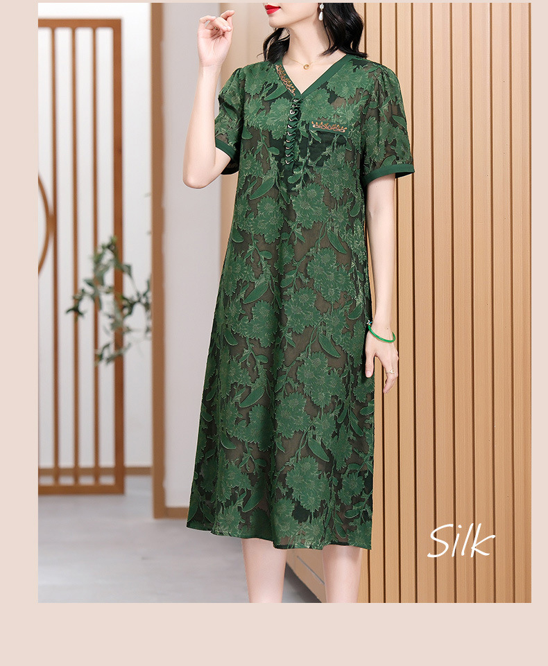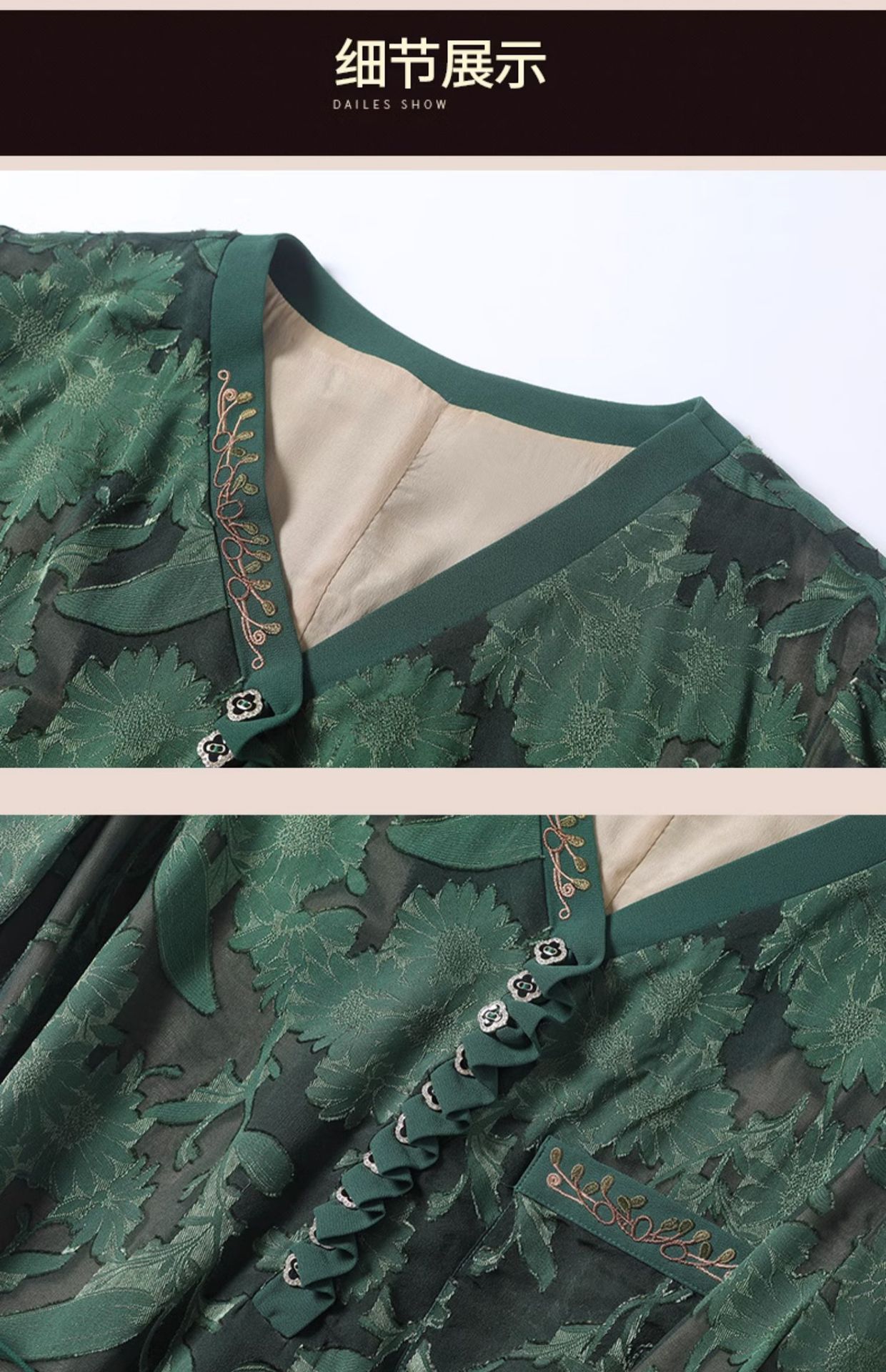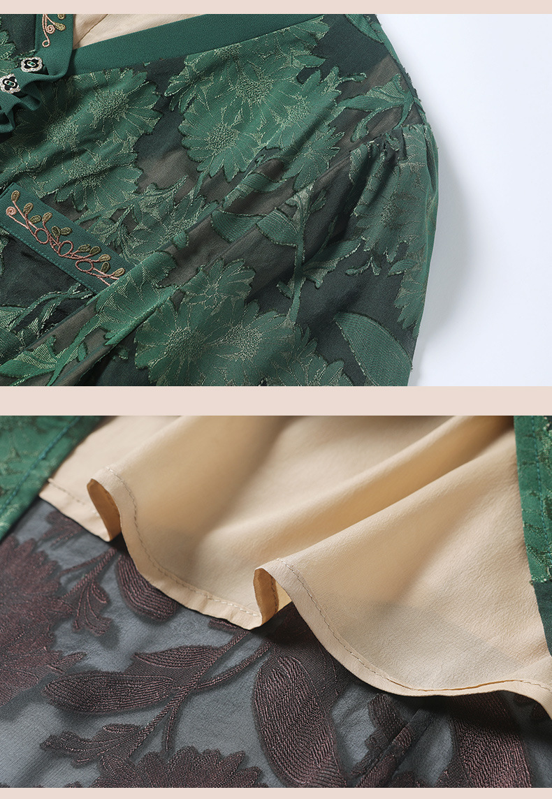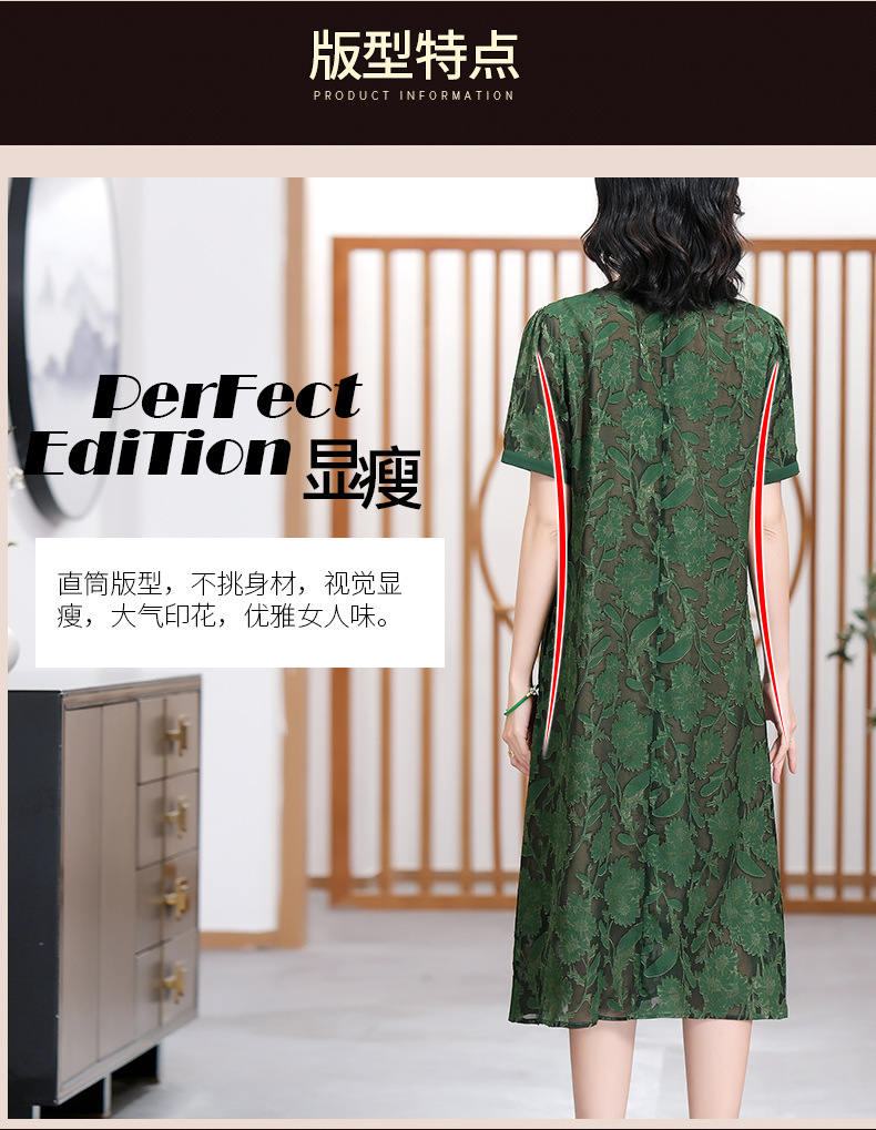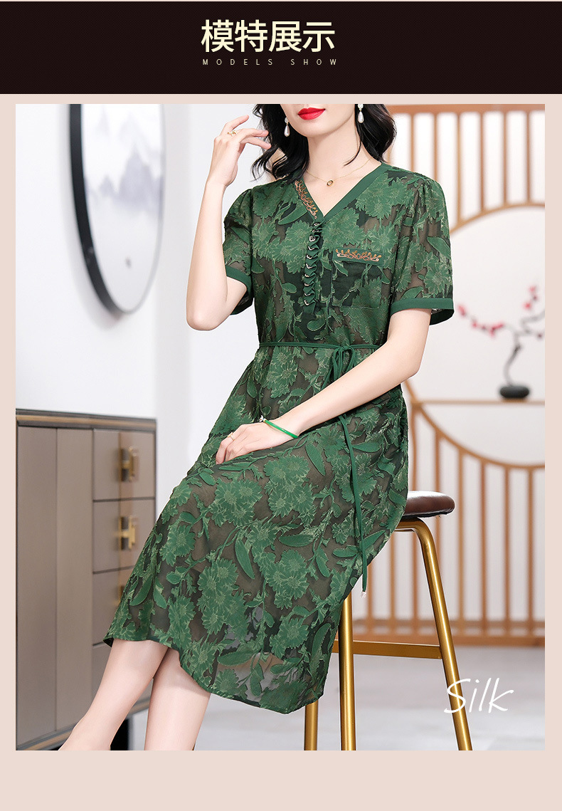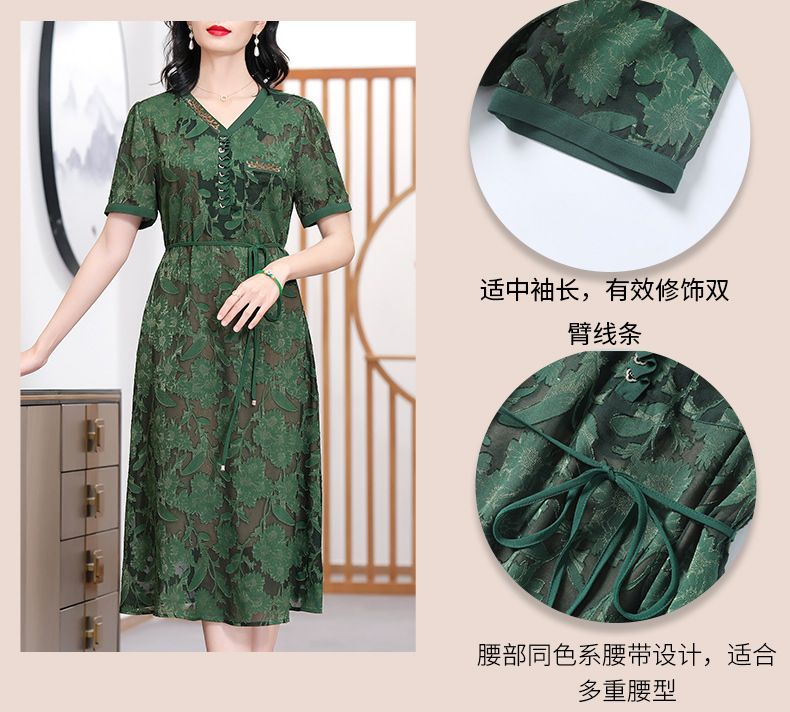 XT 88007-1莨纱浮雕式剪花连衣裙褶皱领精致衬肤色