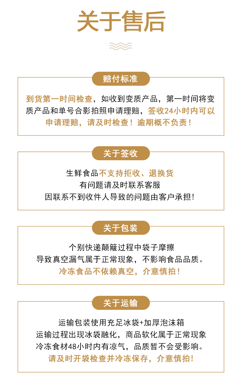 品名:东山岛正宗手工鱼丸 规格1:混合口味250g/袋*4袋; 规格2:混合口味250g/袋*6袋;拍几份发几个包裹,不一定能同时到达,请耐心等待 发货地/产地:福建东山岛 保质期:12个月 包装方式:袋装+冰袋+泡沫箱 物流信息:默认顺丰快递,不支持指定快递 发货区域:新疆、西藏、甘肃、宁夏、内蒙、青海、黑龙江、吉林不发; 物流详情:周六、周日及节假日除外,正常48小时内发货,到货时间约为2~5天,请耐心等待 售后说明:收到货后有质量问题,在24小时内都可以拍照(坏品+快递单面箱子一起拍)上传,申请按坏品比例理赔或联系客服,生鲜性质特殊,不支持7天无理由退换货;因地址错误,手机号联系不上,拒收等造成的损失无法售后,请理解; |