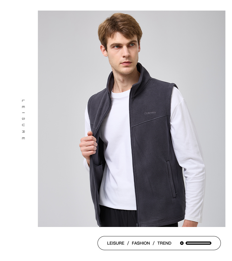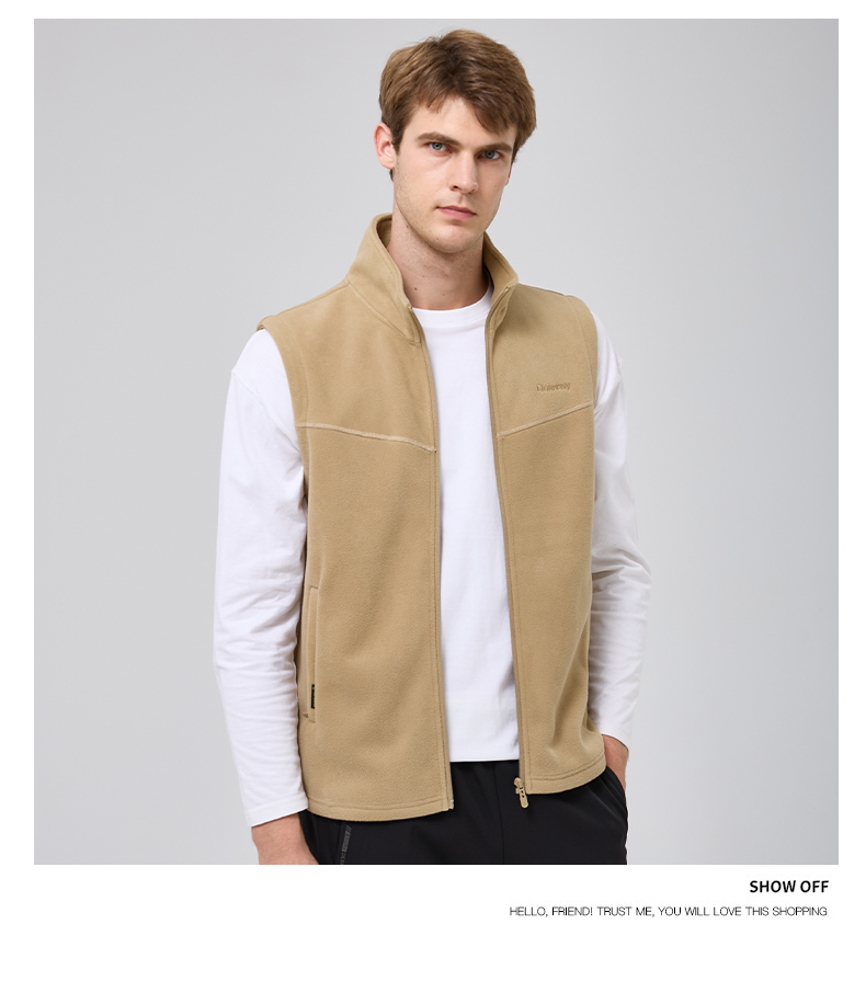 【圈】【摇粒绒】【新款DK】大依优型大码男装立领摇粒绒马甲简约休闲宽松外套男坎肩背心保暖