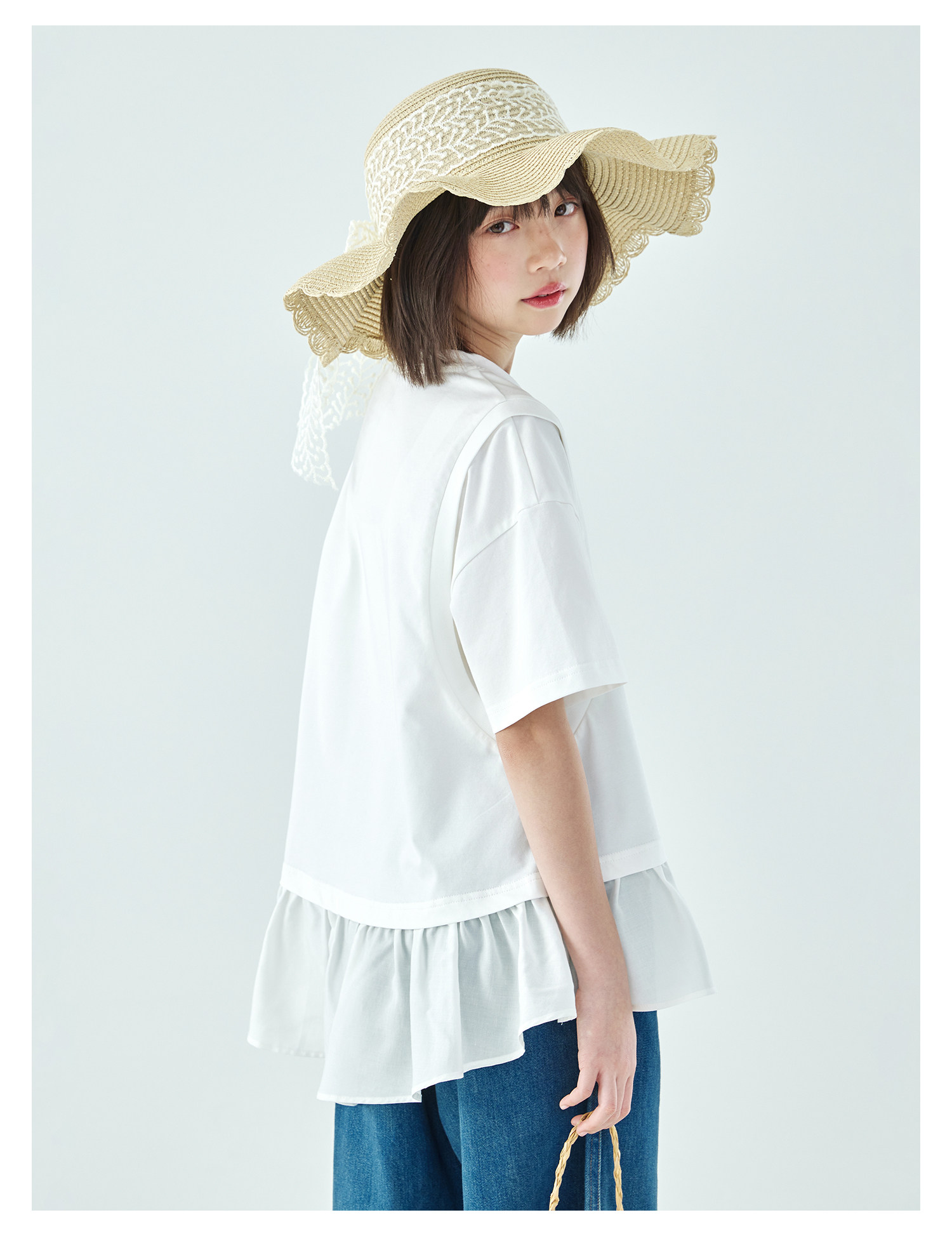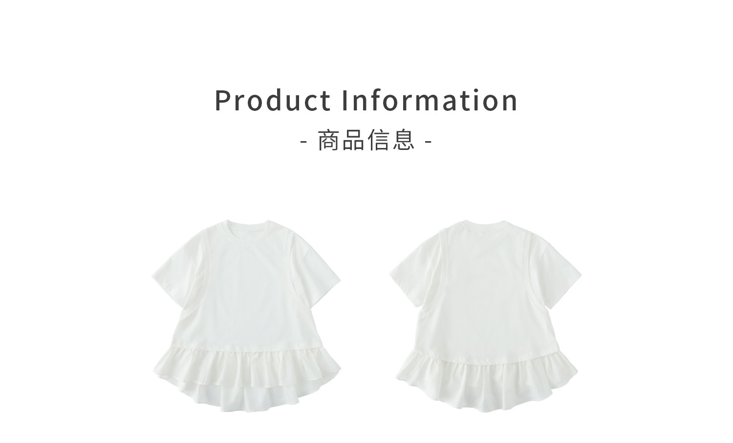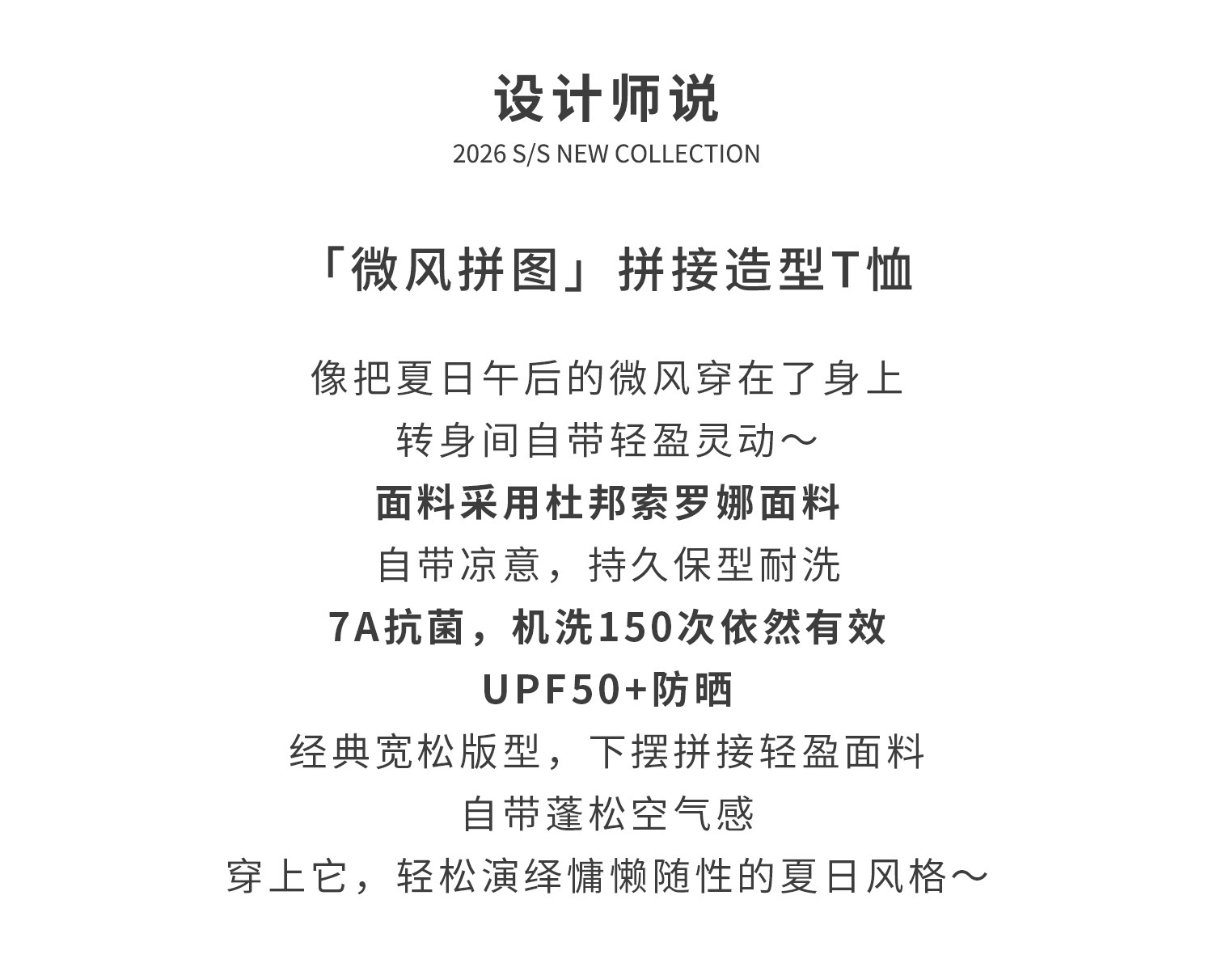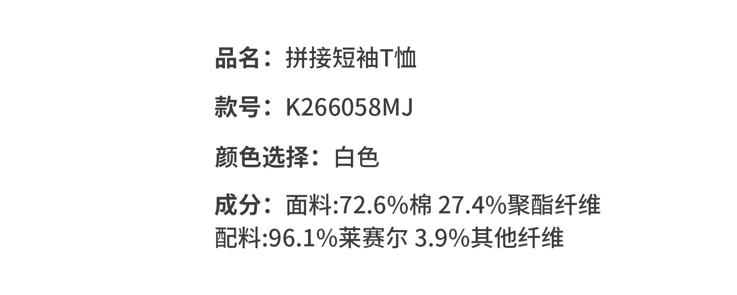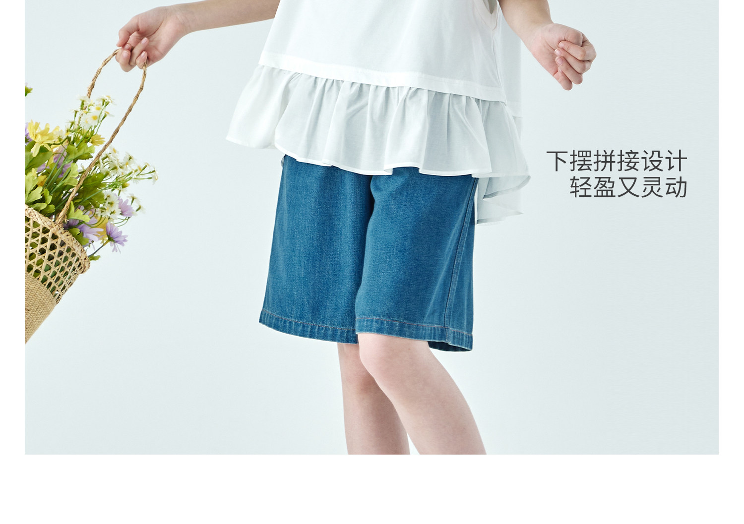 棵初2026年夏季新款中大女童拼接造型白色T恤凉感7A抗菌防晒短袖