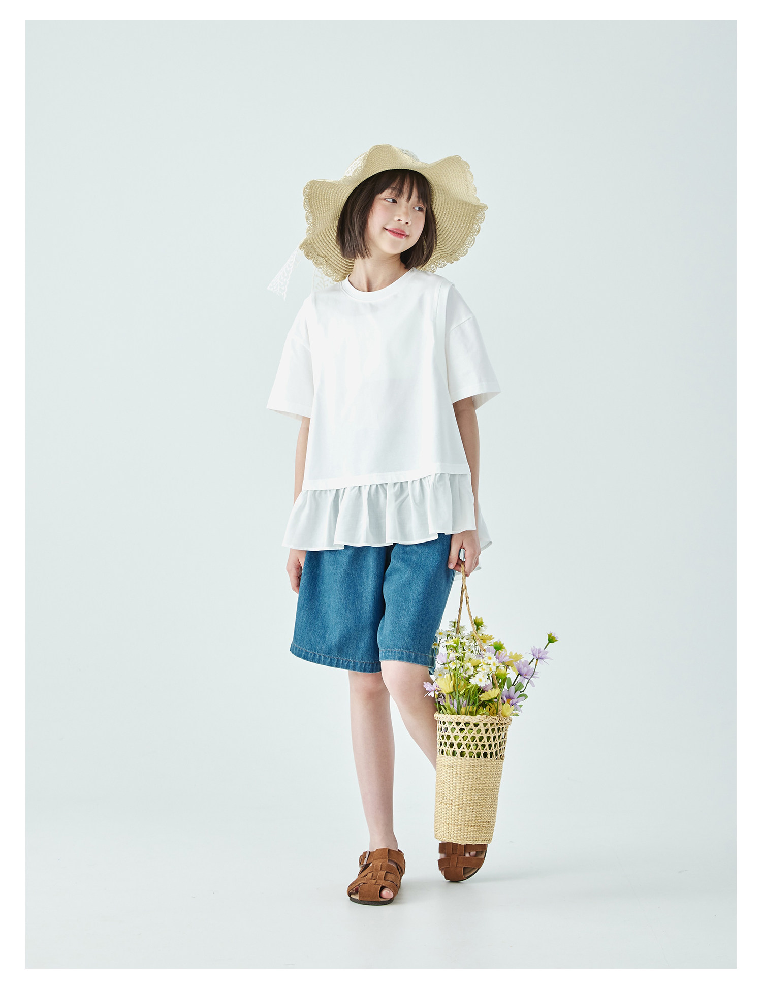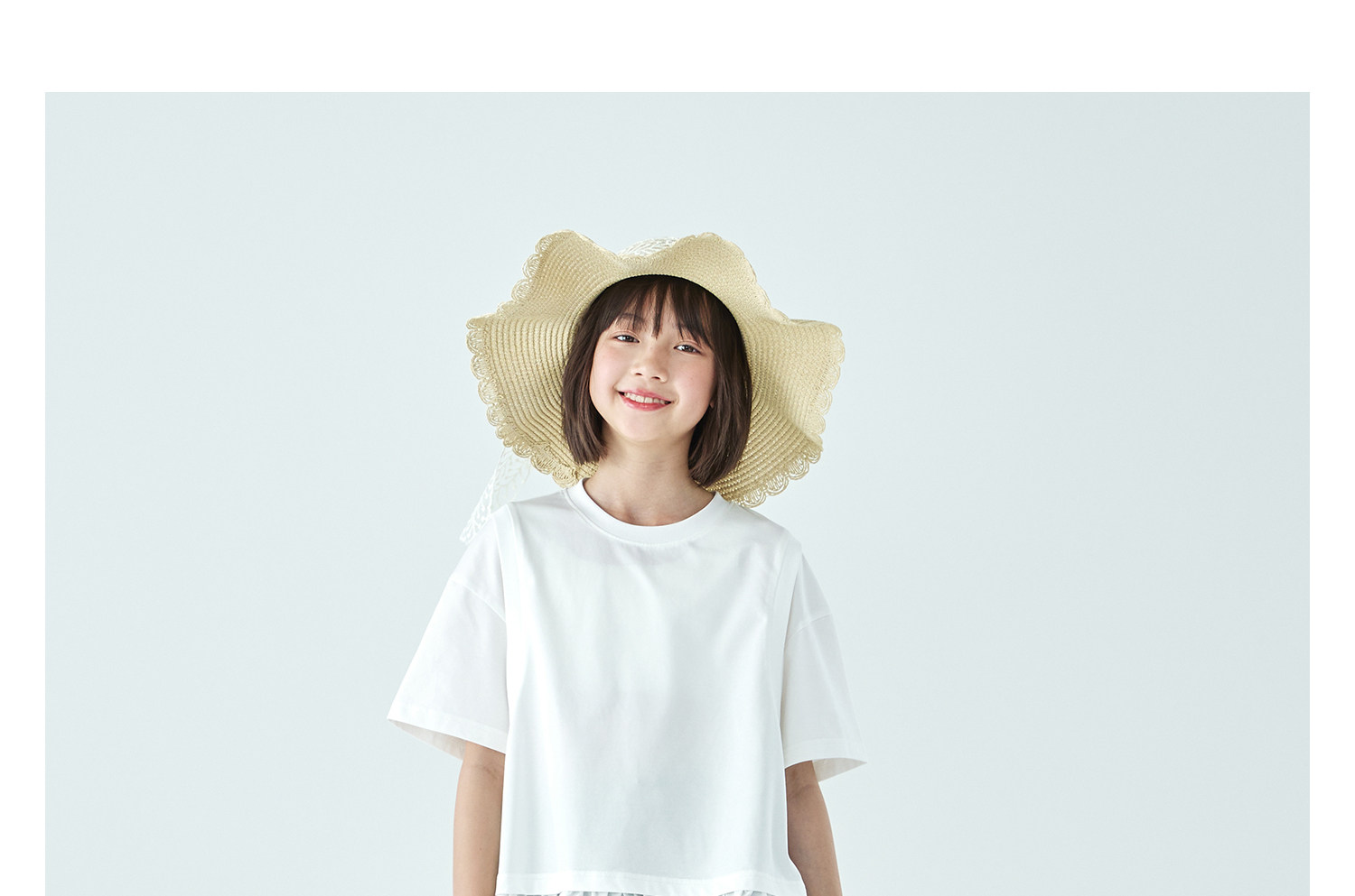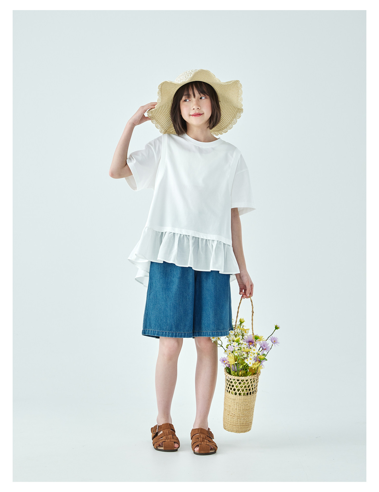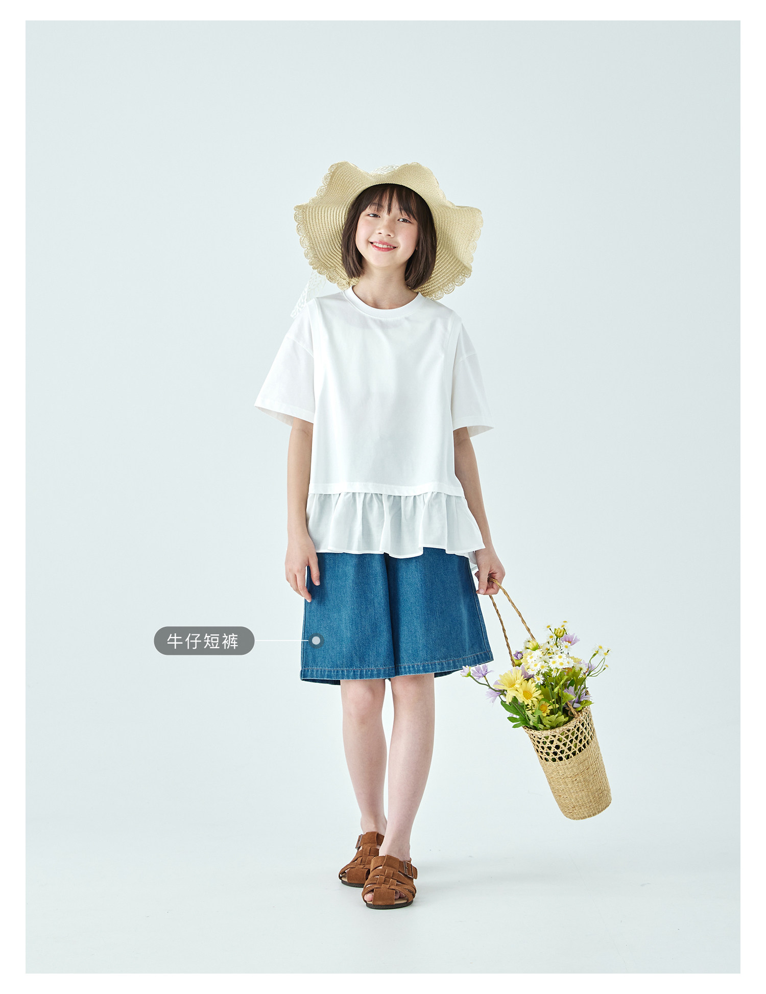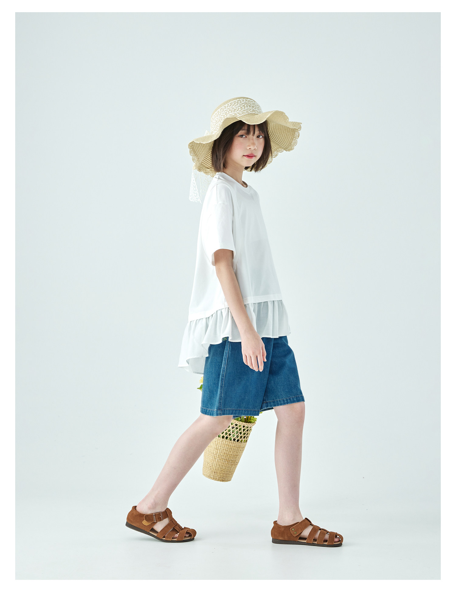 棵初2026年夏季新款中大女童拼接造型白色T恤凉感7A抗菌防晒短袖