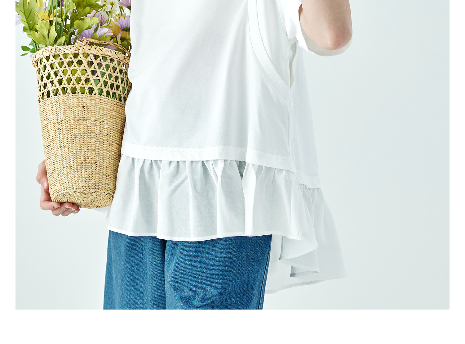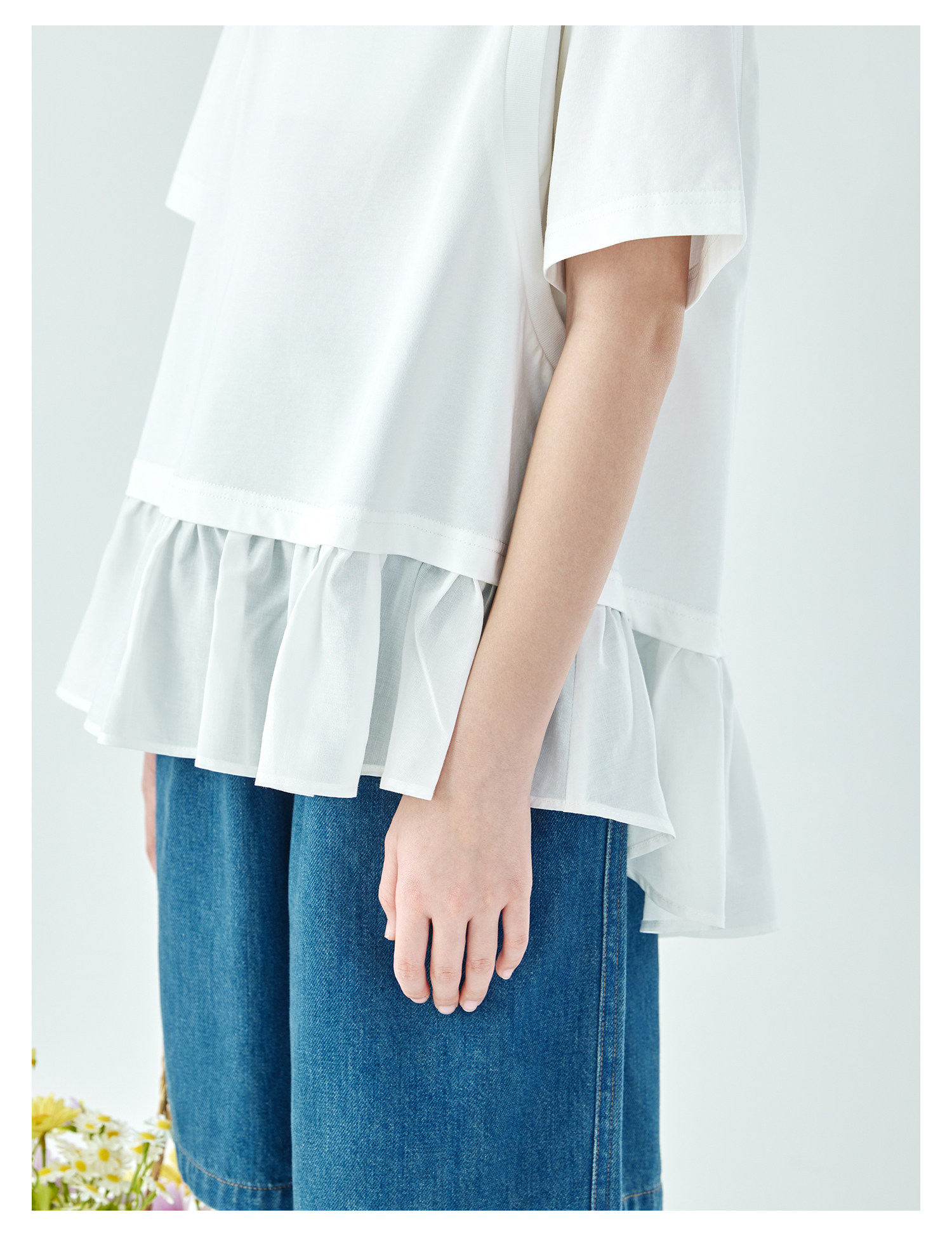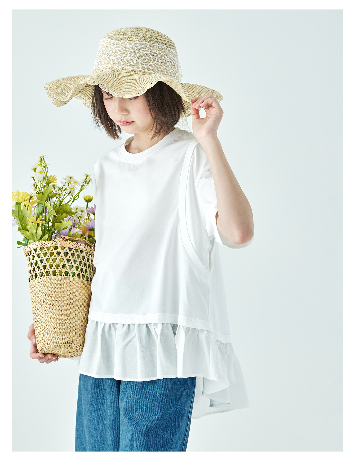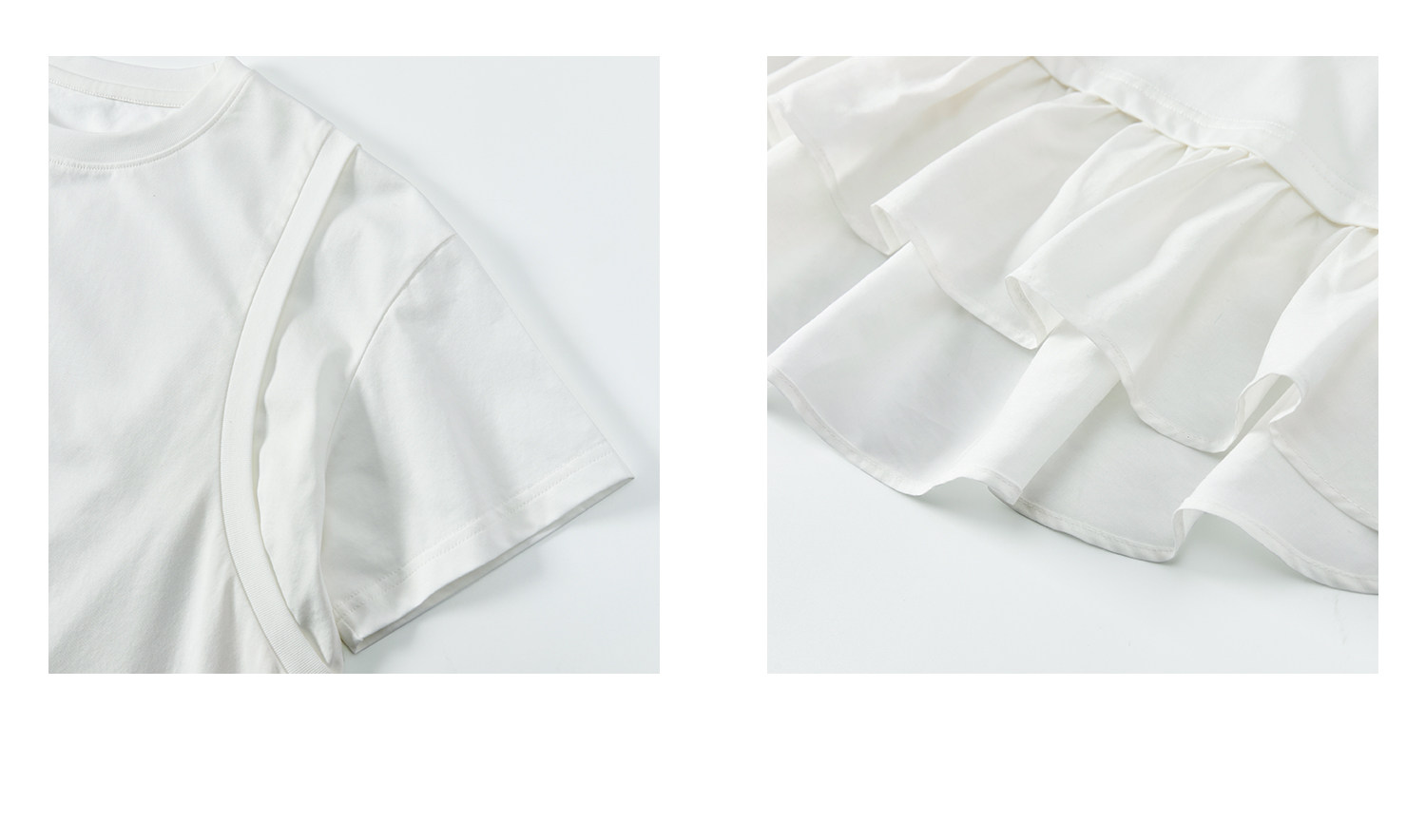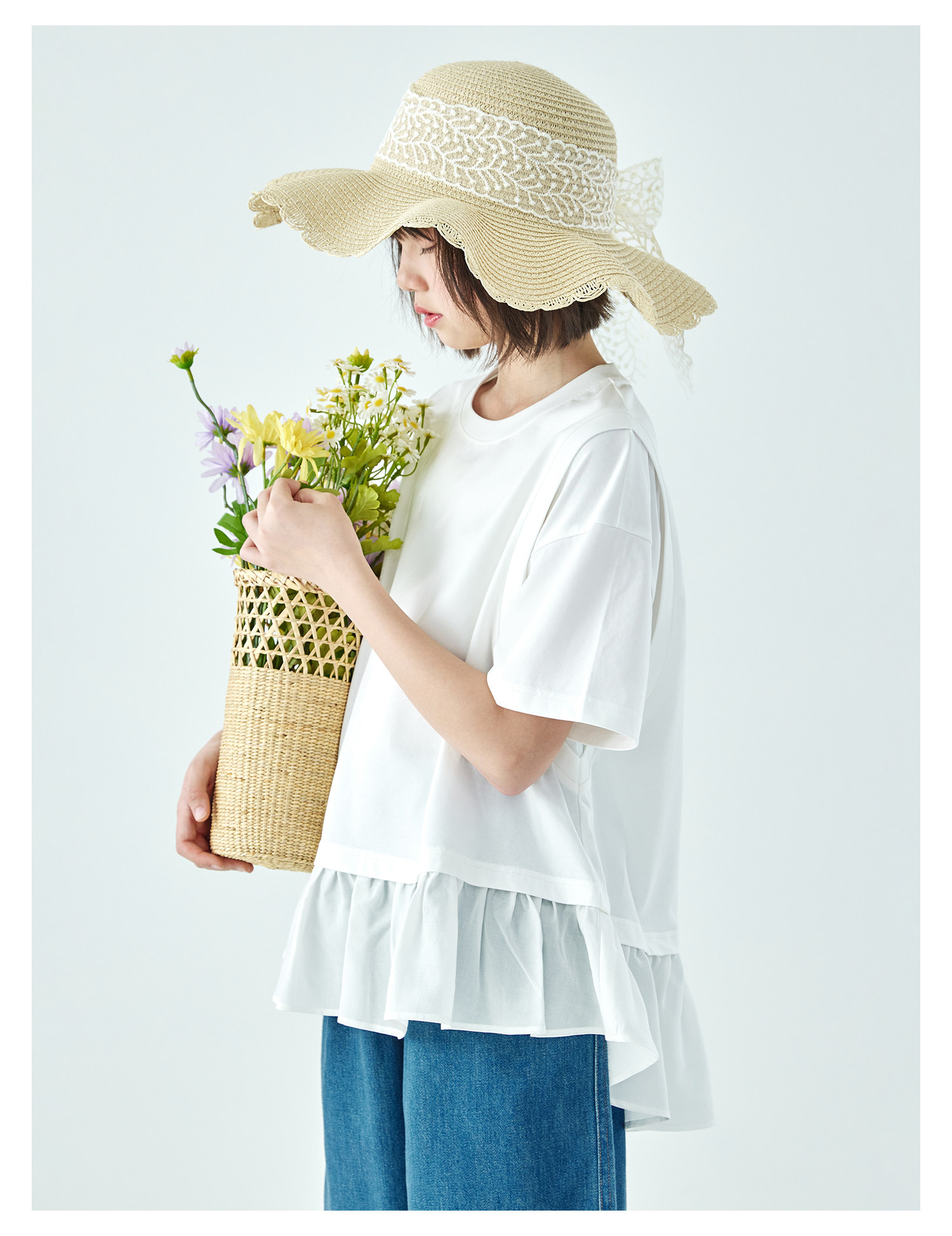 棵初2026年夏季新款中大女童拼接造型白色T恤凉感7A抗菌防晒短袖