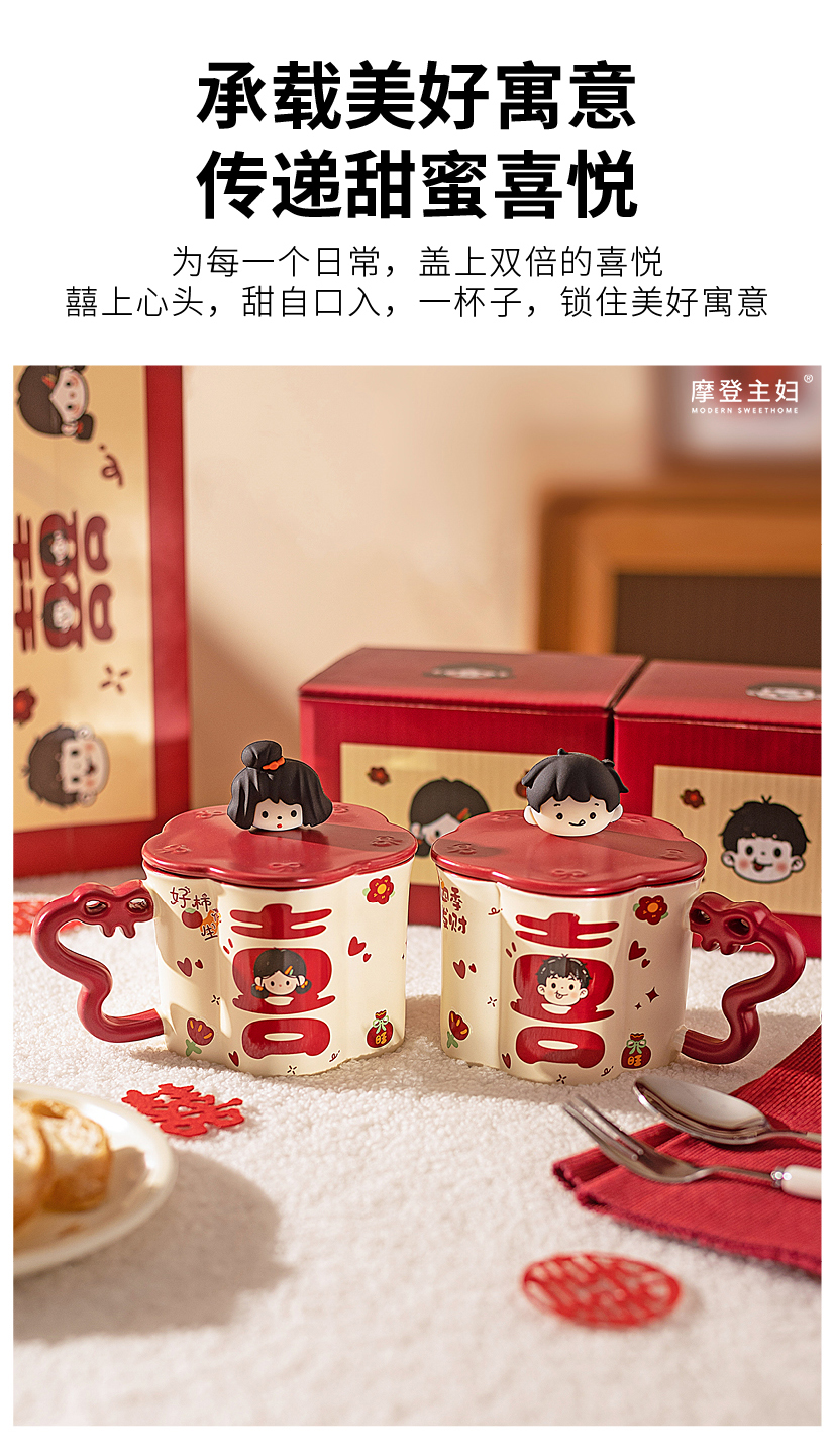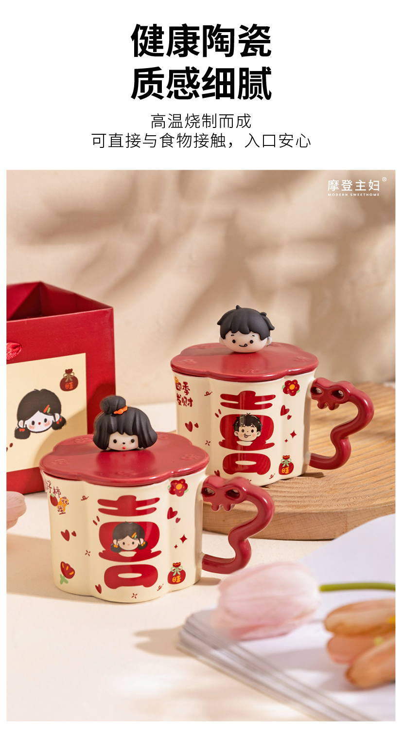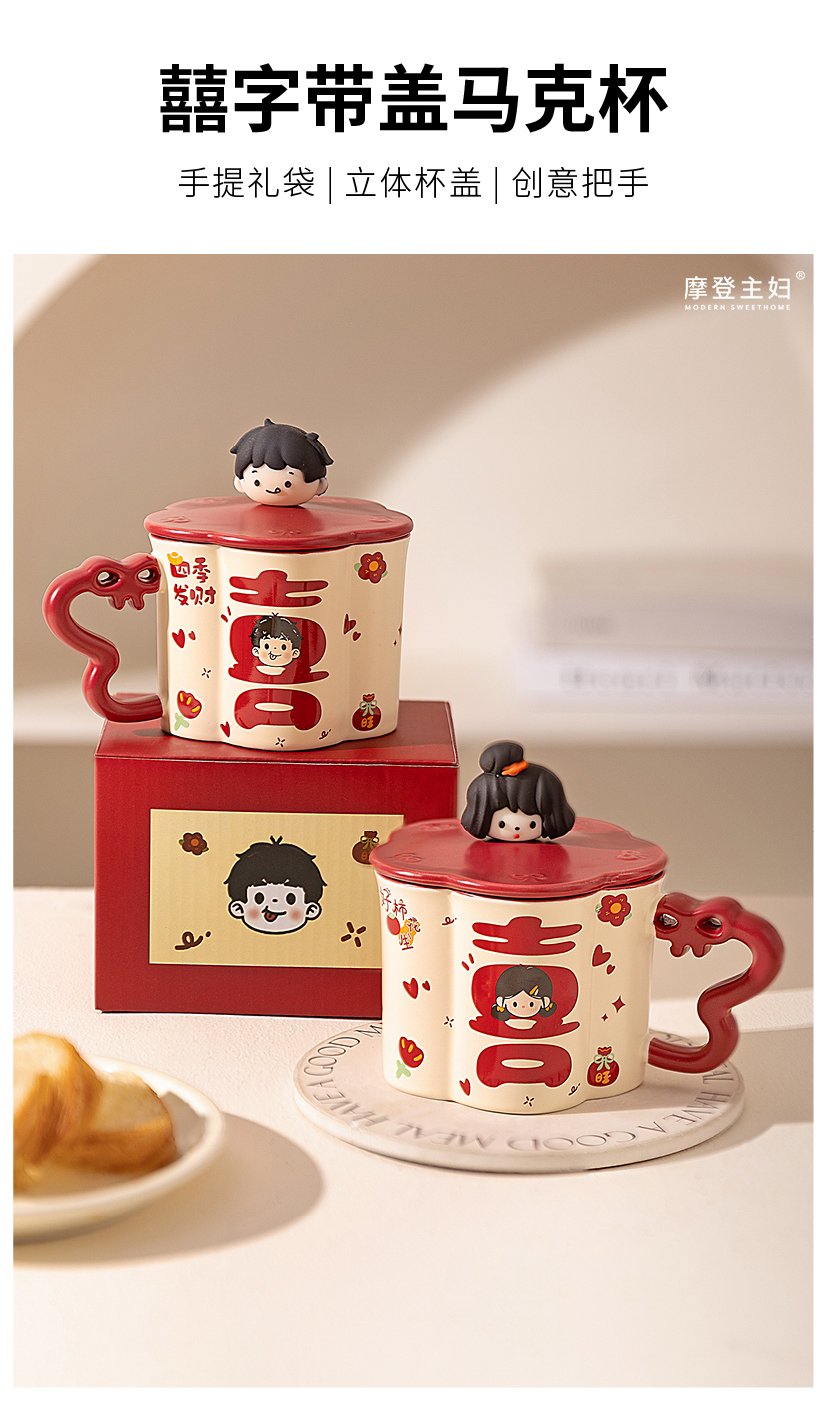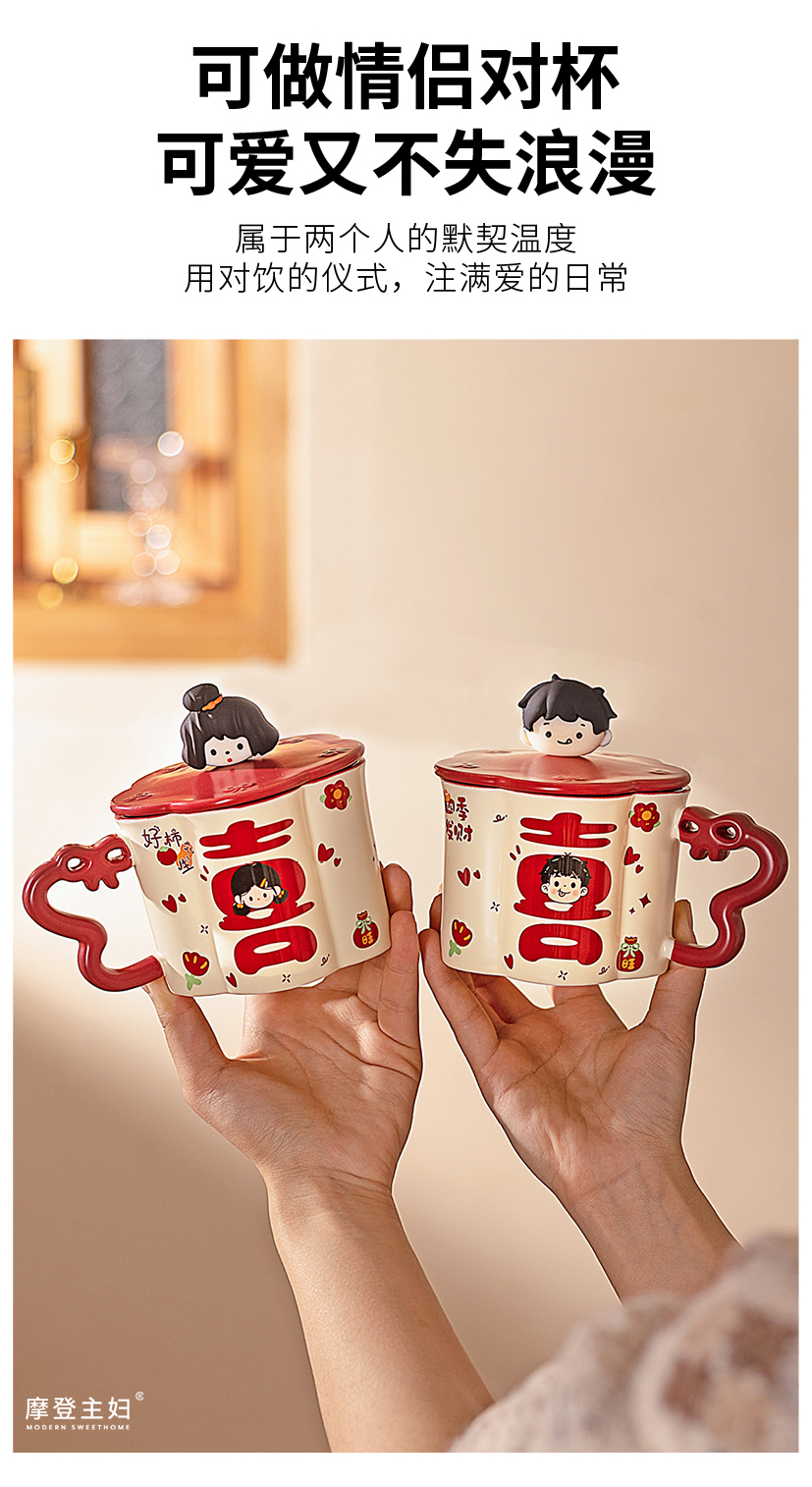 摩登主妇陶瓷马克杯带盖结婚一对情侣杯子新婚礼物新年本命年水杯