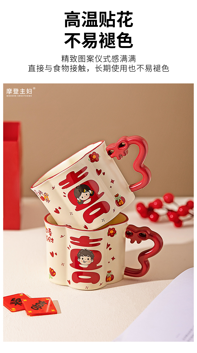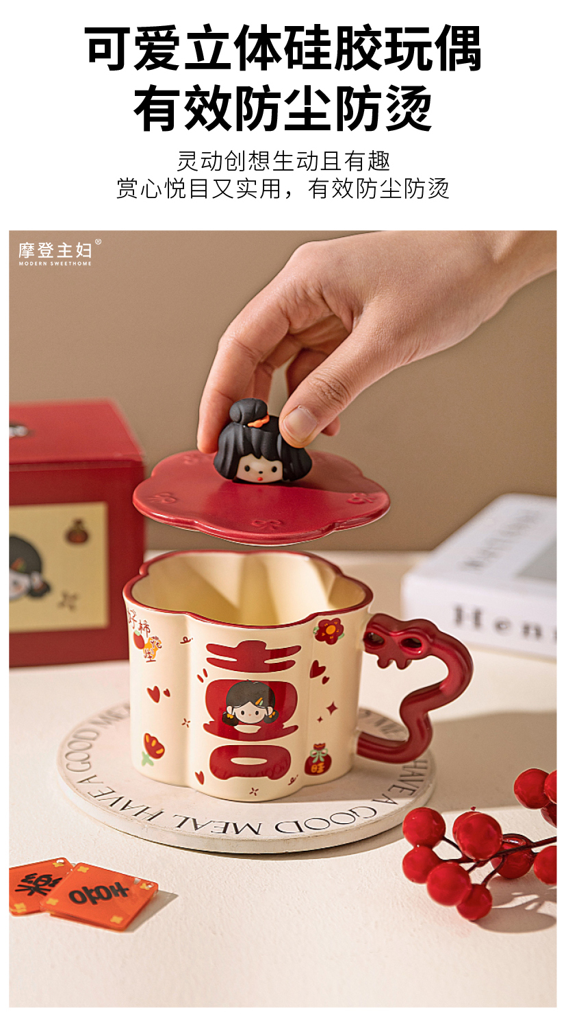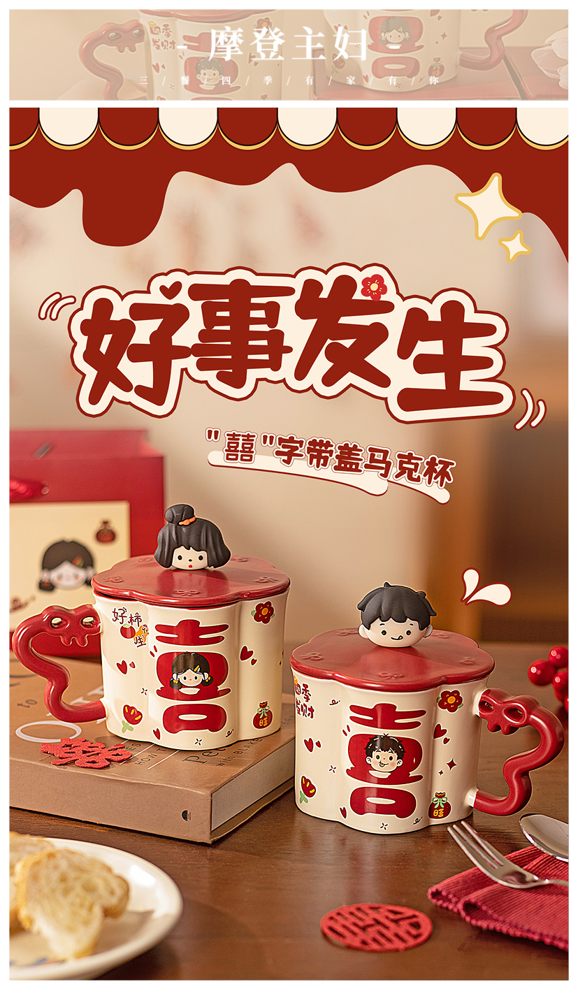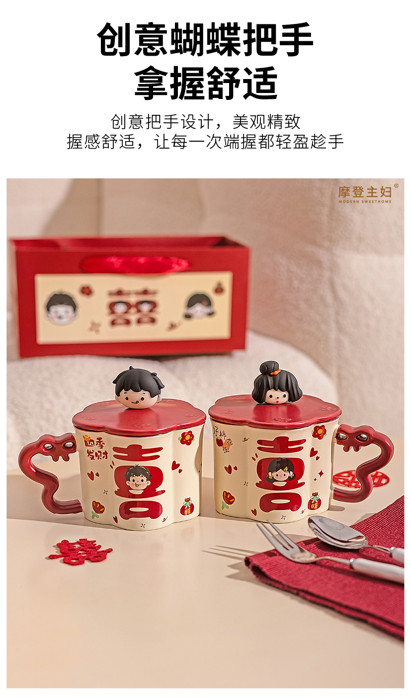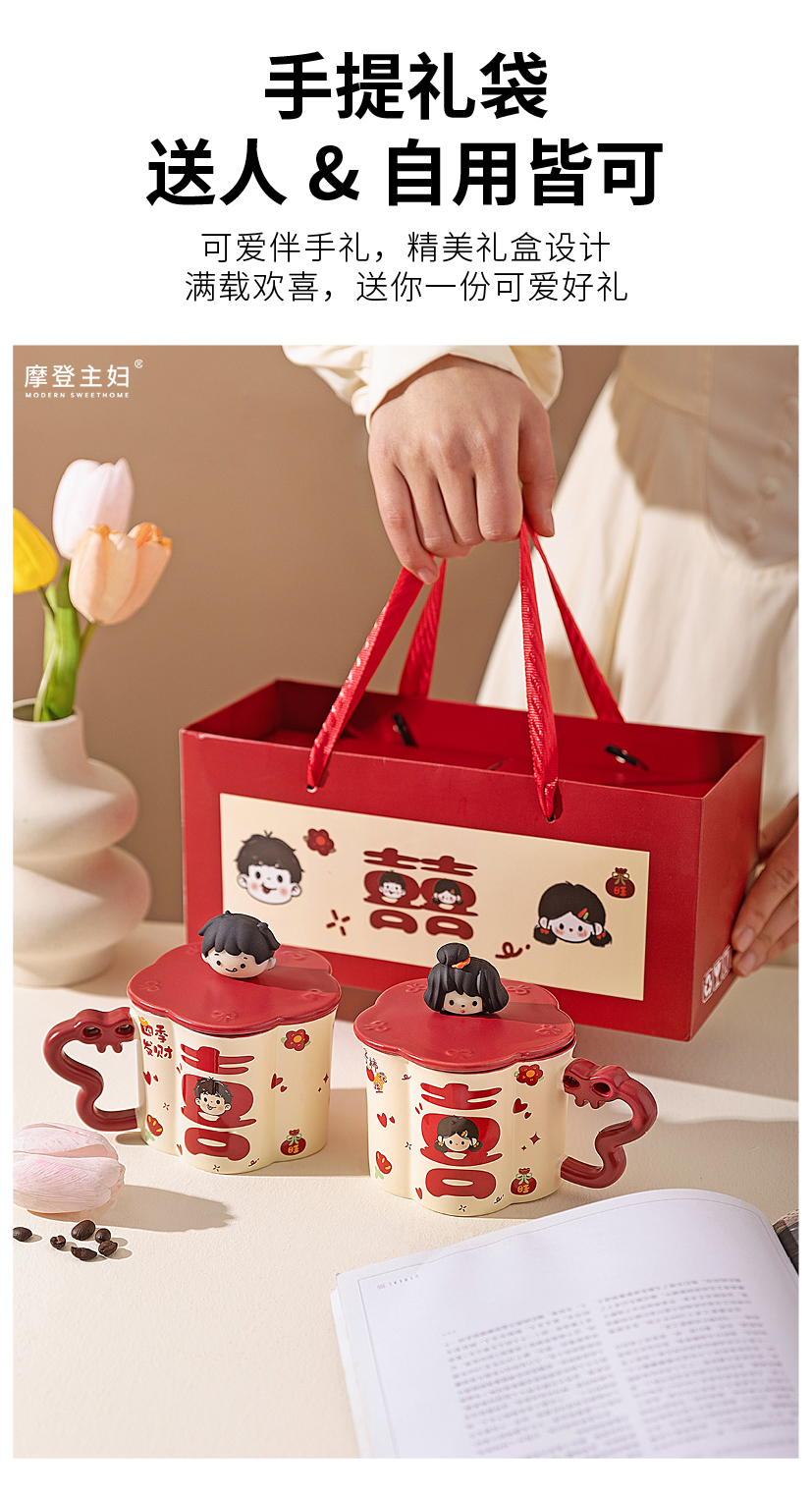 摩登主妇陶瓷马克杯带盖结婚一对情侣杯子新婚礼物新年本命年水杯