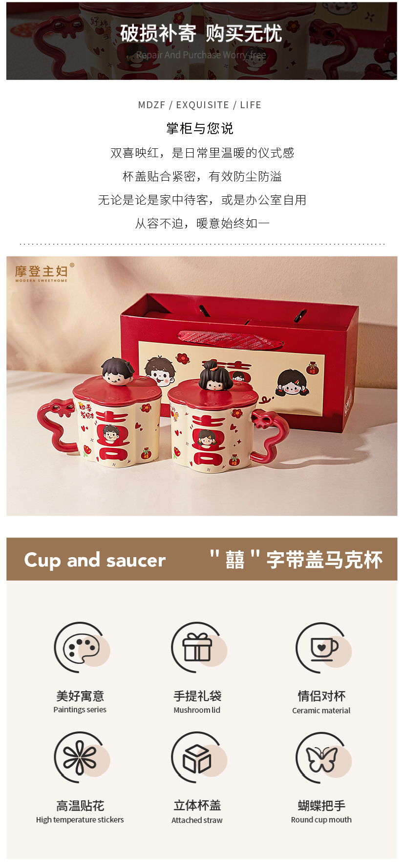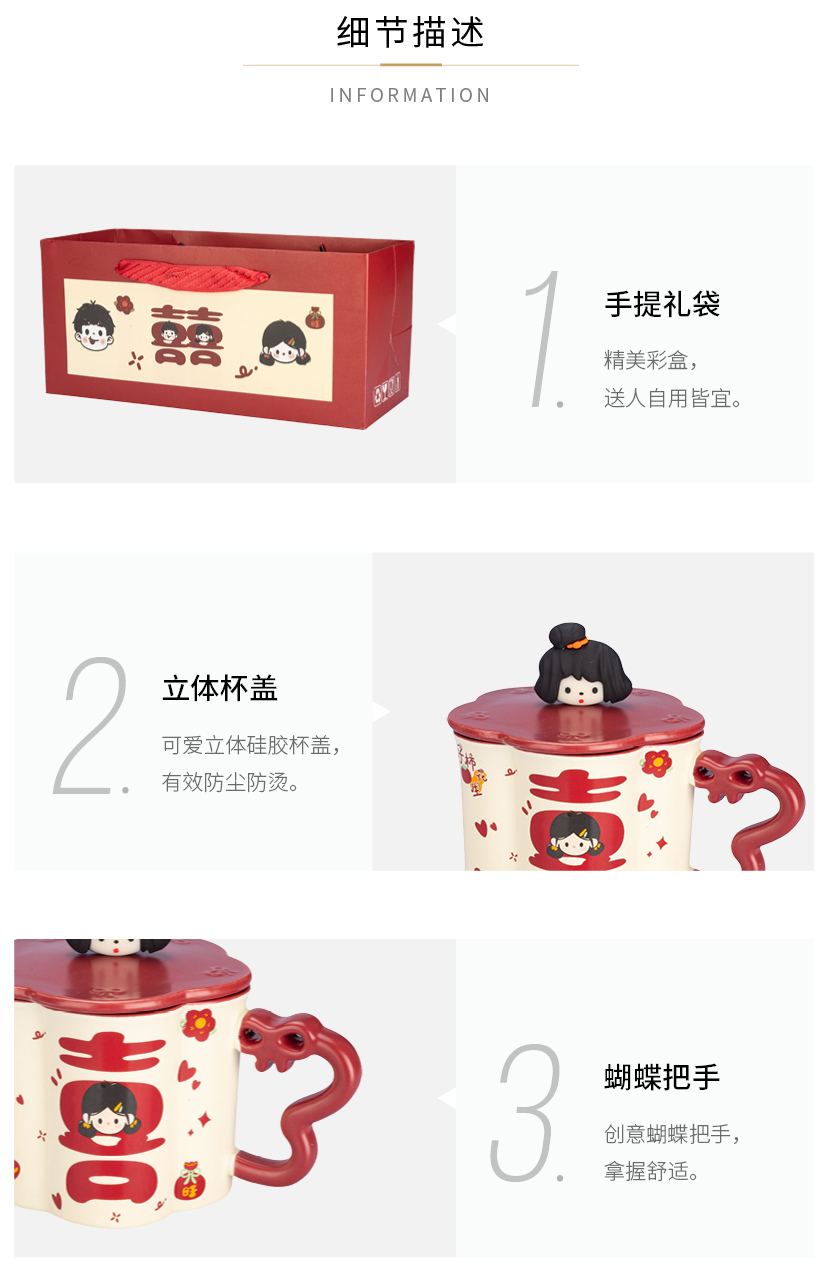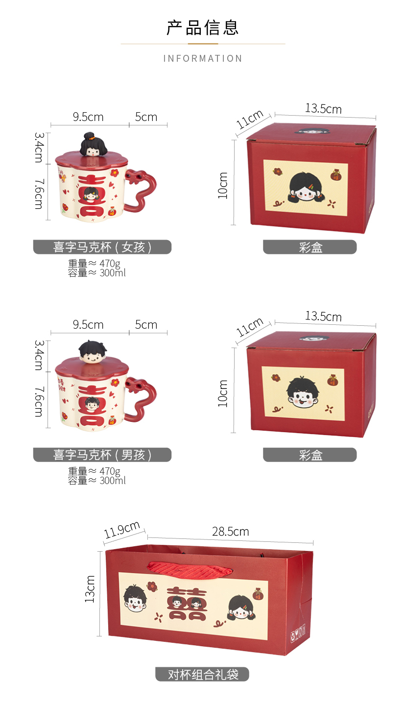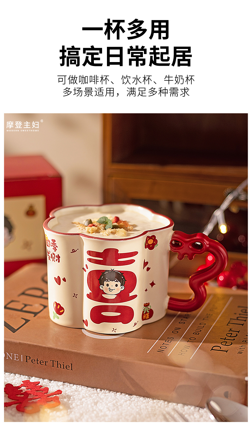 摩登主妇陶瓷马克杯带盖结婚一对情侣杯子新婚礼物新年本命年水杯