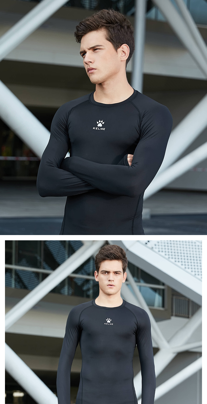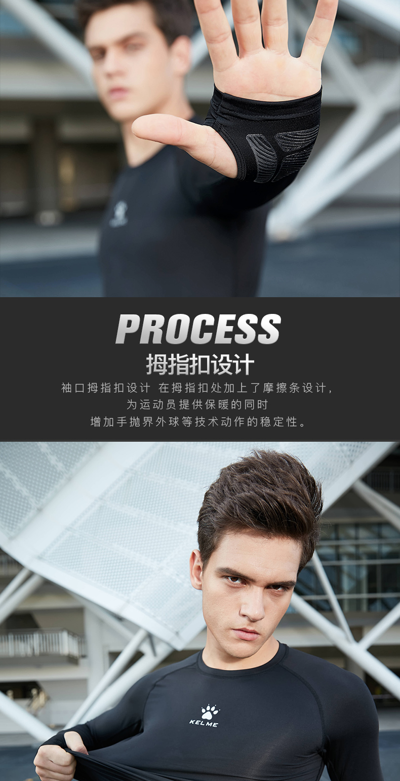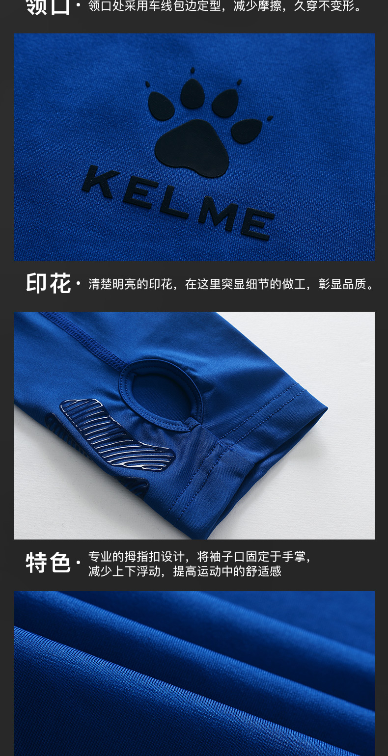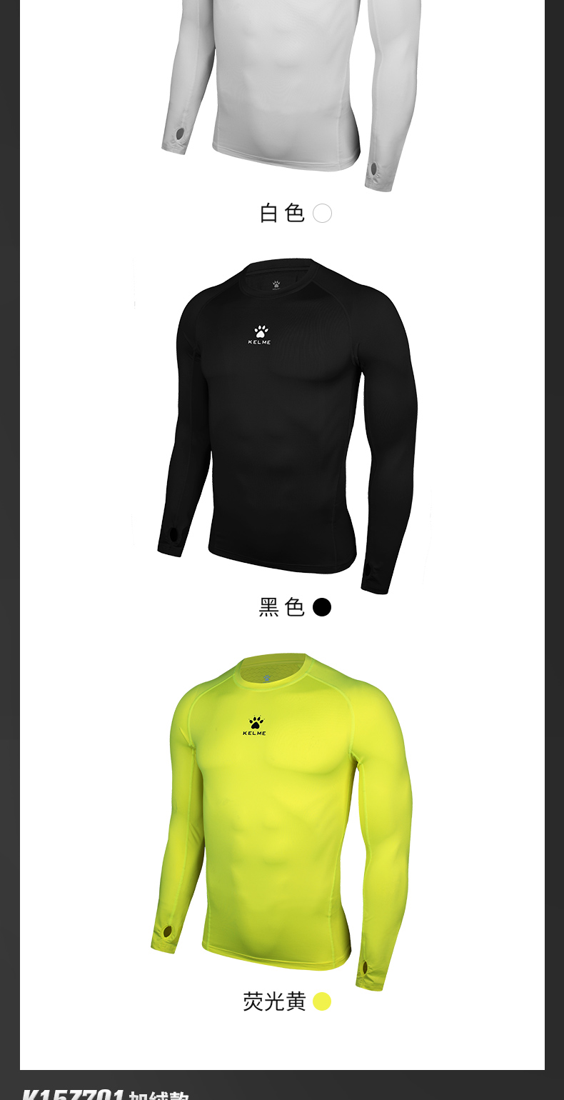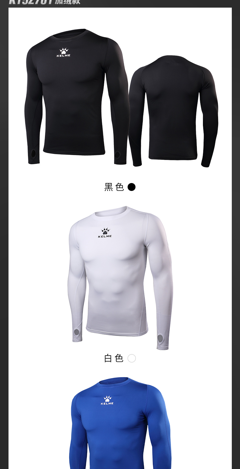 卡尔美紧身衣男长袖运动儿童T恤健身服加绒加厚拇指扣打底衫K15Z701