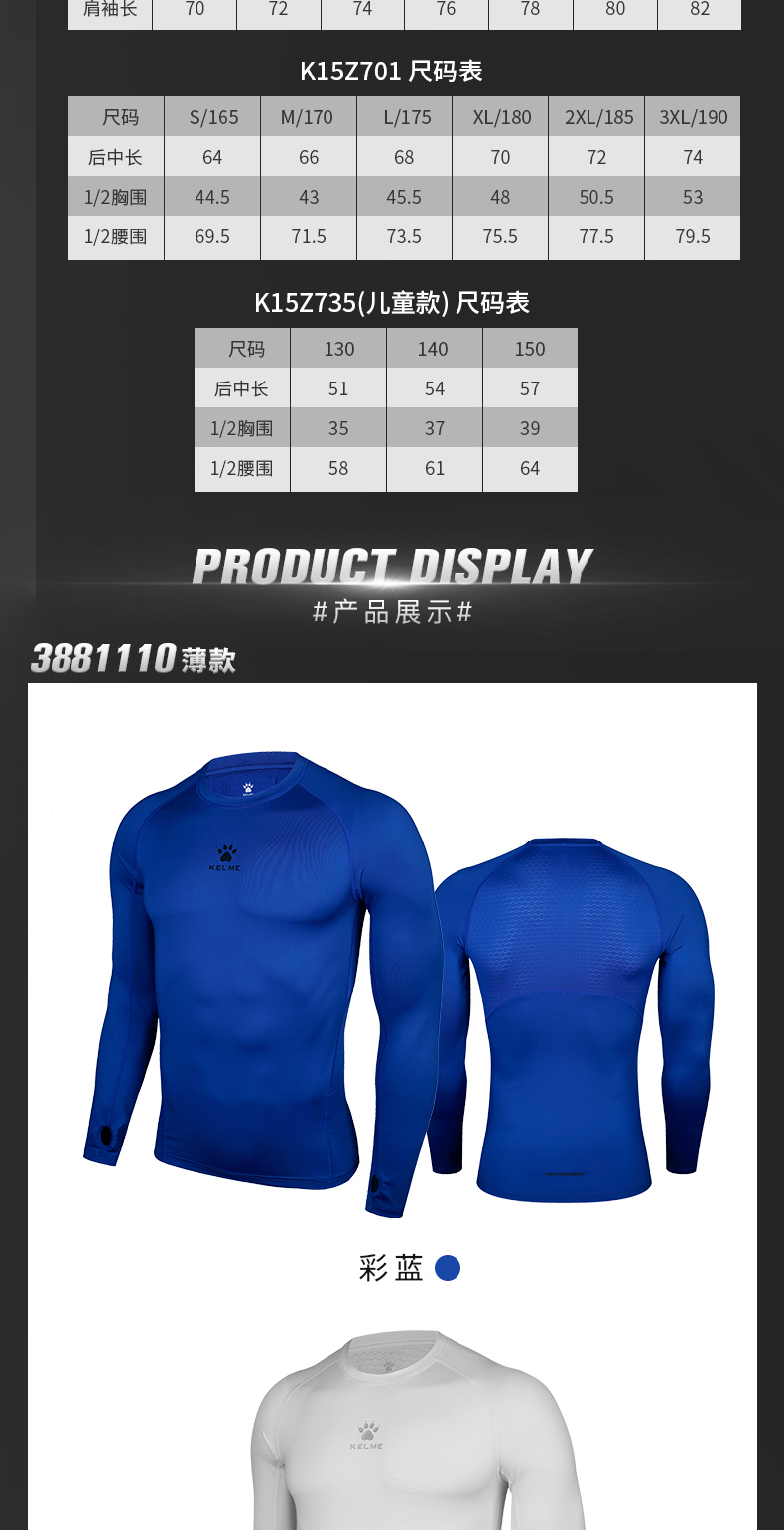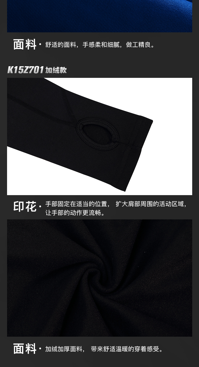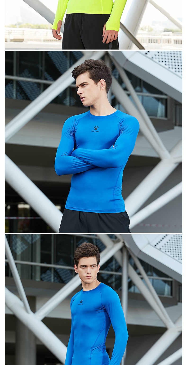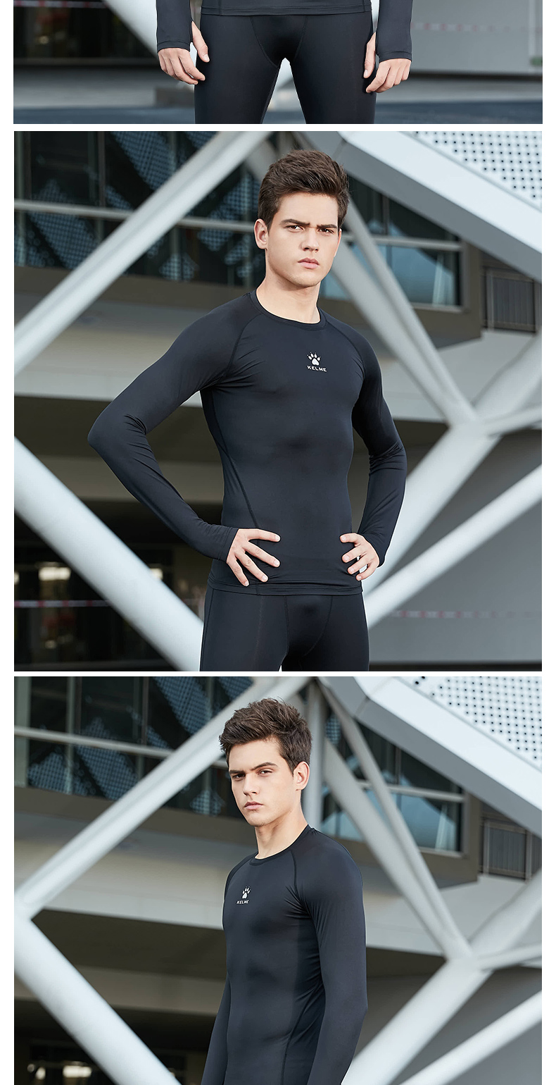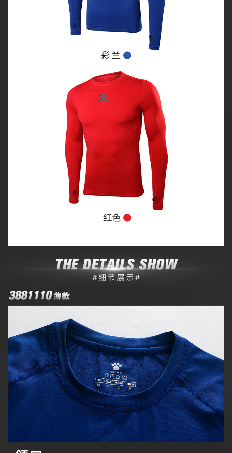 卡尔美紧身衣男长袖运动儿童T恤健身服加绒加厚拇指扣打底衫K15Z701