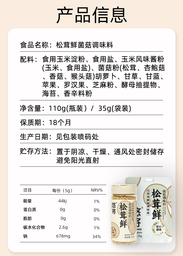 悠将松茸鲜调味料110g*2瓶送10袋35g