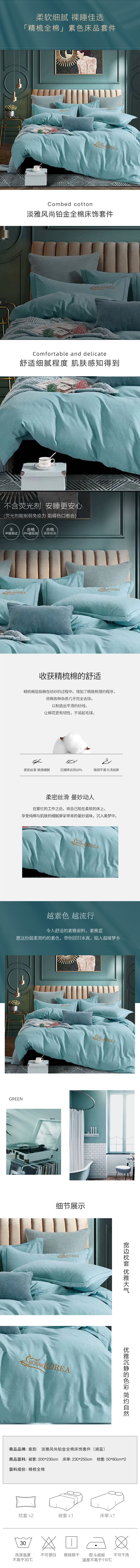 【紫韵家纺】“淡雅风尚”铂金全棉床饰套件墨绿色天地盒