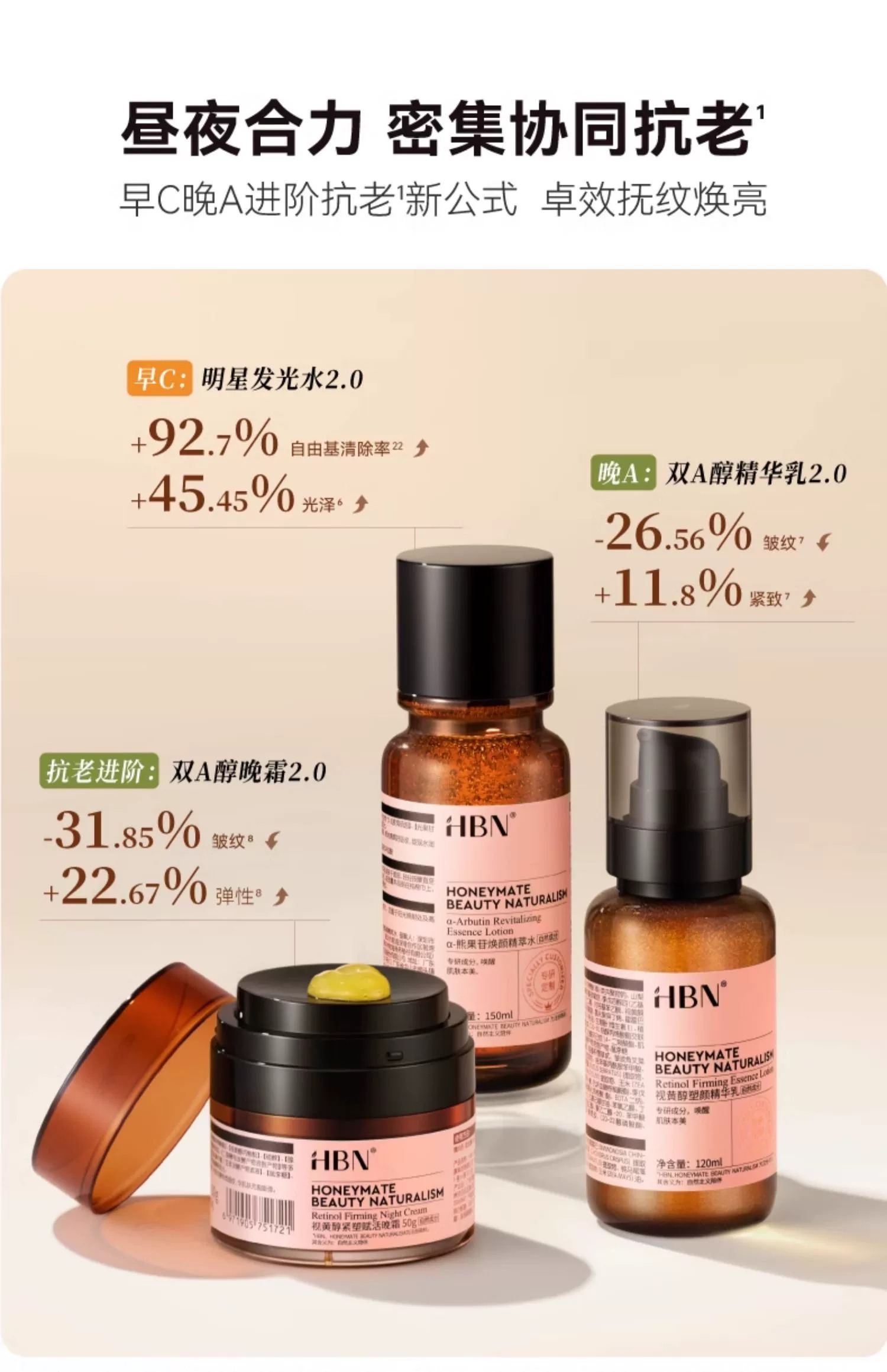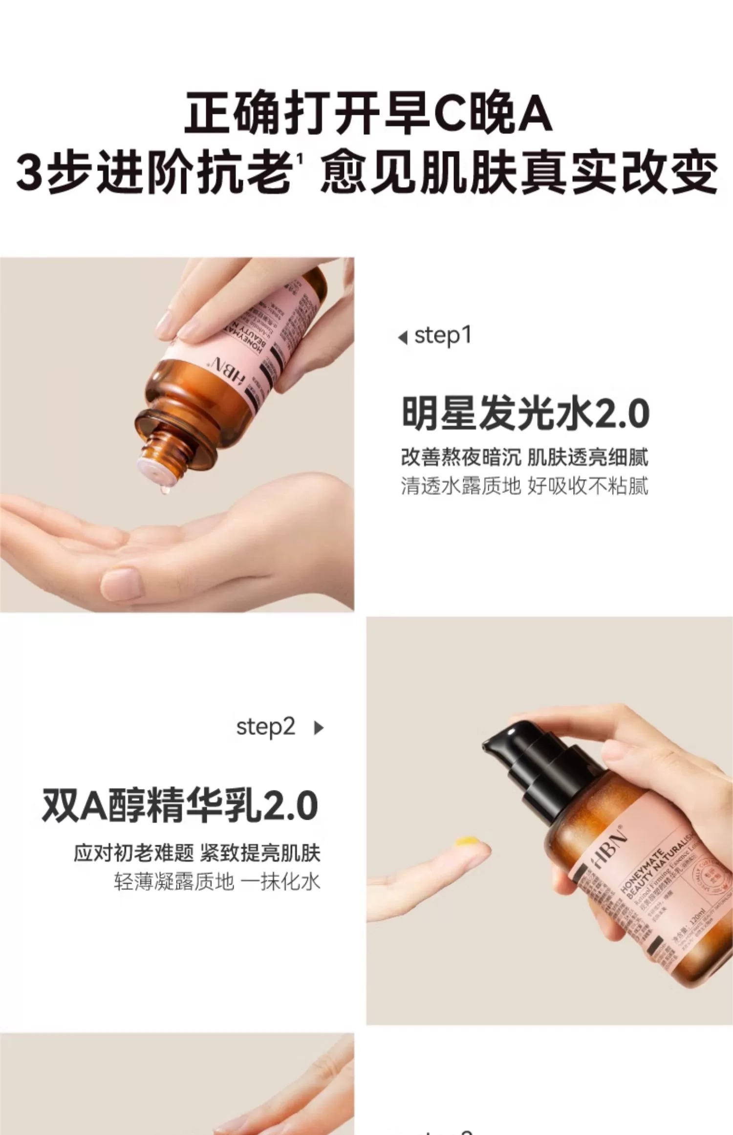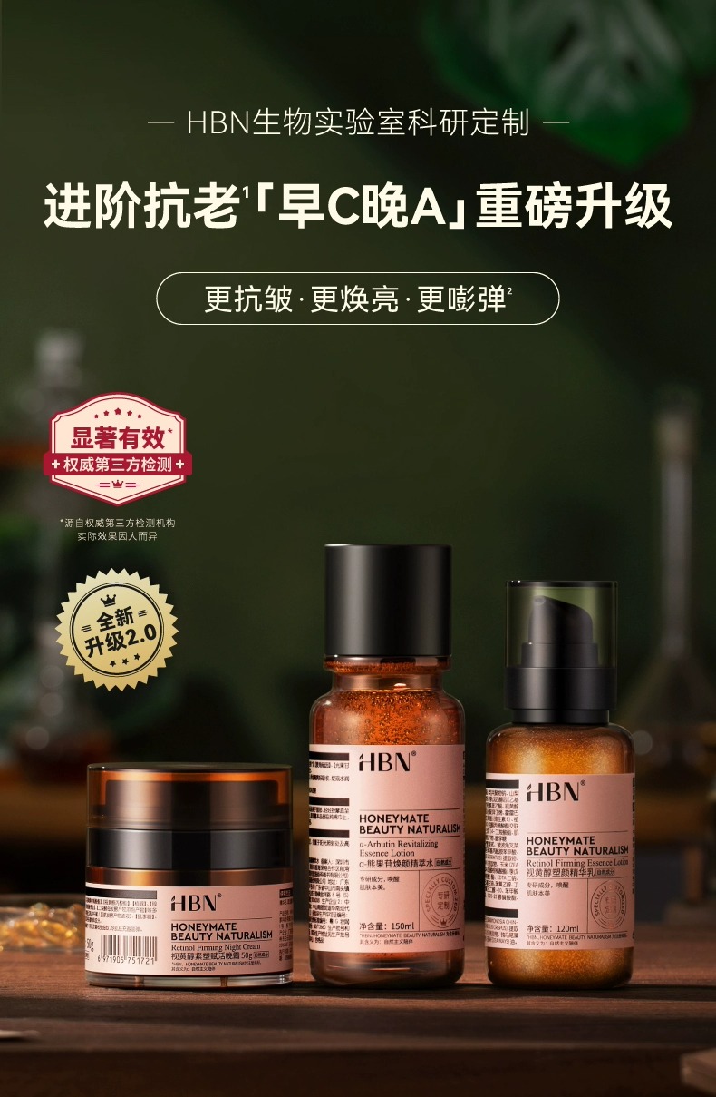 【HBN经典早C晚A合集】HBN 精粹水+视黄醇乳液+视黄醇晚霜+洁面+原白系列乳霜