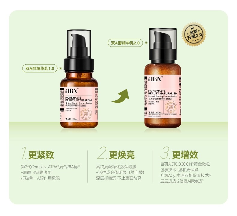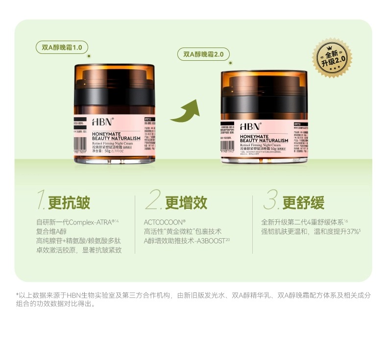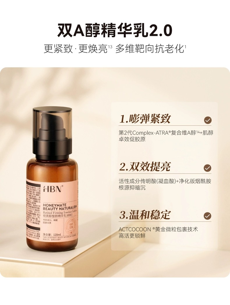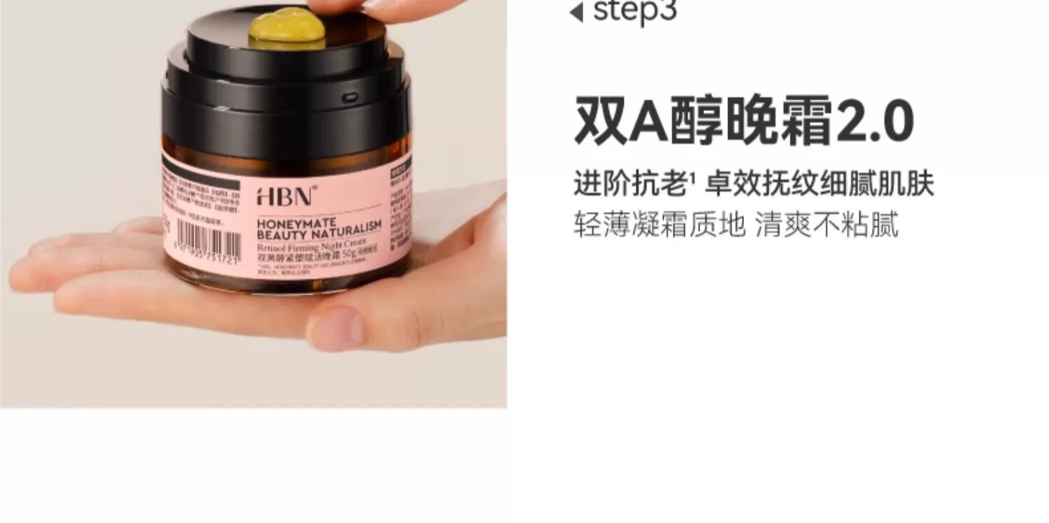 【HBN经典早C晚A合集】HBN 精粹水+视黄醇乳液+视黄醇晚霜+洁面+原白系列乳霜
