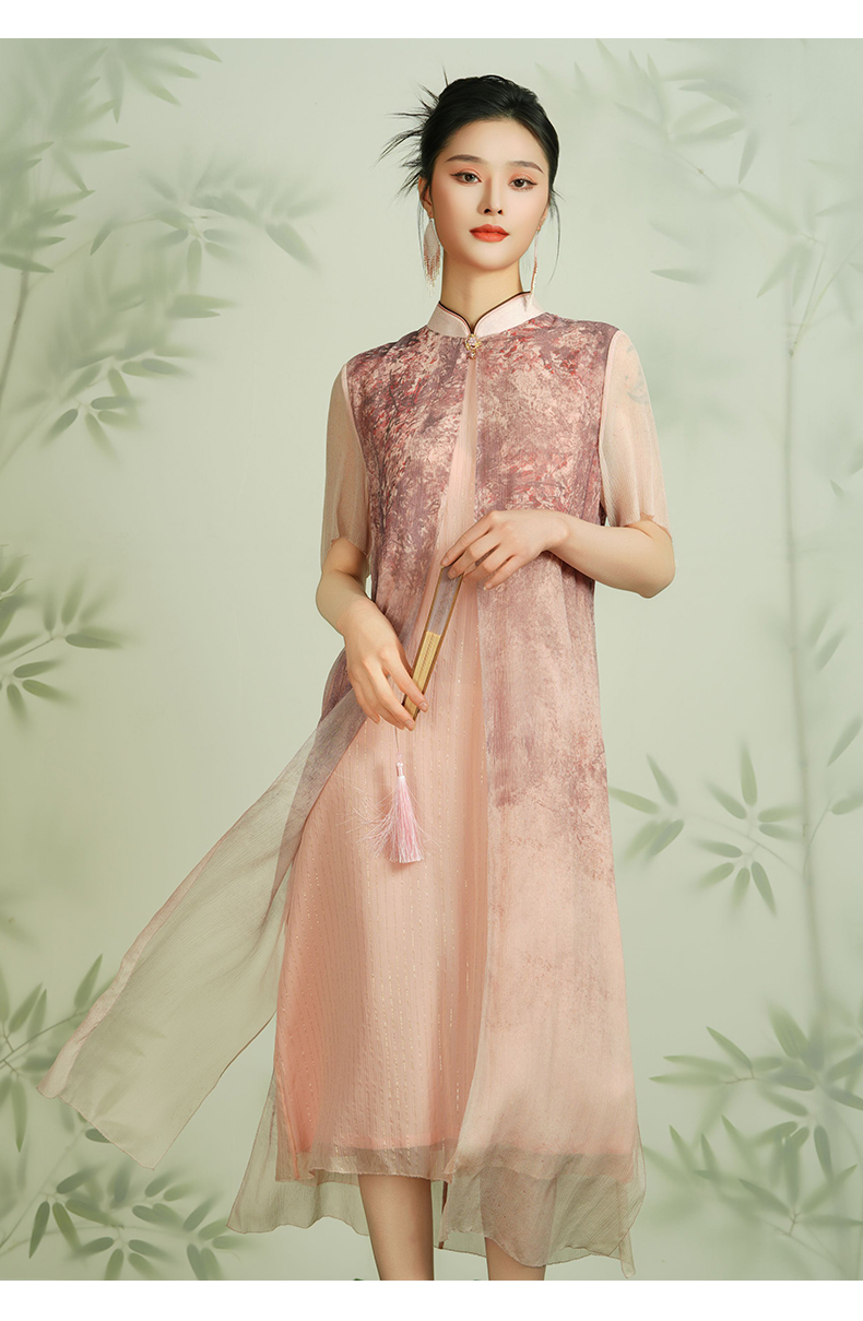 乔万尼真丝连衣裙桑蚕丝100%新中式假两件设计EM2E873