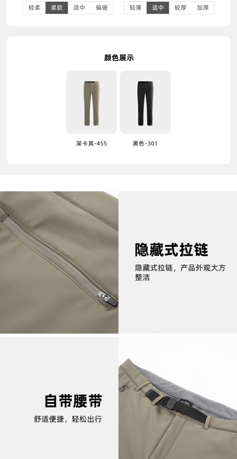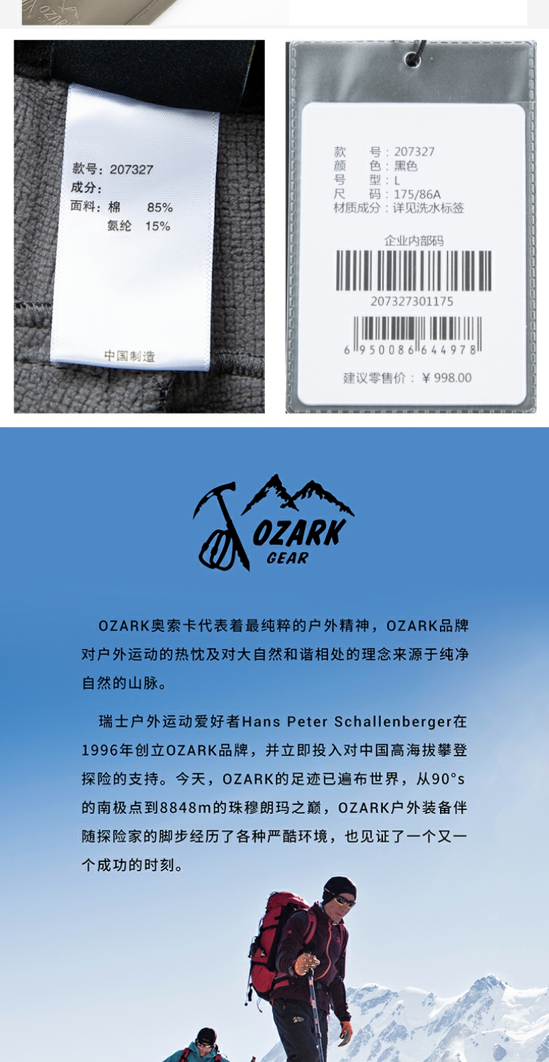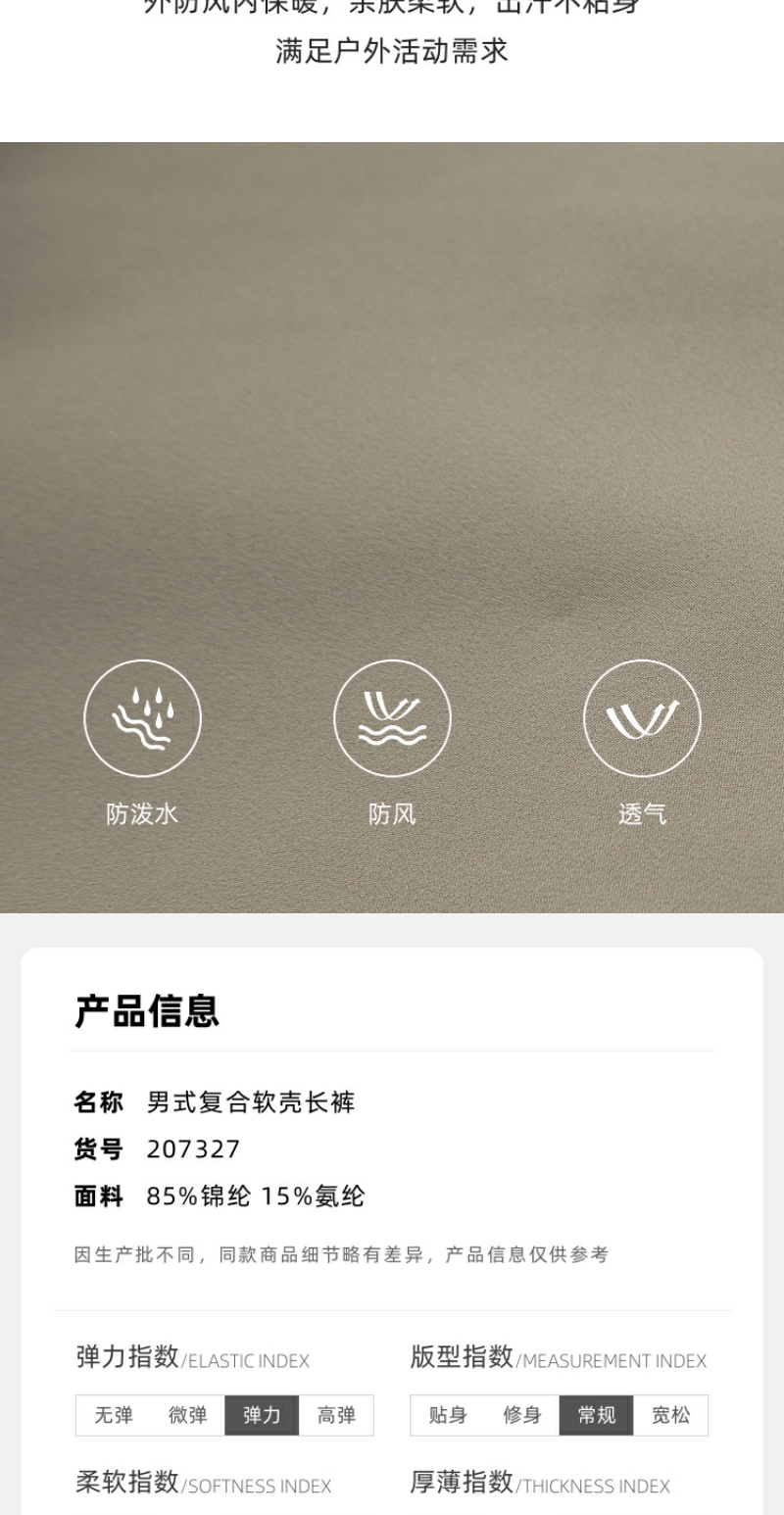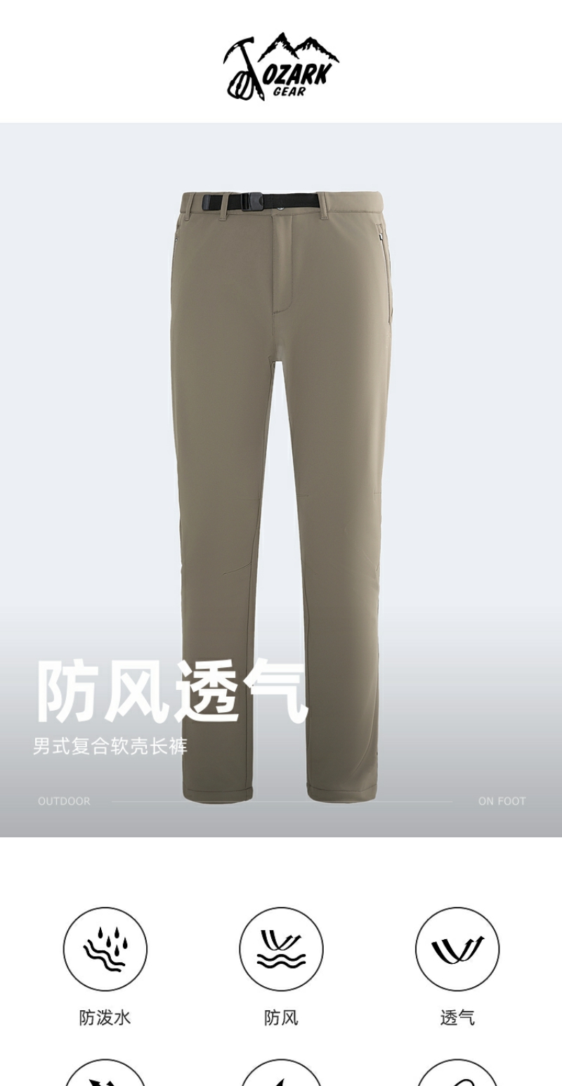 OZARK/奥索卡户外男弹力防泼水保暖徒步登山复合软壳长裤207327