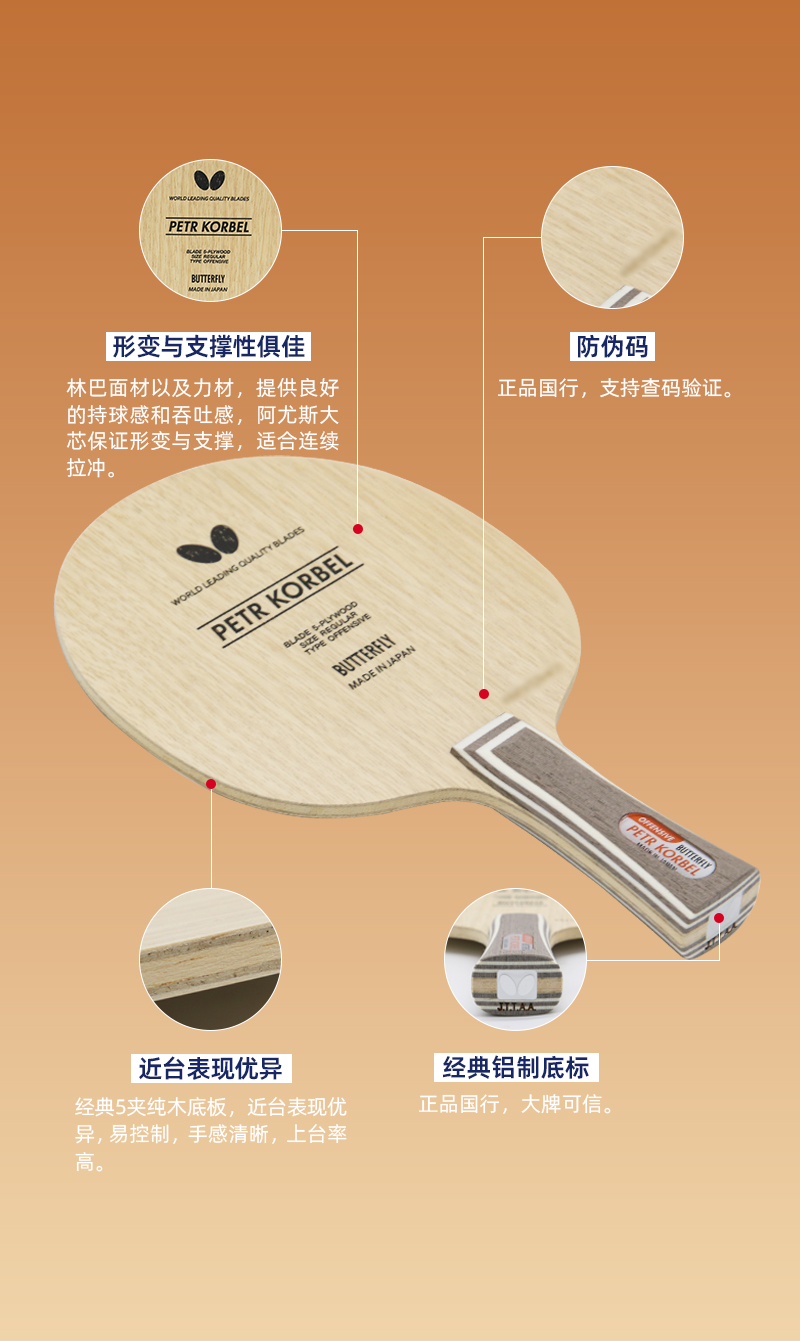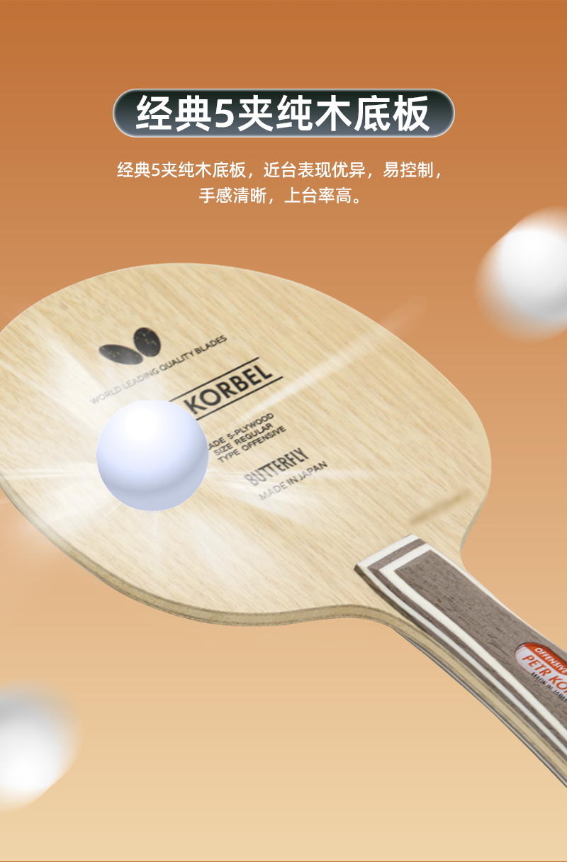 【顺丰包邮】Butterfly蝴蝶科贝尔乒乓球拍底板(30271/20700)初学进阶使用全面型五层纯木乒乓底板