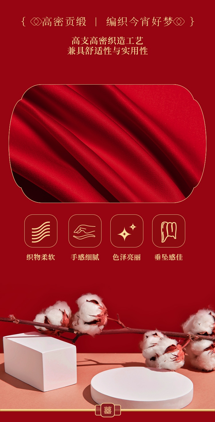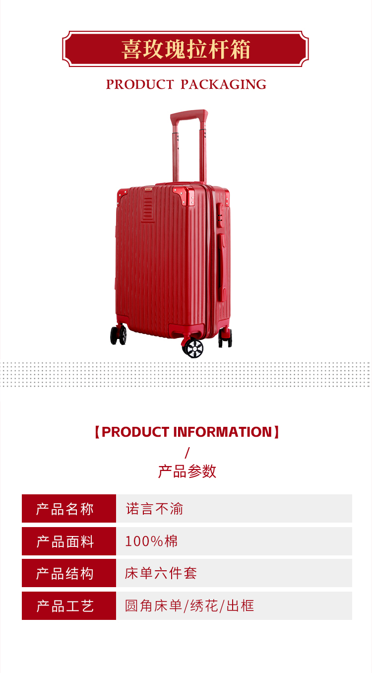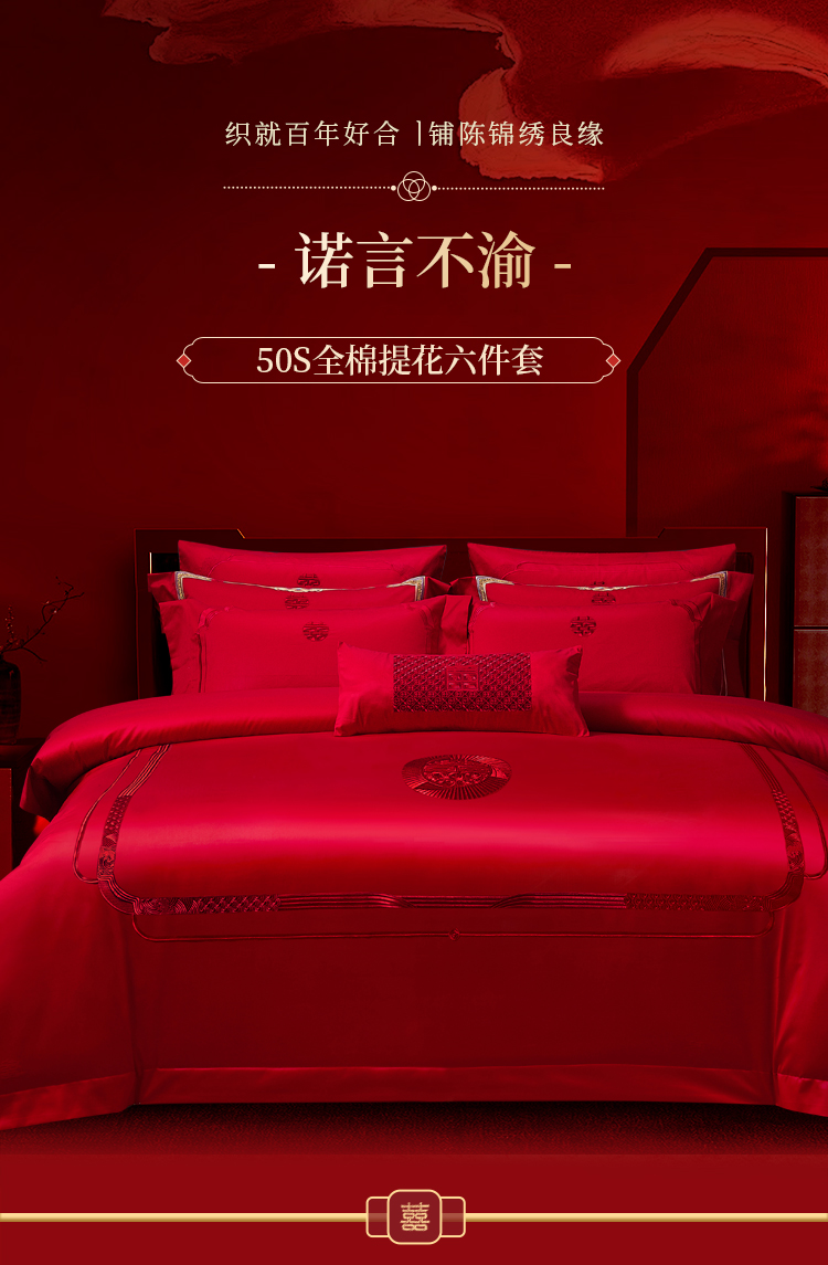 多喜爱 喜玫瑰50S全棉提花六件套 诺言不渝 【B面60S全棉贡缎】【立体提花】【重工刺绣】【拉杆礼箱】【精美刺绣】【提花工艺】【宽边工艺】高密贡缎 色泽亮丽 垂坠感佳