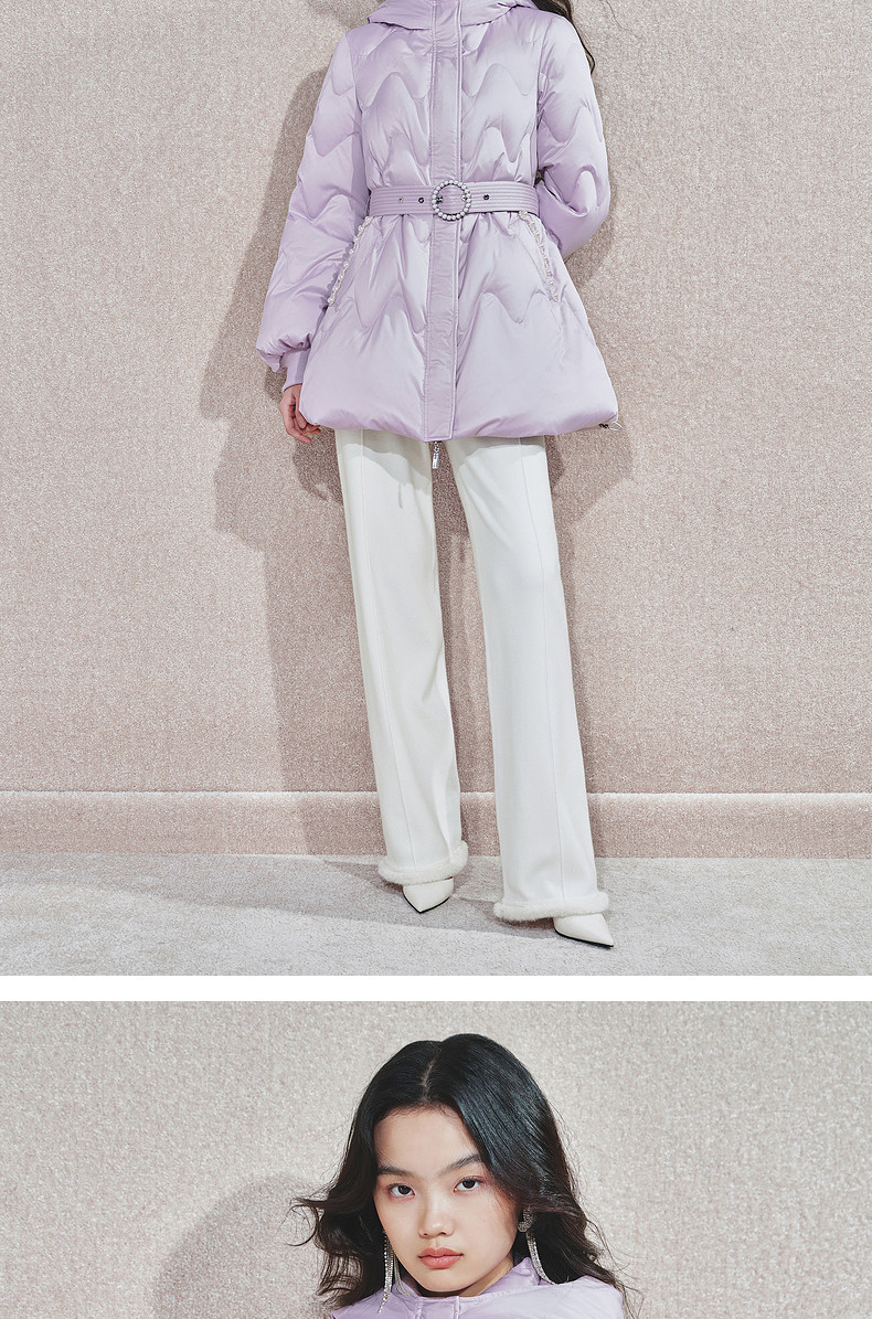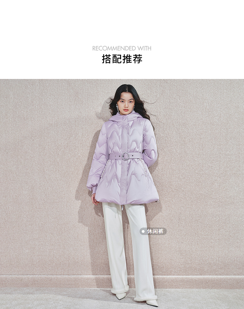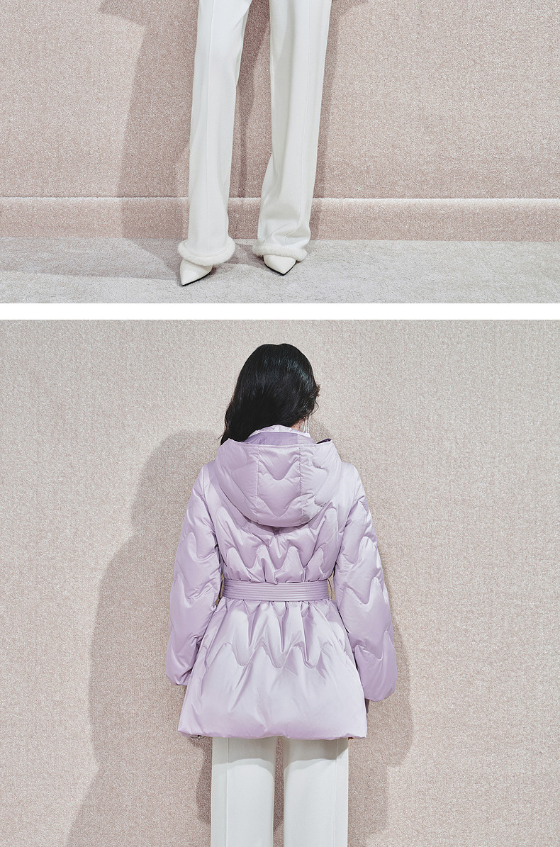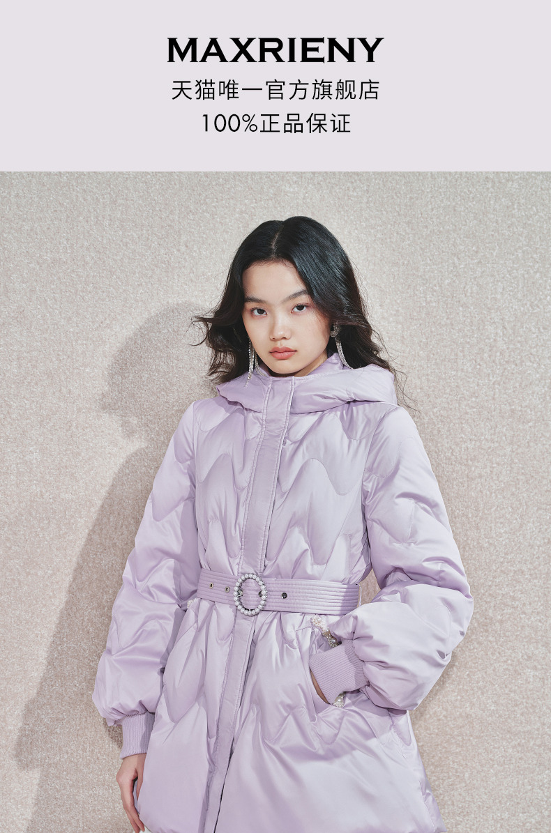 MAXRIENY精致优雅鸭绒羽绒服女24冬新款收腰系带设计保暖连帽外套(货号:MS85DC765)