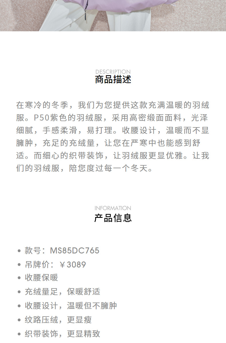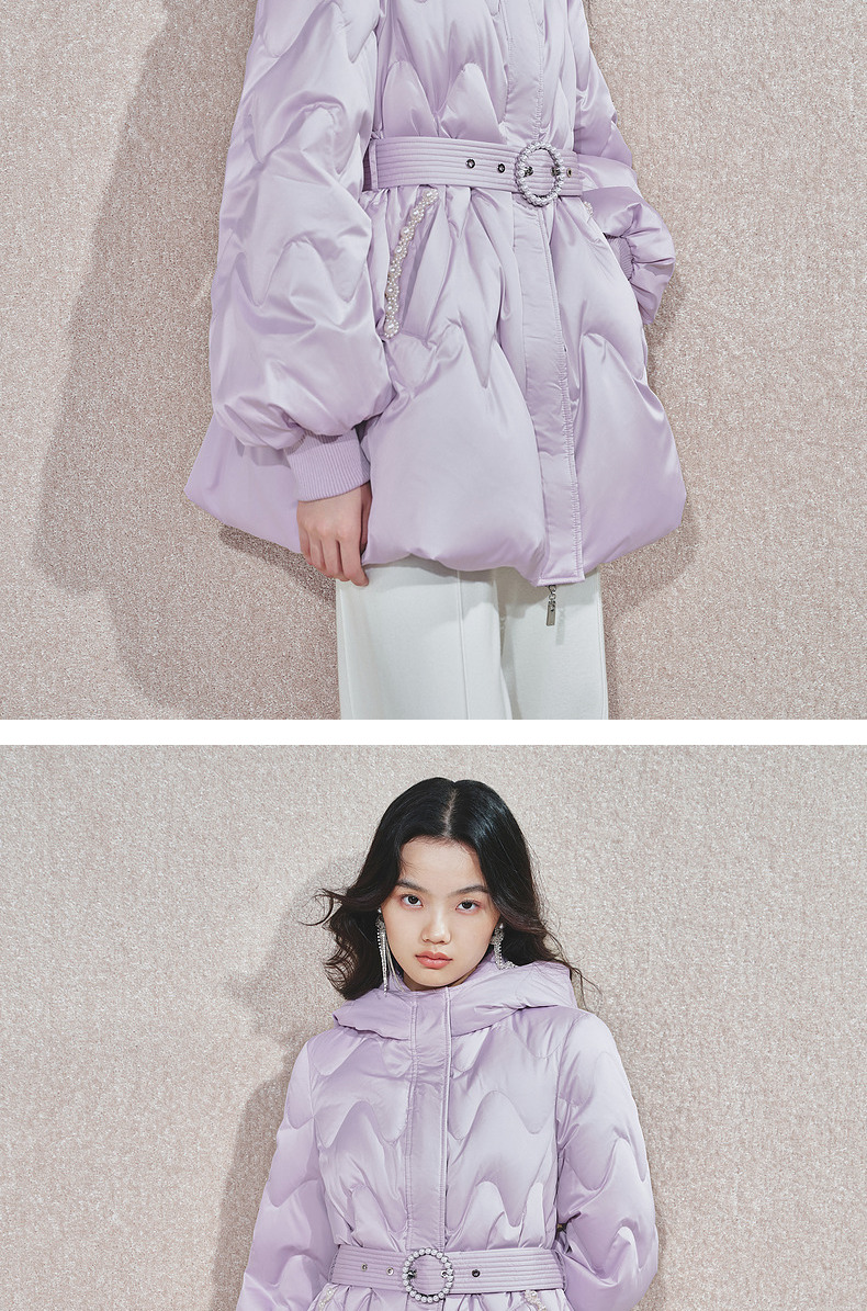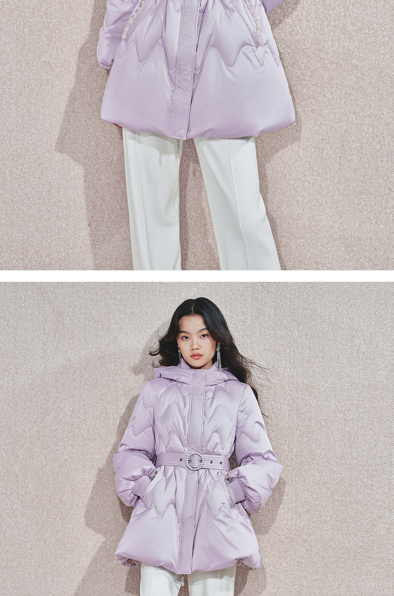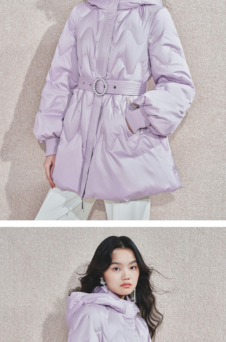 MAXRIENY精致优雅鸭绒羽绒服女24冬新款收腰系带设计保暖连帽外套(货号:MS85DC765)