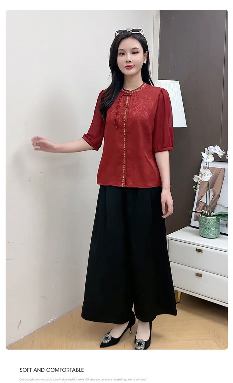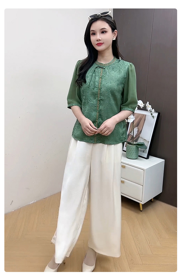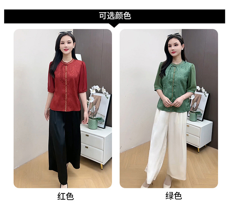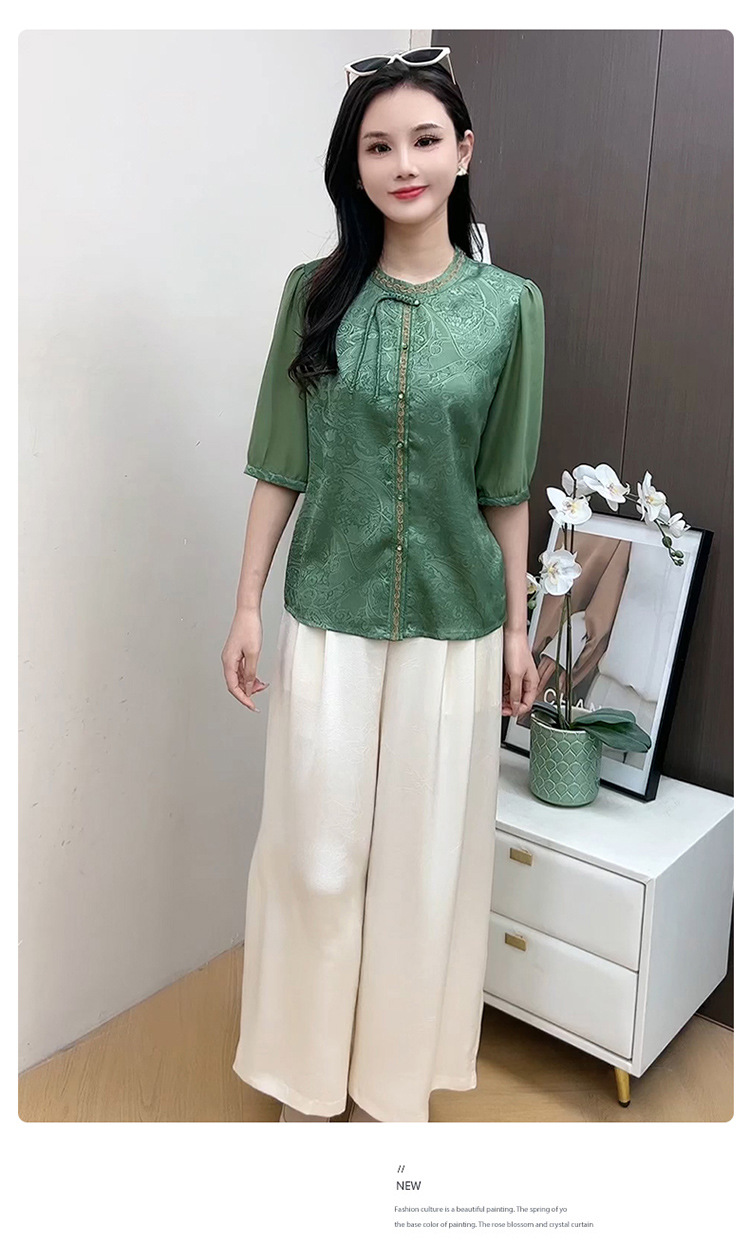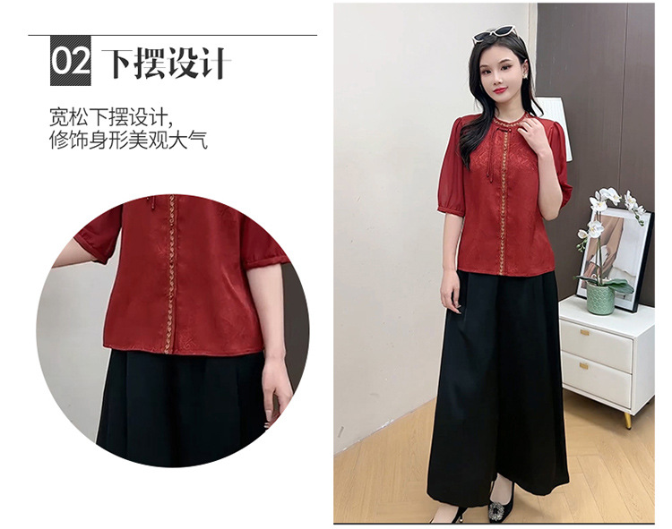 QYMYJ-25DS629-L 2025夏季新款新中式气质优雅中袖小衫垂感宽松阔腿裤妈妈装两件套 商品图1